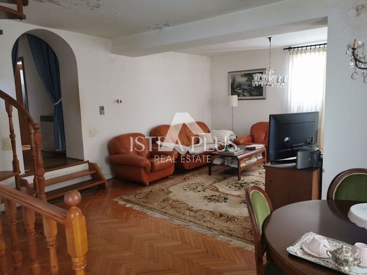 K142 Hiša v nizu sestavljena iz pritličja, nadstropja in mansarde. Hiša je potrebna adaptacije. V pritličju je velika dnevna soba s kaminom. Notranje stopnice vodijo v prvo nadstropje, ki obsega kuhinjo z jedilnico, dnevno sobo, kopalnico, dve terasi in t