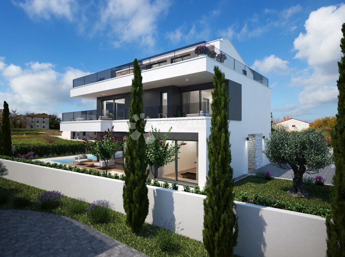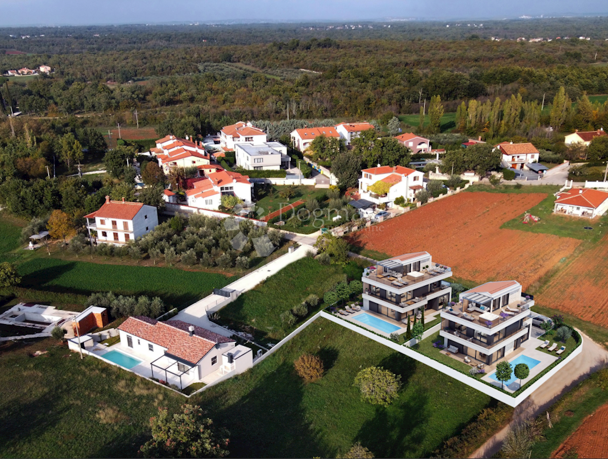 ISTRA, POREČ - MODERNA VILA, NOVOGRADNJA. Na obrobju Poreča, le 4 km od morja in centra mesta, se je začela nova gradnja te edinstvene moderne vile. Suveren dizajn, odlična lokacija v predmestju Poreča in moderna arhitektura krasijo to nepremičnino. Vil