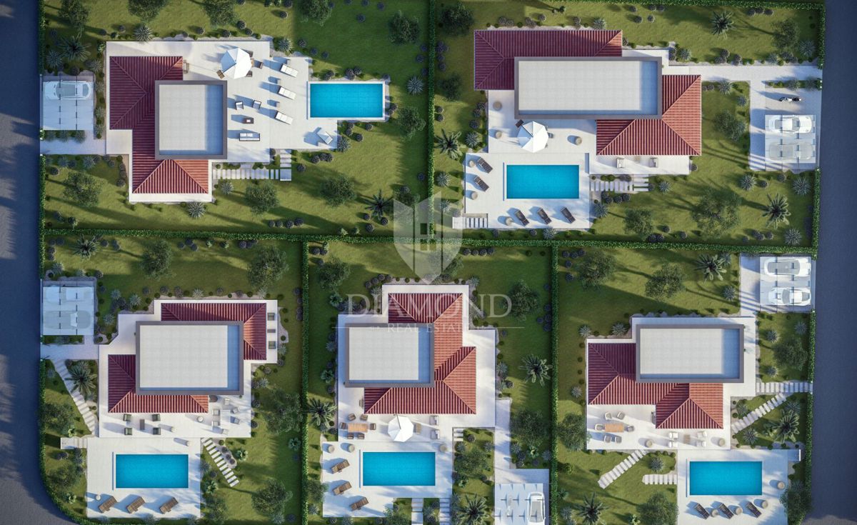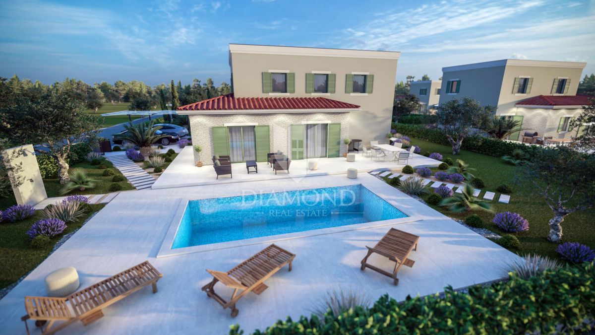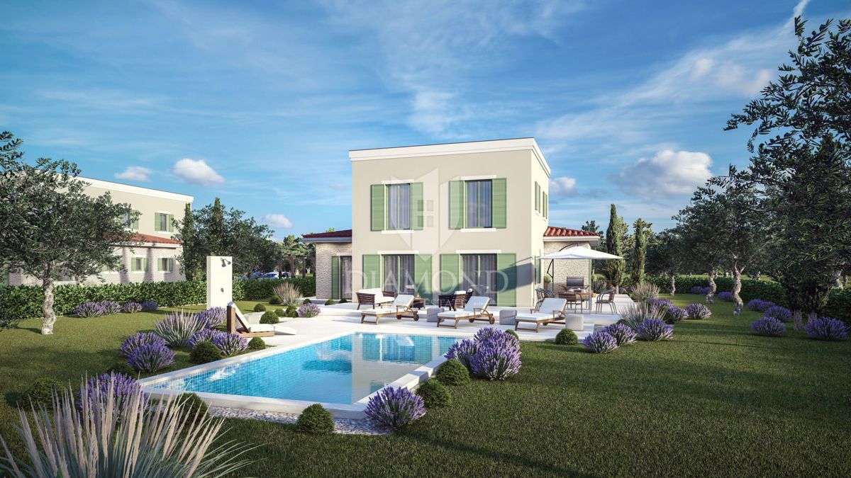 Poreč, impozantna vila z bazenom na mirni lokaciji! V idiličnem istrskem mestecu se izvaja impresiven gradbeni projekt, vpet v slikovito pokrajino. Skupaj se gradi pet fantastičnih vil z bazeni. Ta edinstveni projekt združuje sodoben dizajn s tradiciona