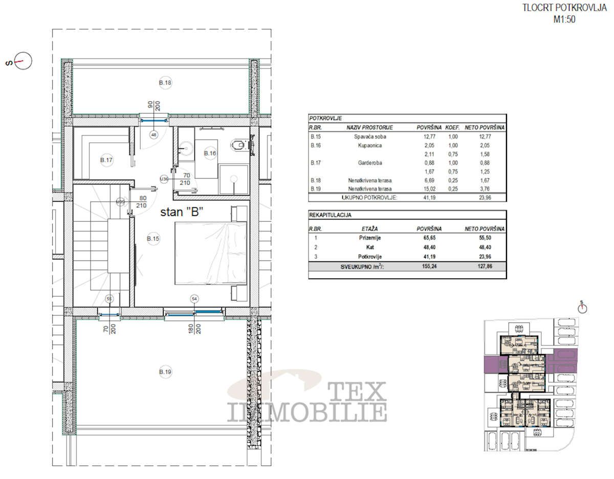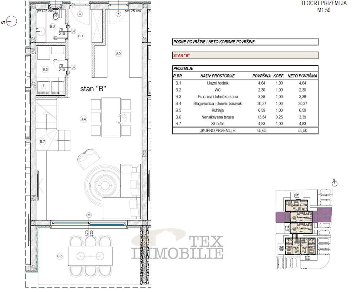 V mirnem okolju, le 2 km stran od mesta Poreč in ob obali, se nahaja ta sodobna vrstna hiša s dvoriščem. Prva hiša v vrsti zavzema parcelo velikosti 128 m2, medtem ko sama hiša pokriva površino 96 m2, razporejeno na tri nivoje. Pritličje hiše vključuje p