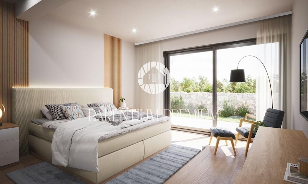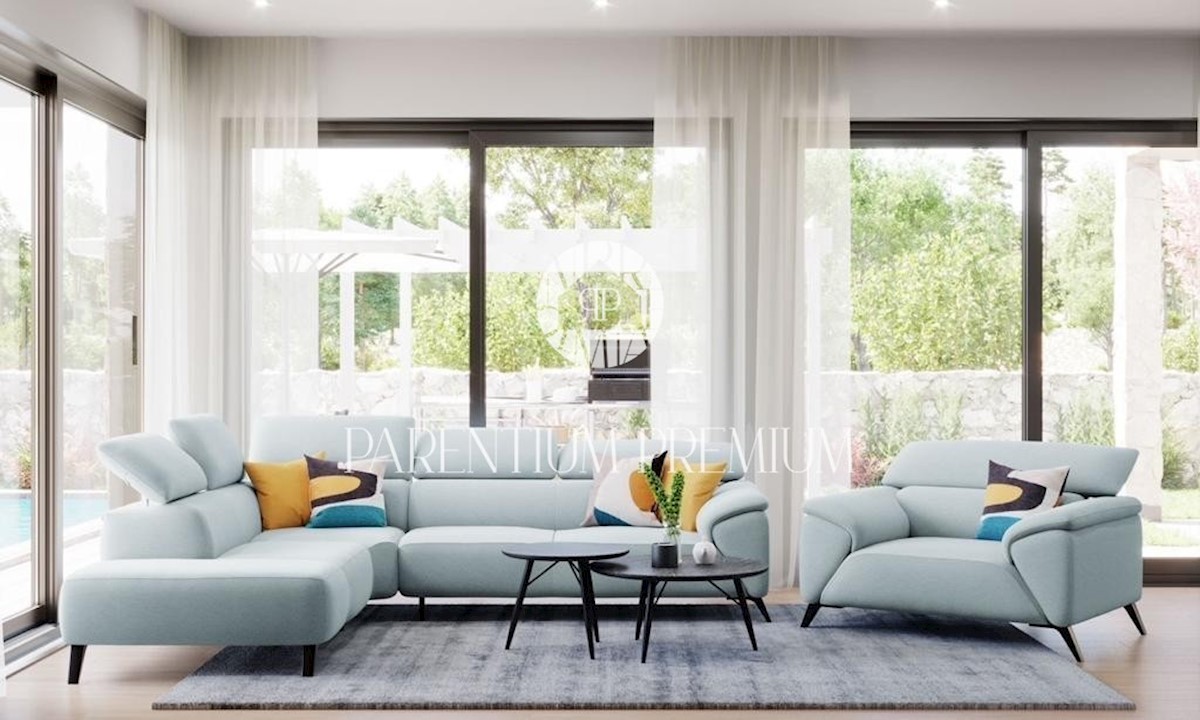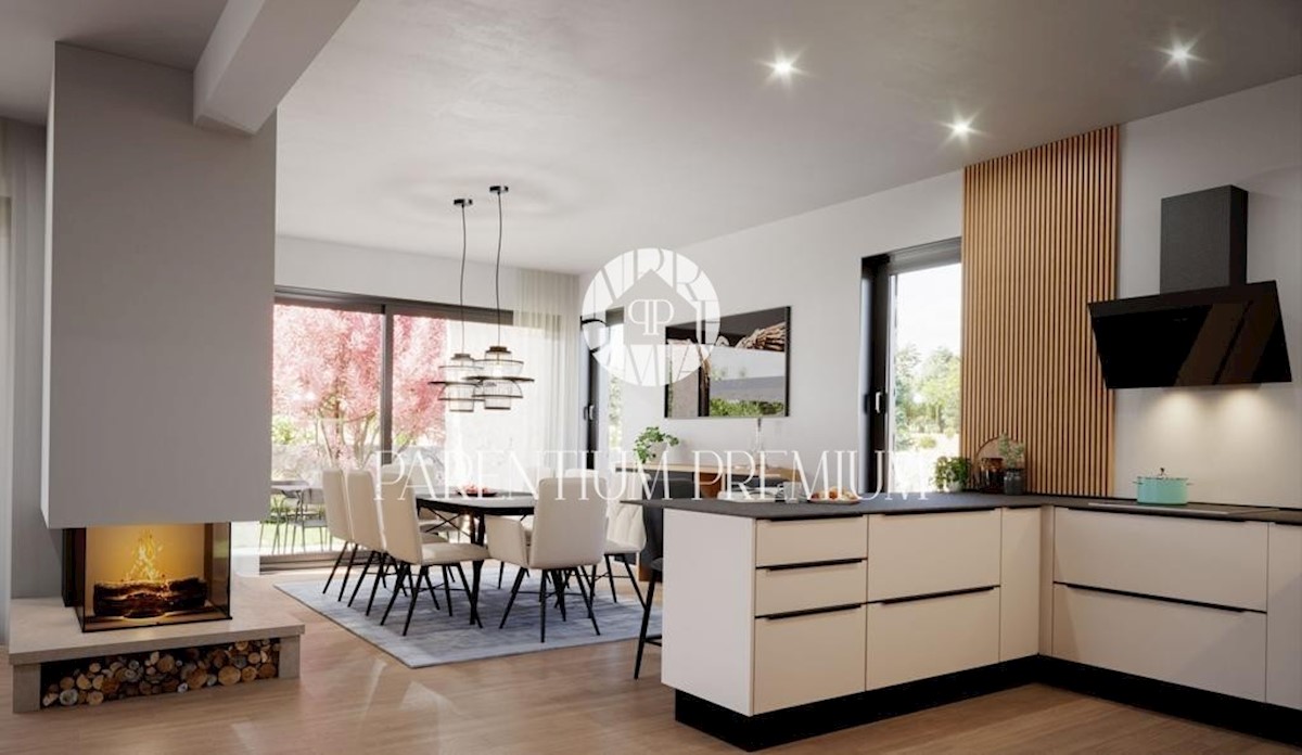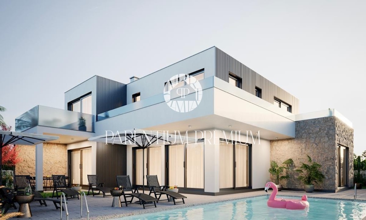 Istra, Poreč okolica Ta nova moderna vila z bazenom 243m2 se nahaja na lepi lokaciji v bližini vseh objektov. Notranjost vile predstavlja udobje, ki ga je čutiti že v pritličju, kjer se nahaja dnevna soba s kuhinjo in jedilnico v velikosti do 63m2, izje