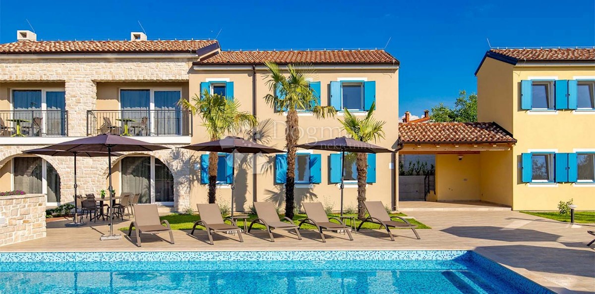 POREČ, ISTRA - dobro utečeno podjetje z eno počitniško hišo in 6 apartmaji. Prodamo nepremičnino 1/1 v lasti podjetja, z utečenim poslom in zagotovljenim dohodkom od oddajanja počitniške hiše in 6 apartmajev, kategoriziranih 4* zvezdice. Nepremičnina je