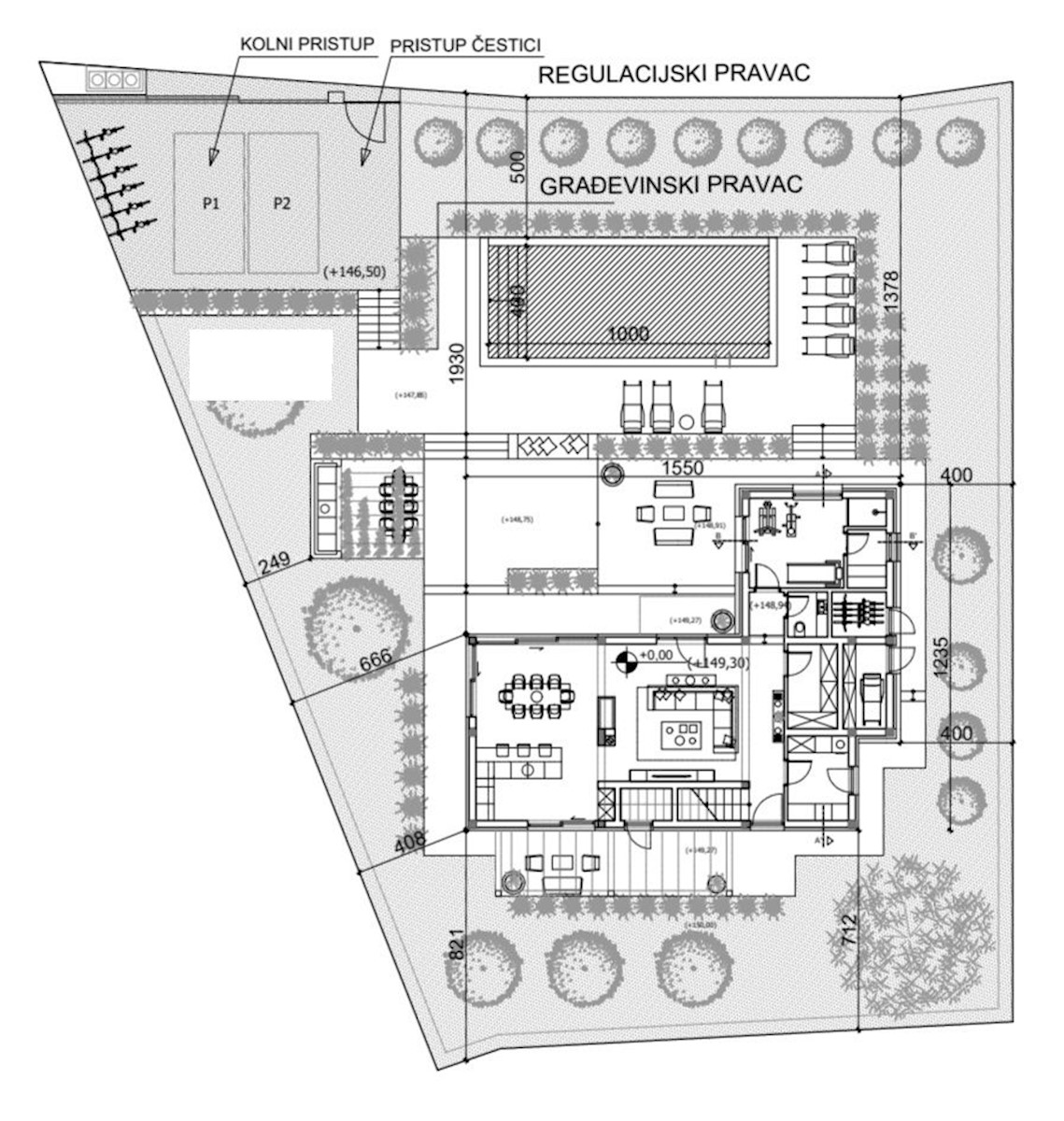 Ta čudovita vila z bazenom in wellnessom se nahaja v mirnem kraju, ki je 8 km od mesta, morja in njegovih plaž.Vila ima 181,03 m2 notranje bivalne površine in se nahaja na zemljišču v skupni izmeri 938 m2.Parcela je lepe pravilne oblike in kot taka omogoč