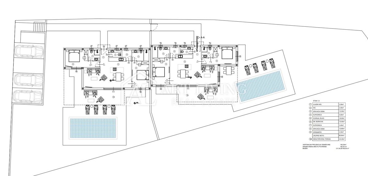 Istra, Poreč - okolica Hiša 2 V bližini Poreča je naprodaj edinstven moderni dvojček z bazenom. Hiša se nahaja na mirni lokaciji obdana z naravo in zelenjem. Od mesta Poreča in morja je oddaljena 15 km, od mejnega prehoda 40 km, od letališča Portorož 6