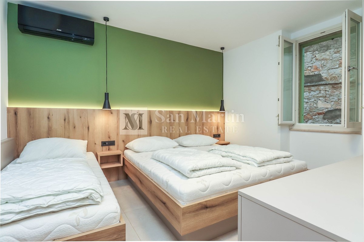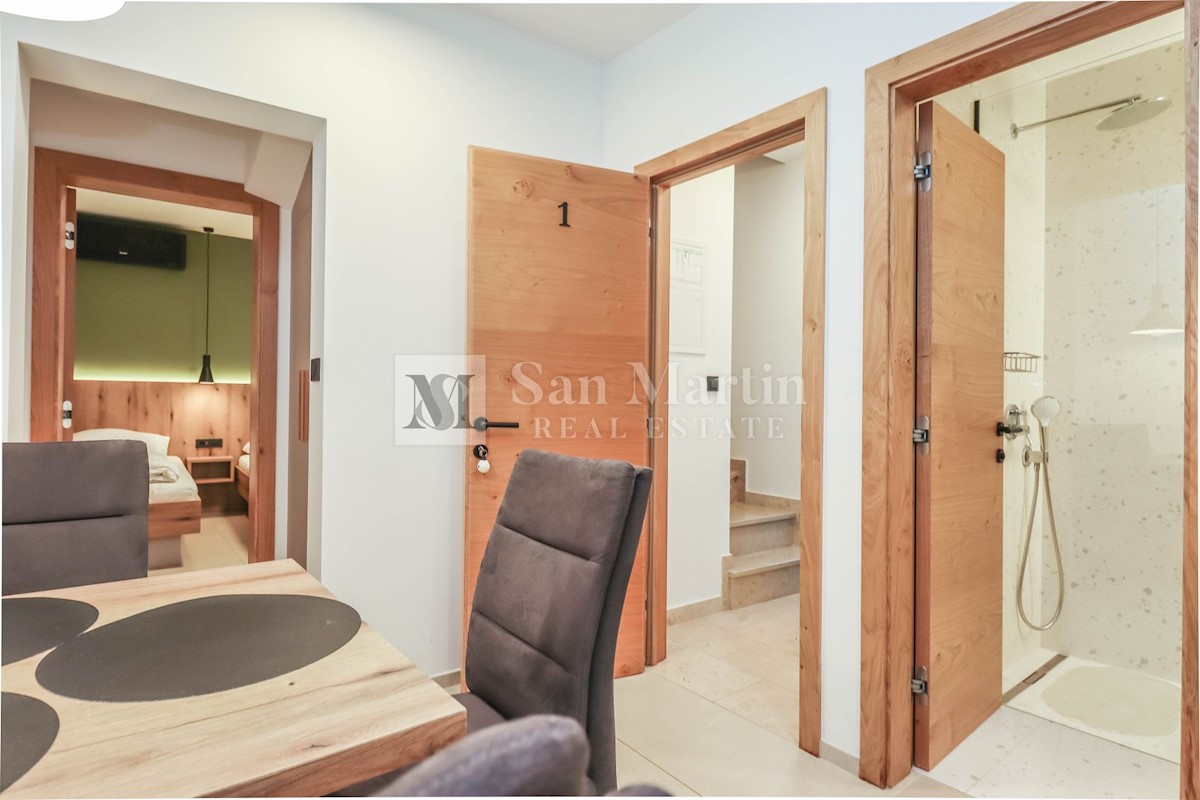 Poreč, okolica, Prenovljena kamnita apartmajska hiša nedaleč od morja in plaže Ta okusno prenovljena stara hiša je naprodaj v samem središču čudovite ribiške vasice, blizu morja in plaže ter vseh potrebnih dobrin. Hišo sestavljajo tri dvosobna stanovanj