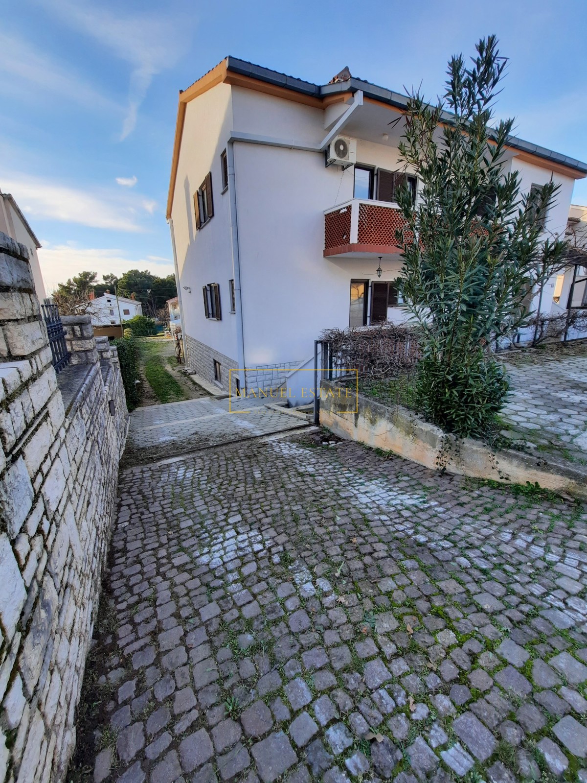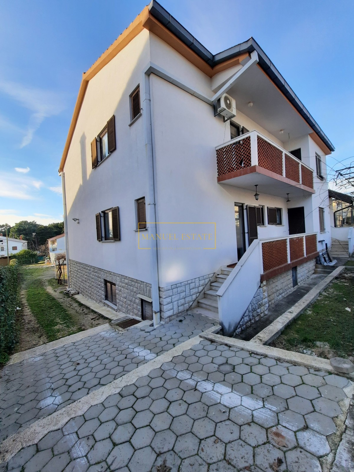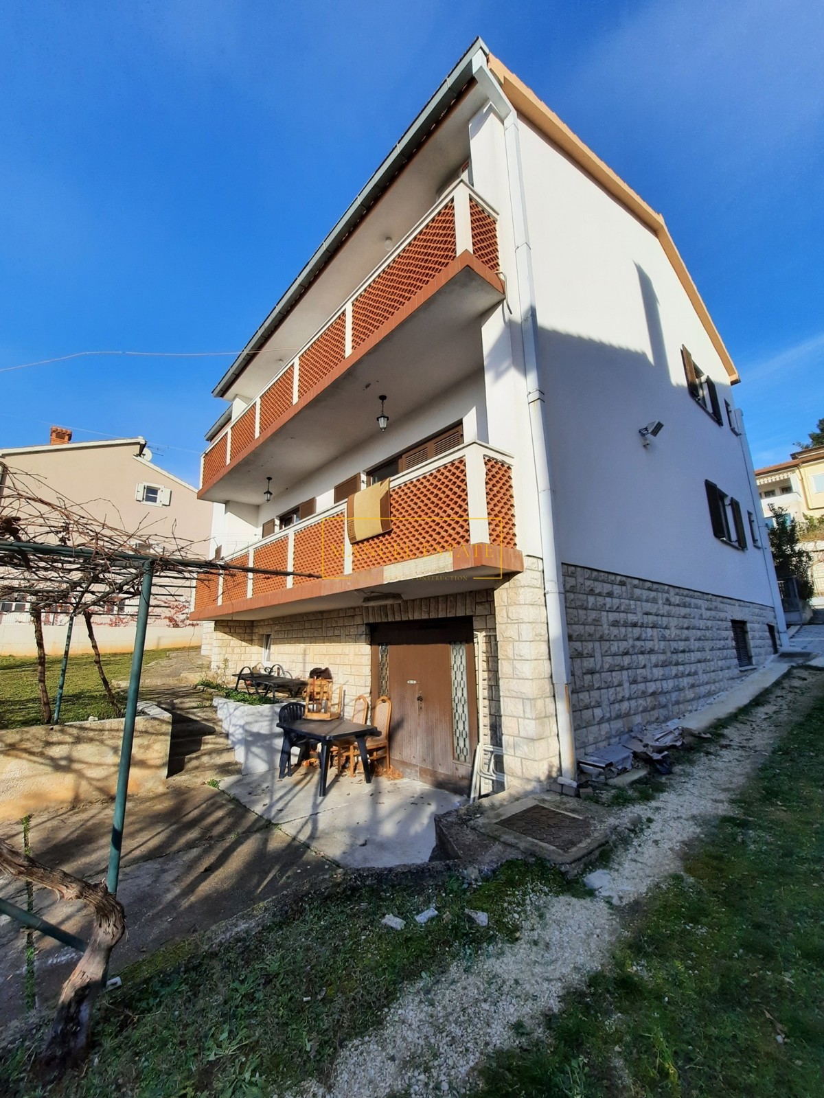 Samostojna hiša na mirni lokaciji, ki se nahaja v Poreču, v bližini vseh potrebnih vsebin za udobno vsakdanje življenje. V prvem in drugem nadstropju se nahajata dve prostorni stanovanji velikosti 112 m2, sestavljeni iz treh spalnic, kopalnice, wc-ja, kuh
