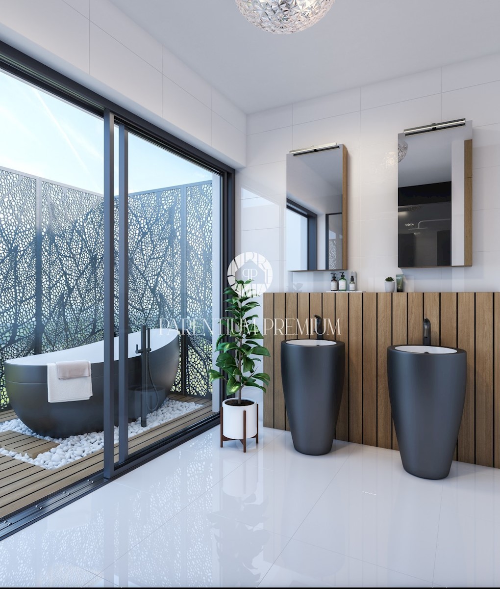 Ta luksuzna vila, ki se nahaja v idiličnem zahodnem delu Istre, je idealen pobeg pred napornim vsakdanom. Z edinstvenim modernim dizajnom, avtentičnimi kamnitimi deli in lesenimi elementi se ta vila popolnoma prilega naravnemu okolju. Nepremičnina je ses