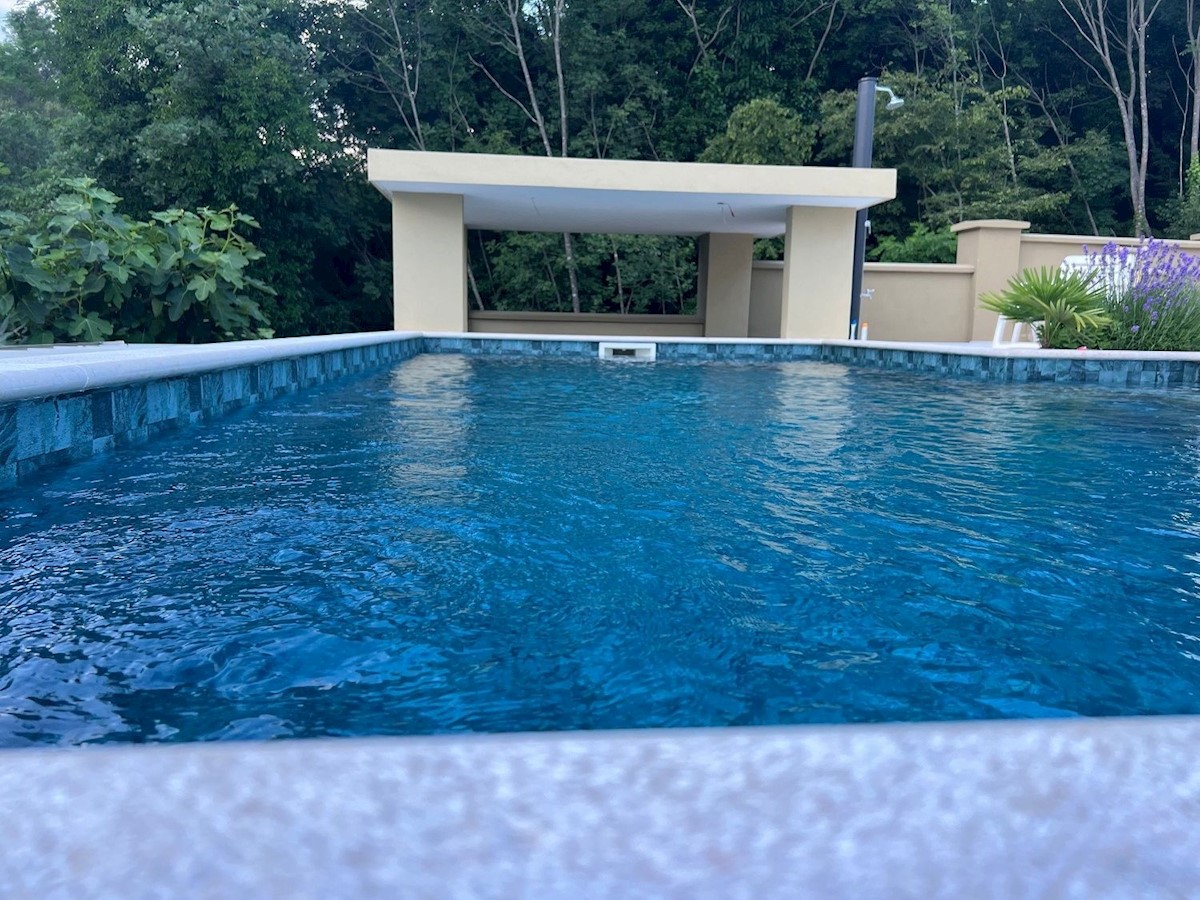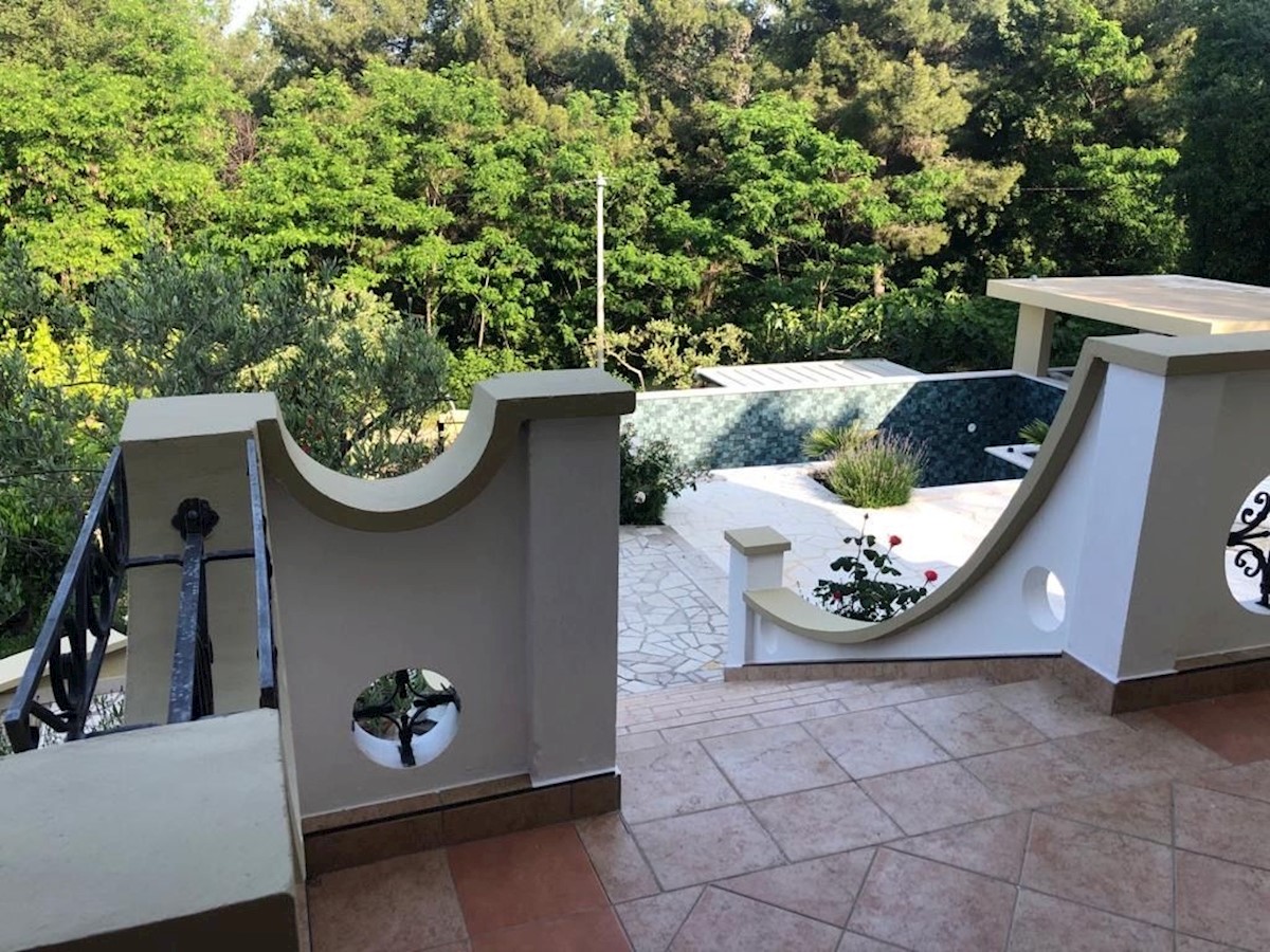 Prodam samostojno hišo nedaleč od plaže in morja.Hiša ima 395 m2 na parceli 1173 m2 z lepo urejenim okoljem, bazenom, letno kuhinjo in 4 parkirnimi mesti.Pritličje hiše je sestavljeno iz stanovanja z eno spalnico, garaže, delavnice in kurilnice. Prvo nads
