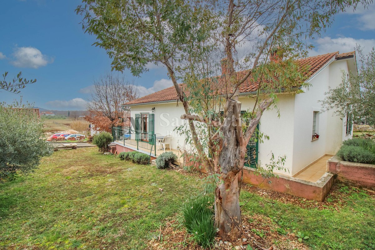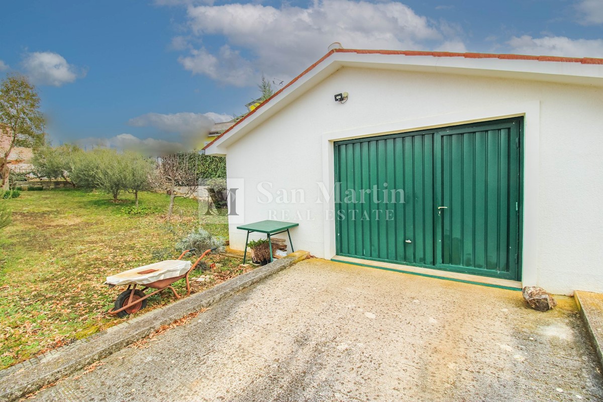 Istra, Poreč, okolica - samostojna hiša z garažo V bližini mesta Poreč je naprodaj enonadstropna hiša skupne površine 103 m2. Hiša se nahaja na parceli 980 m2 in je sestavljena iz predsobe, dnevne sobe, kuhinje in jedilnice, ene spalnice in kopalnice. H
