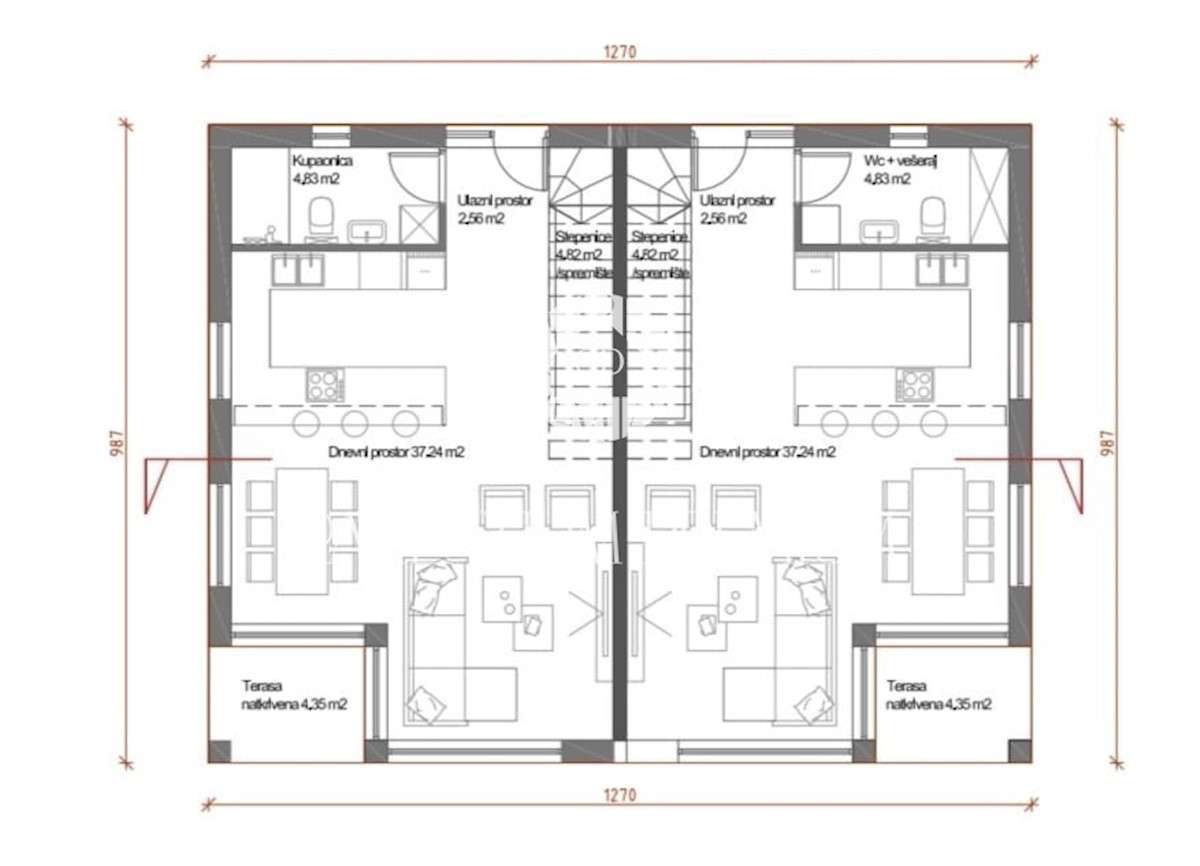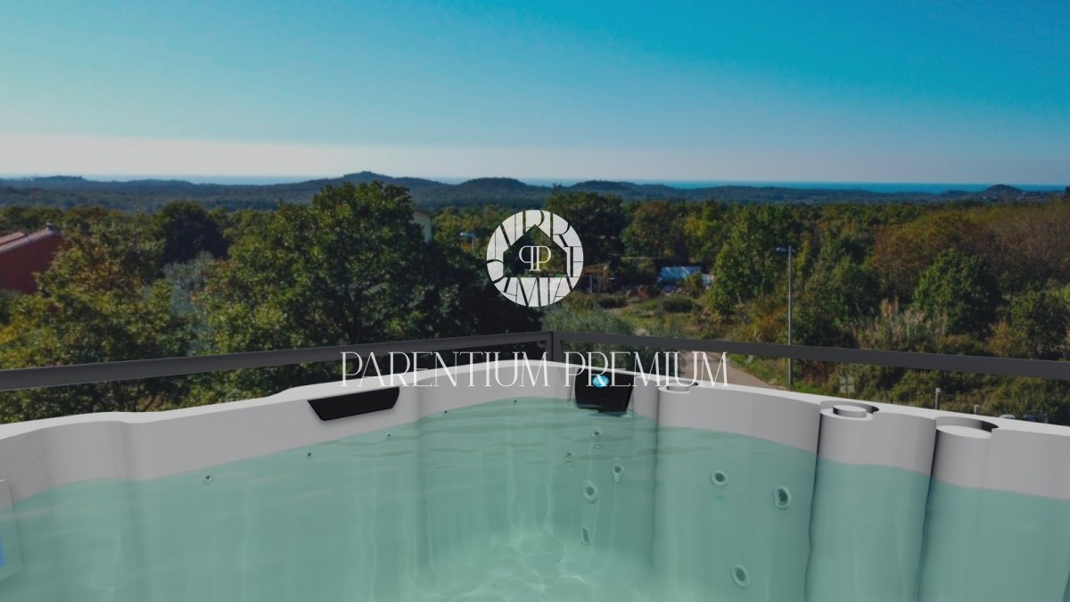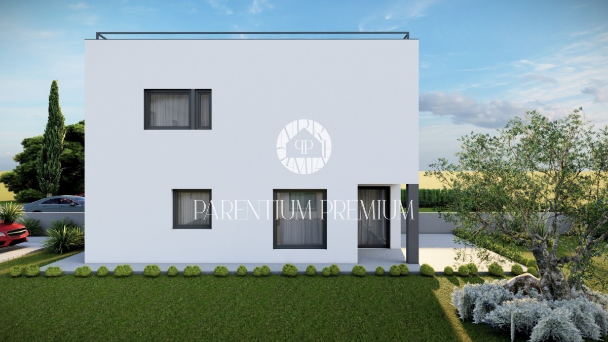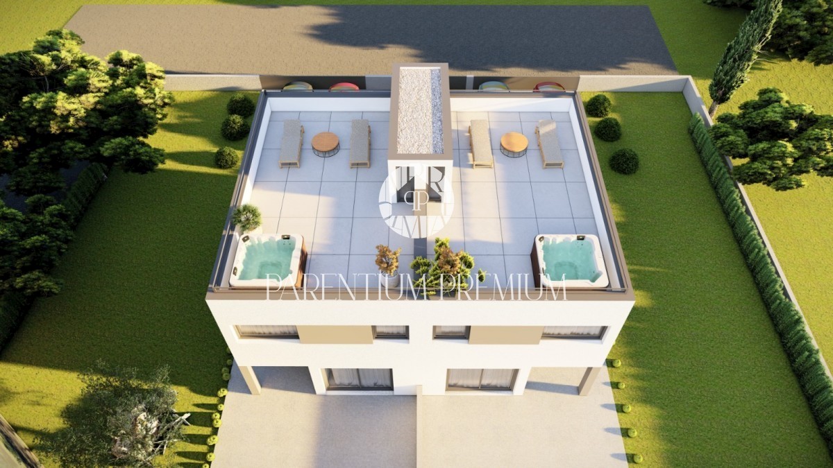 Istra, Poreč - okolica Ta nova moderna hiša dvojček s skupno površino 117,66 m2, s strešno teraso in očarljivim razgledom se nahaja v družinskem naselju v bližini čudovitega mesta Poreč. Ta lastnost ponuja izbiro med 2 ali 3 spalnicami, kar vam omogoča,