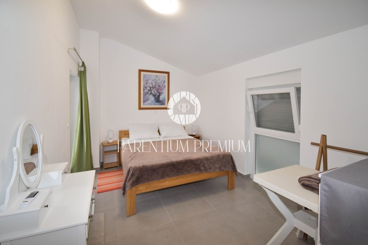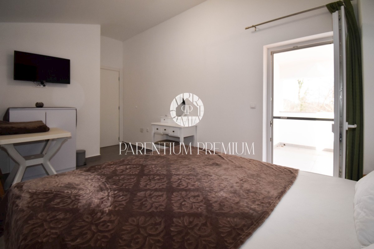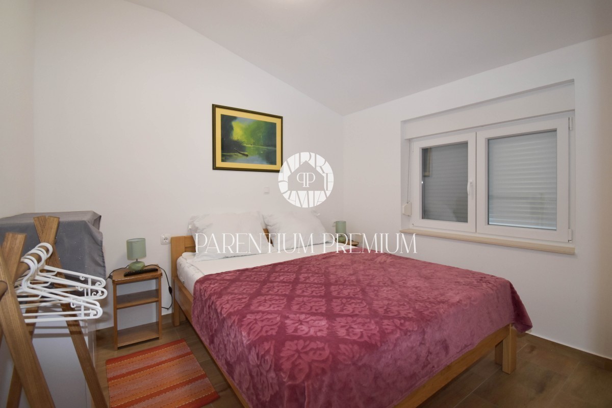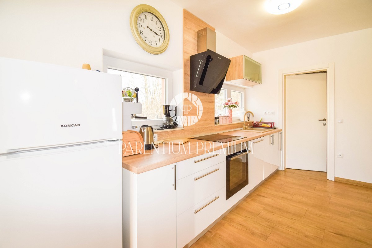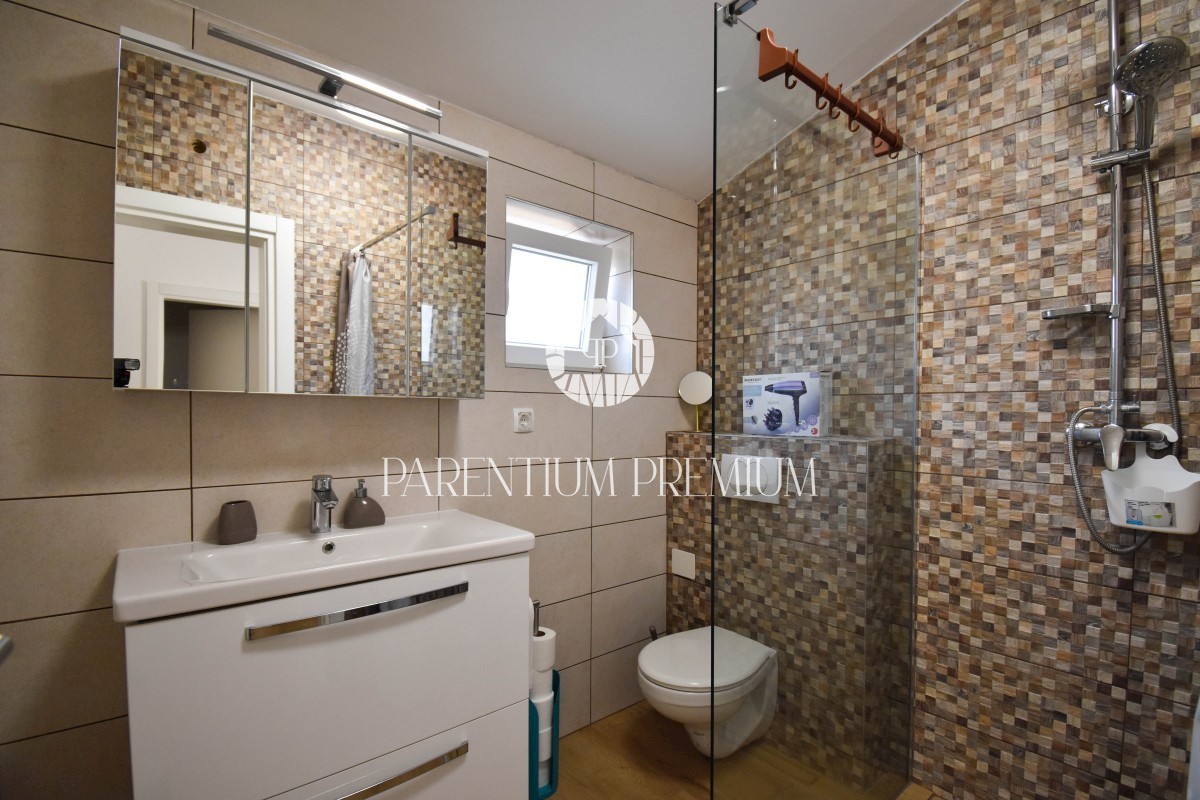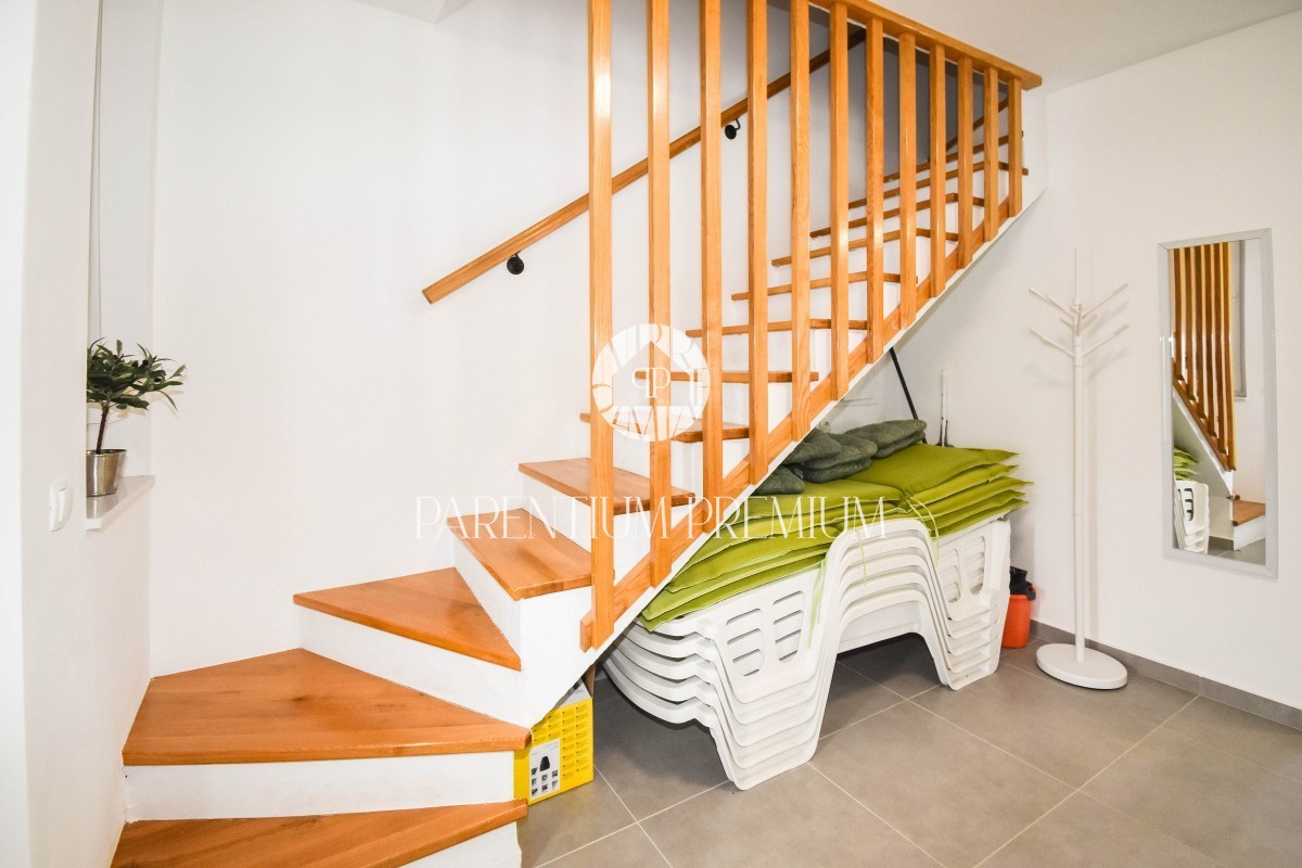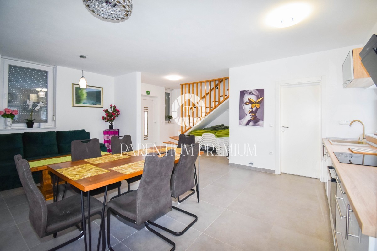 Istra, Poreč - okolica (notranjost) Prodaja se odlična nova moderna hiša z 2 stanovanjskima enotama v skupni izmeri 168,80 m2, ki se nahaja na zemljišču velikosti 705 m2. Hiša je razdeljena na 2 enaki stanovanjski enoti. Vsaka enota je sestavljena iz 2