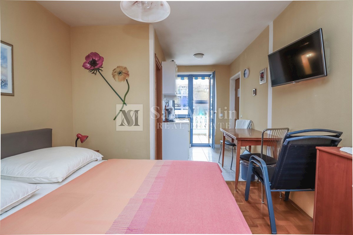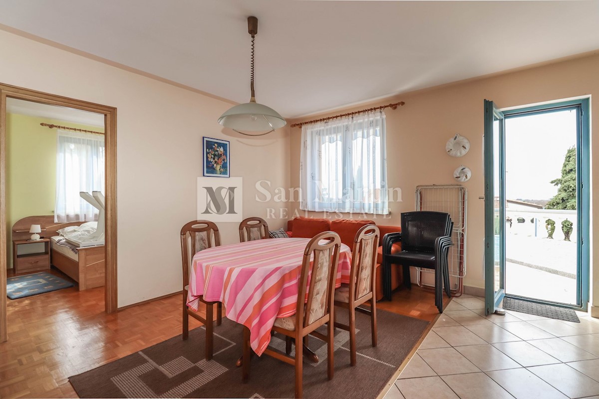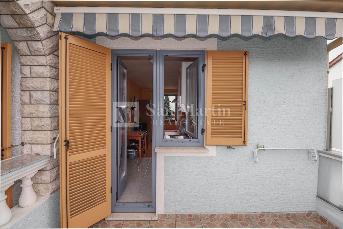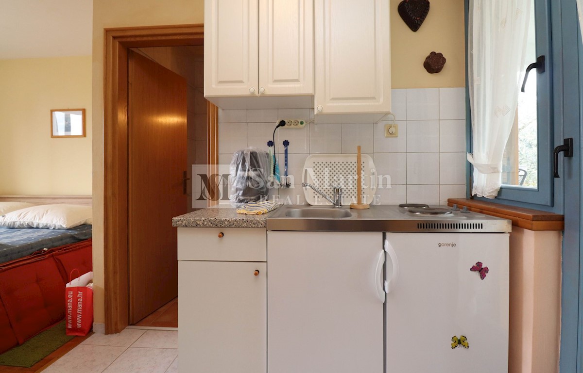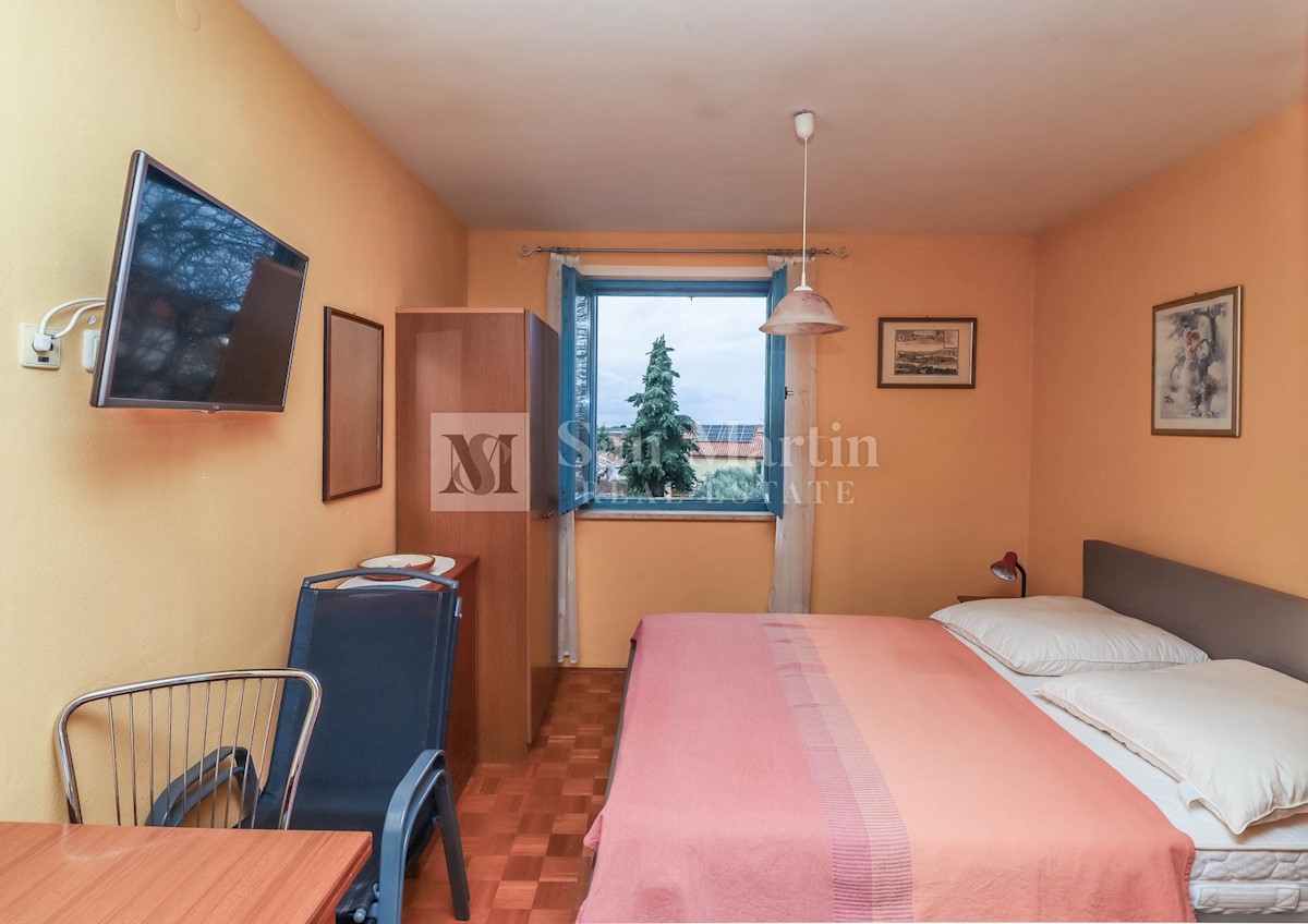 Poreč, okolica, Očarljiva hiša s štirimi apartmaji nedaleč od mesta in morja Nepremičnina je sestavljena iz štirih apartmajev. V pritličju se nahajata garsonjera in večje stanovanje z eno spalnico. Garsonjera je sestavljena iz sobe, kopalnice, mini kuhin