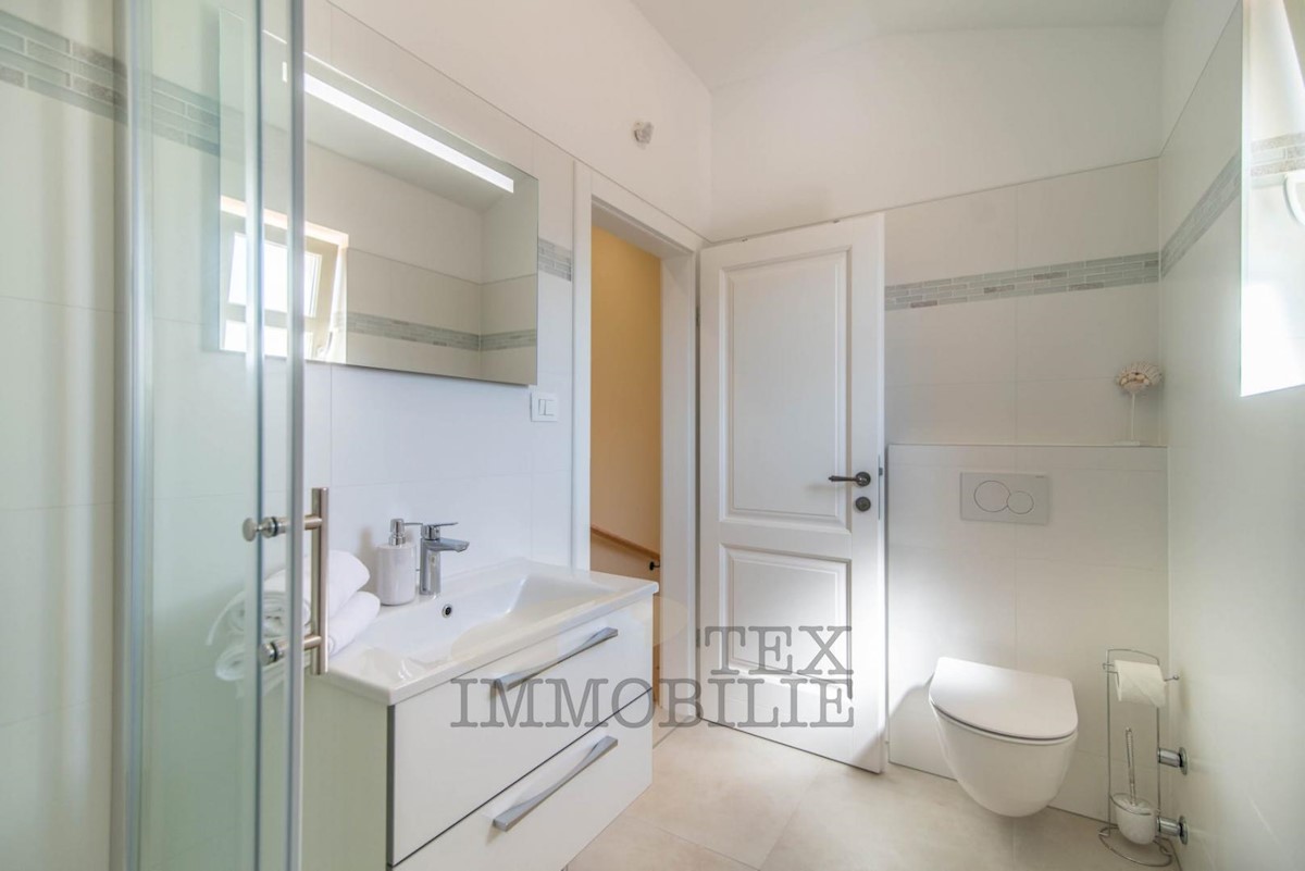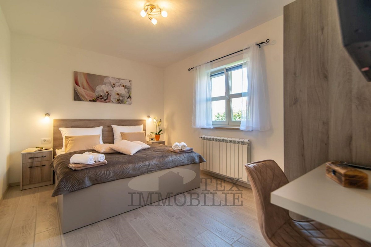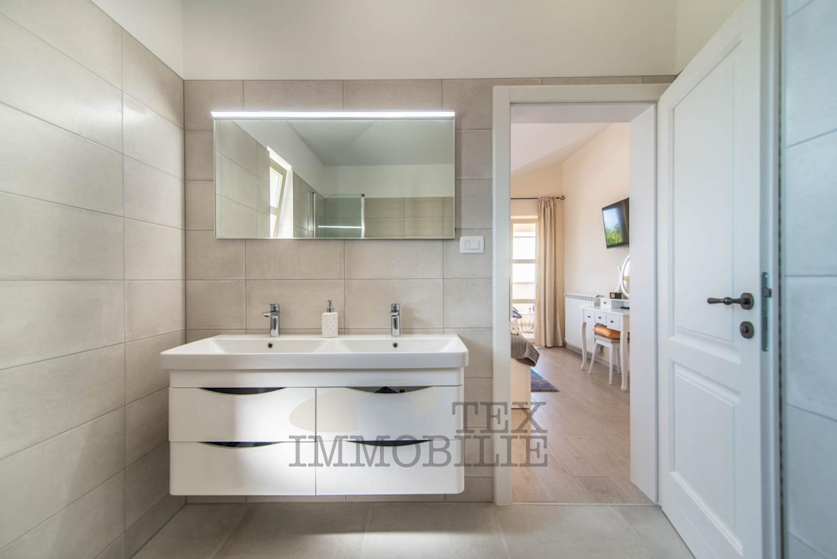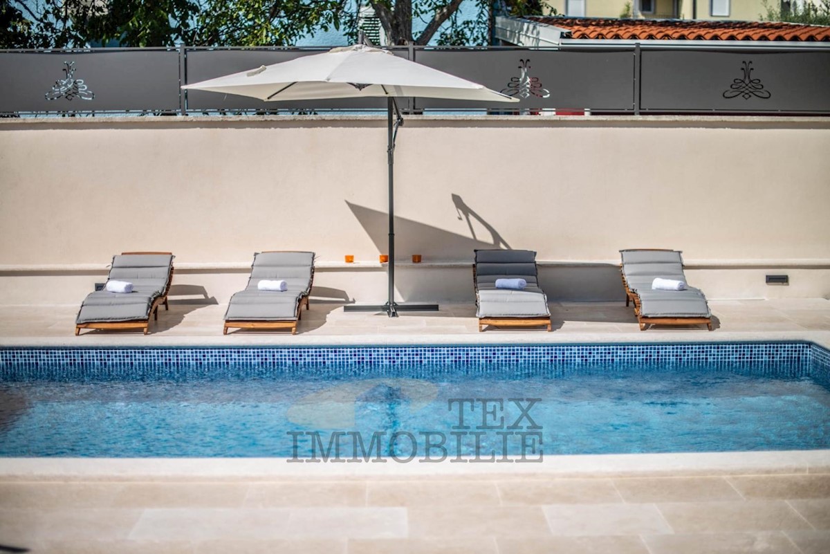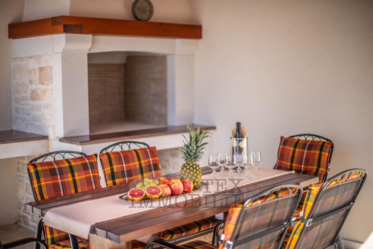 Na prodaj je vila s bazenom, ki se nahaja v mirnem okolju, nedaleč stran od mesta Poreč in morja. Stoji na parceli velikosti 560 m2 in ima skupno površino 138 m2, razporejeno na pritličje in prvo nadstropje. Pritličje hiše ponuja vhodno dvorano, kopalnic