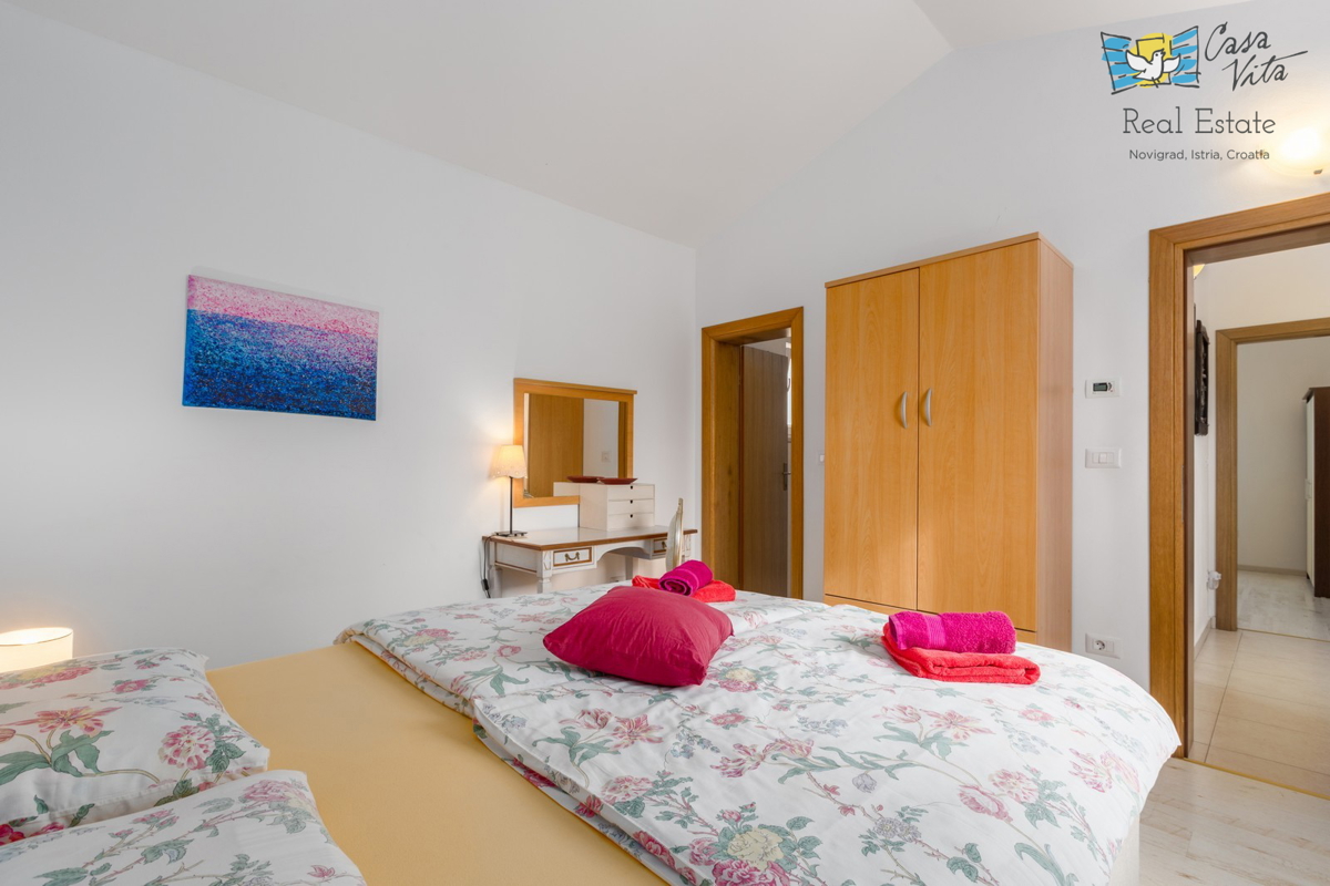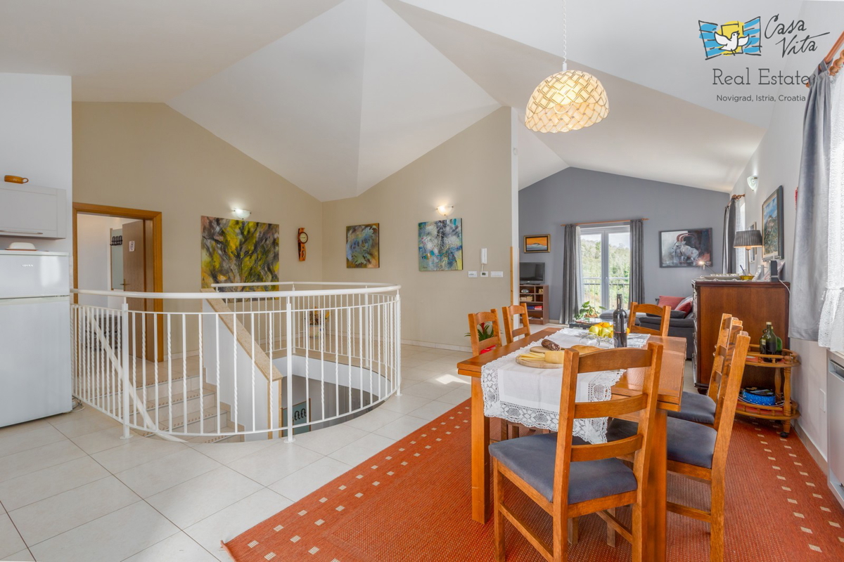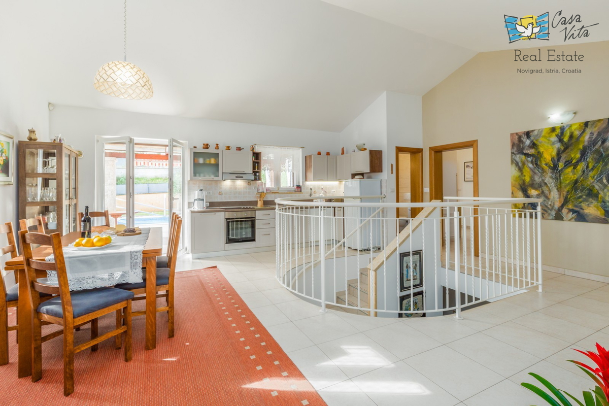 Istra, Poreč Čudovita vila na hribu v Vižinadi je bila z veliko pozornosti in ljubezni zgrajena leta 2013, z namenom turističnega oddajanja. Skupno ima neto uporabno površino 219 m2 (stanovanje 186 m2 + shramba 33 m2), na kaskadni parceli 666 m2. Specif