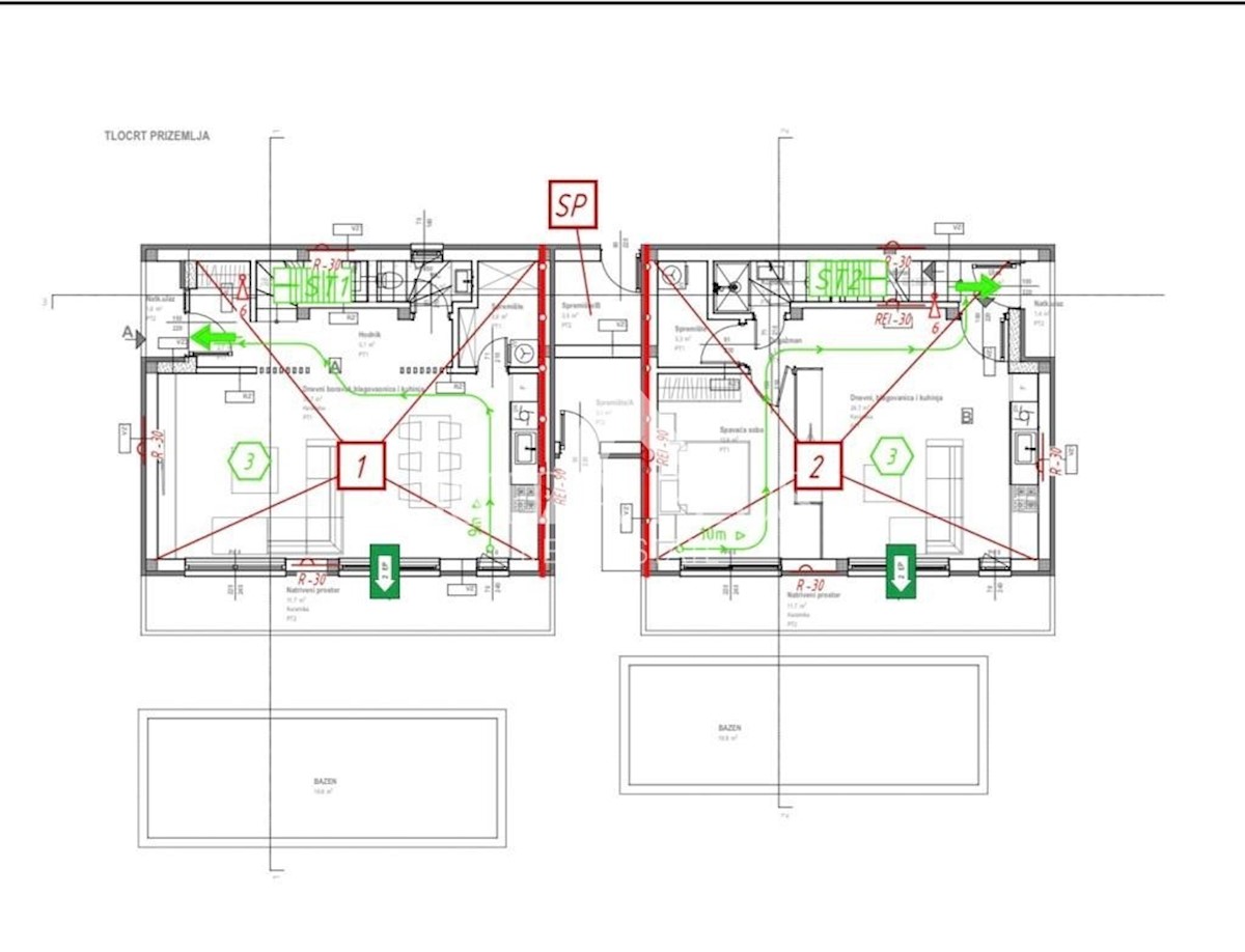K186 Ta vila z bazenom se bo nahajala 6 kilometrov od Poreča. Vila se nahaja na prostornem zemljišču in se razprostira na 3 etažah. Pritličje obsega predprostor, stranišče za goste, pralnico/shrambo, kuhinjo, jedilnico in veliko dnevno sobo odprtega tipa,
