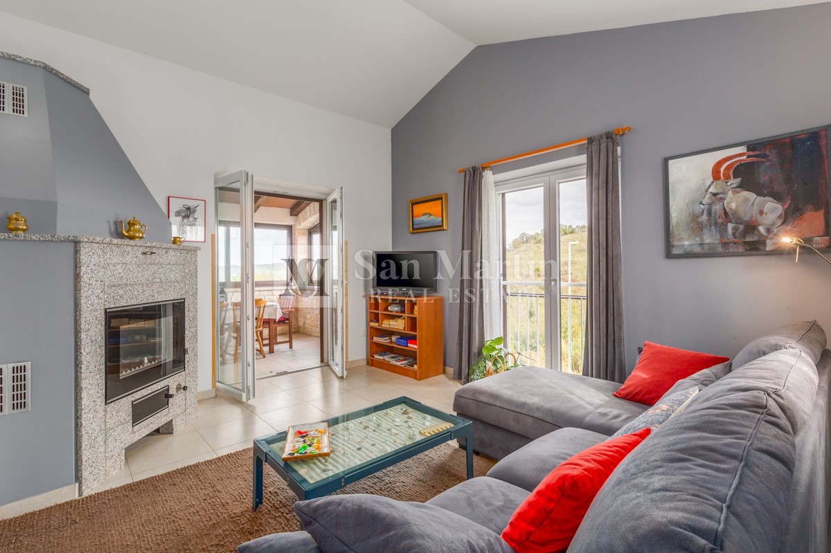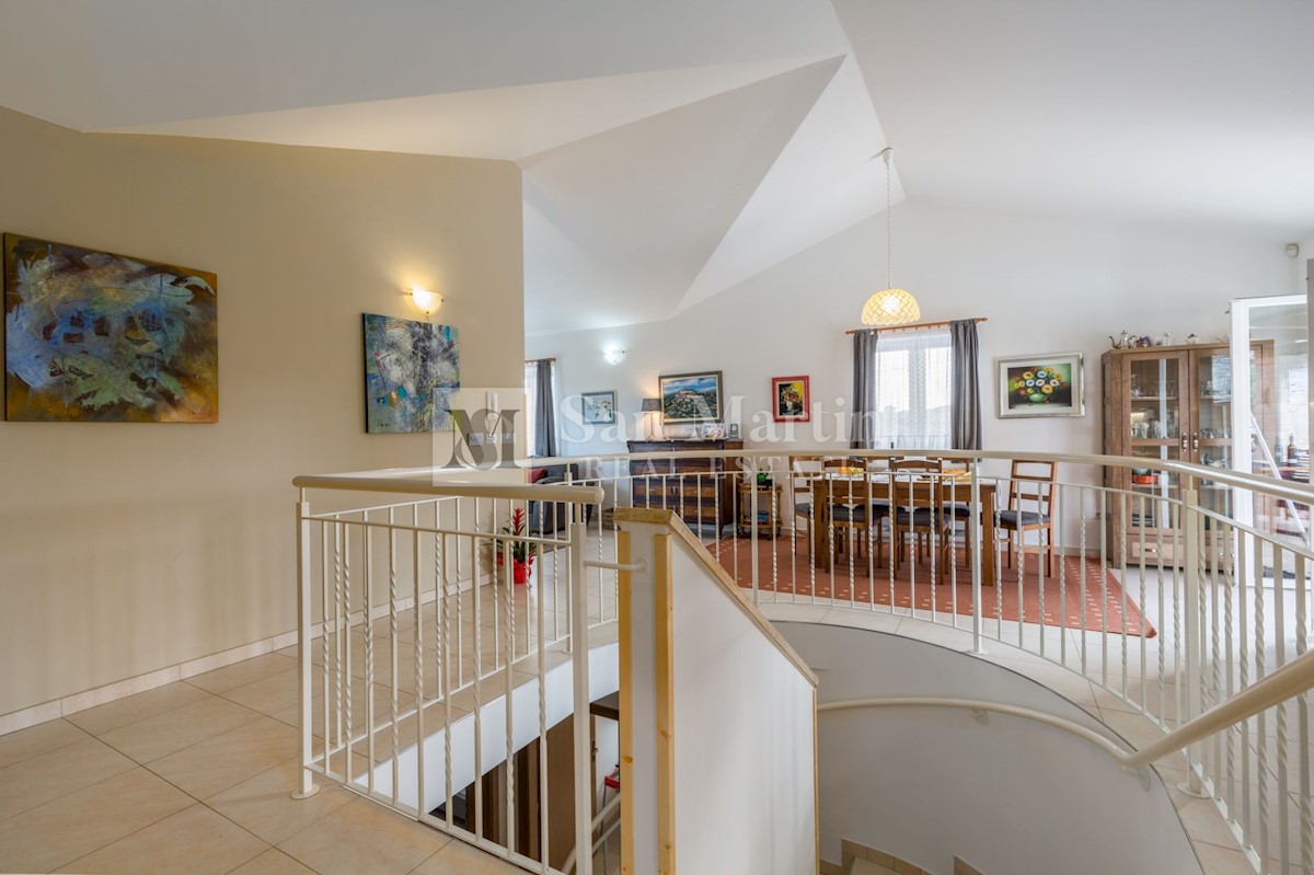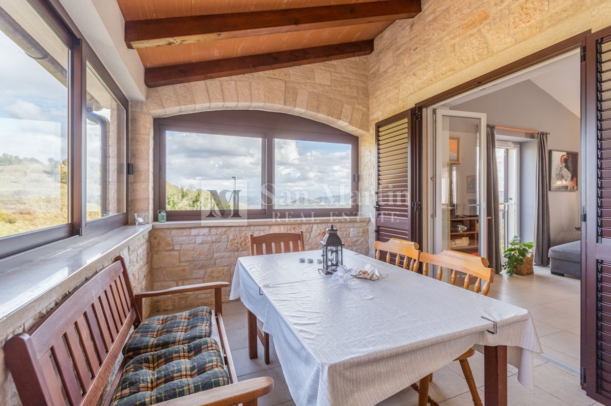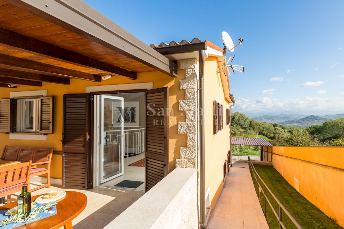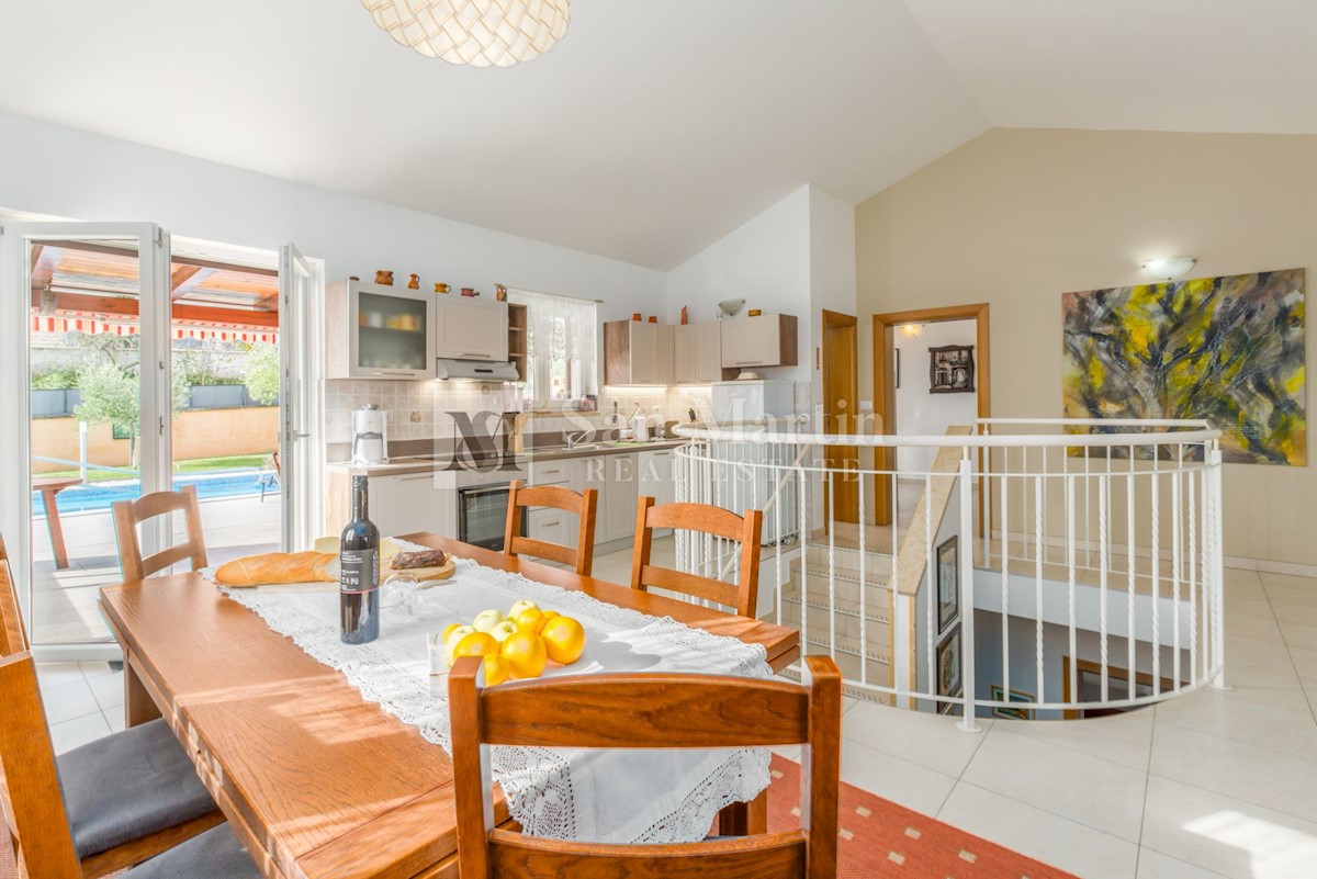Poreč, okolica, Vila z bazenom in odprtim pogledom Le 15 kilometrov od morja in 18 kilometrov od Poreča, v središču manj znanega mesta z vsemi potrebnimi vsebinami za življenje, se nahaja ta odlično opremljena nepremičnina z odprtim pogledom na naravo.