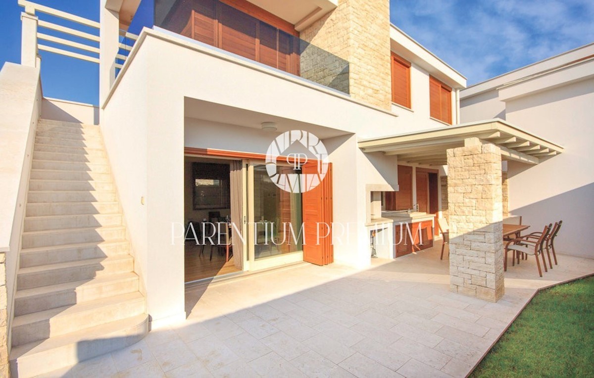 Istra, Poreč - okolica (blizu morja) Ta odlična vila s skupno površino 150m2 se nahaja v okolici mesta Poreč, v bližini lepo urejenih plaž na iskanem območju. Vila je razdeljena na 2 etaži in je sestavljena iz vhodnega prostora, dnevne sobe odprtega tip