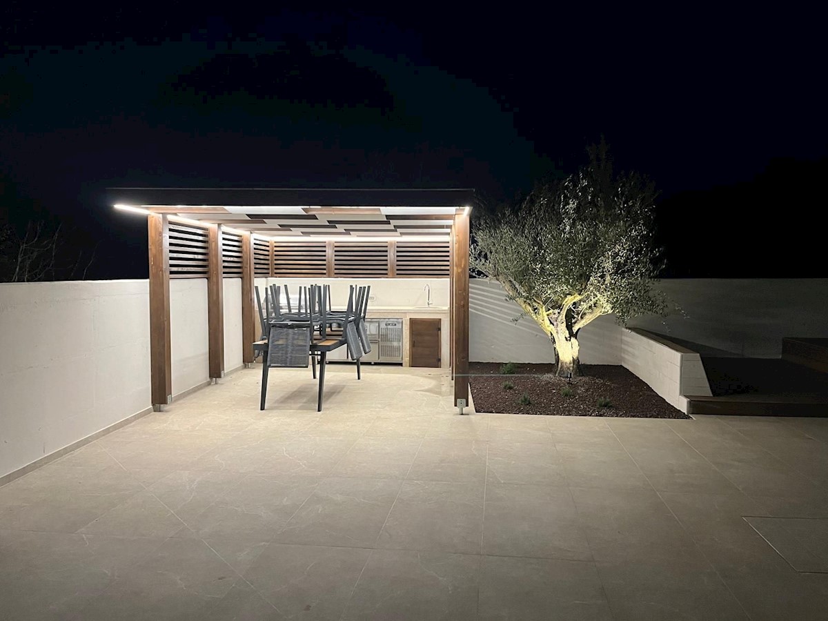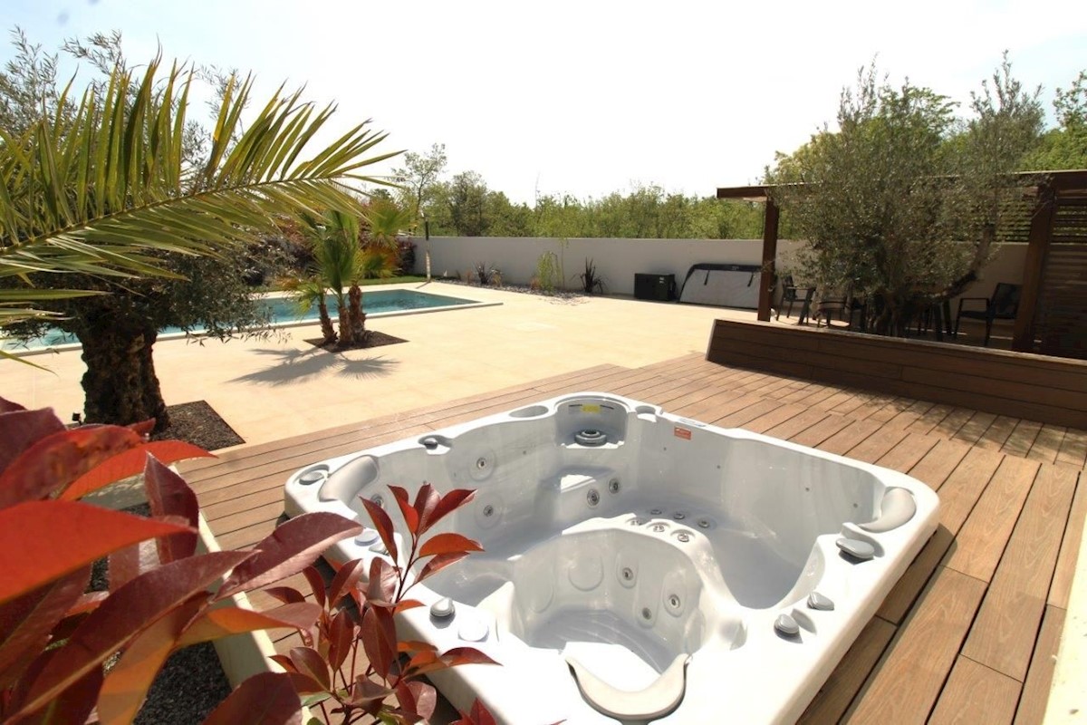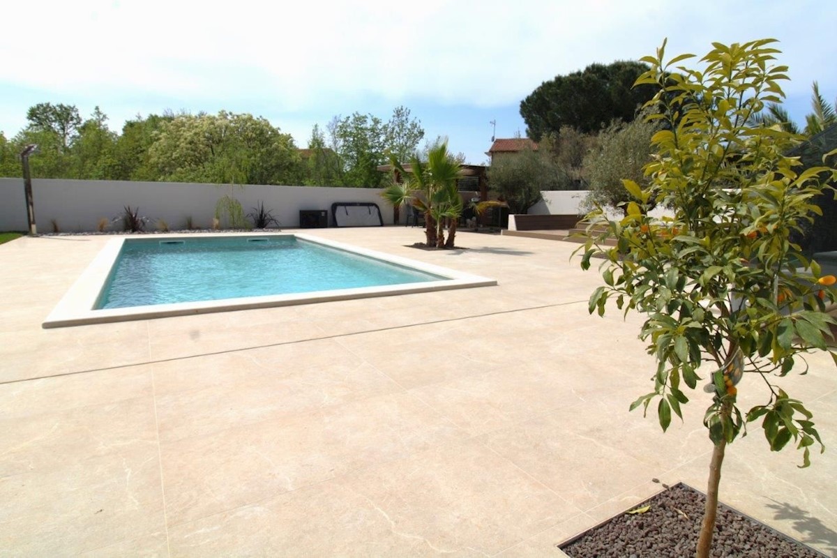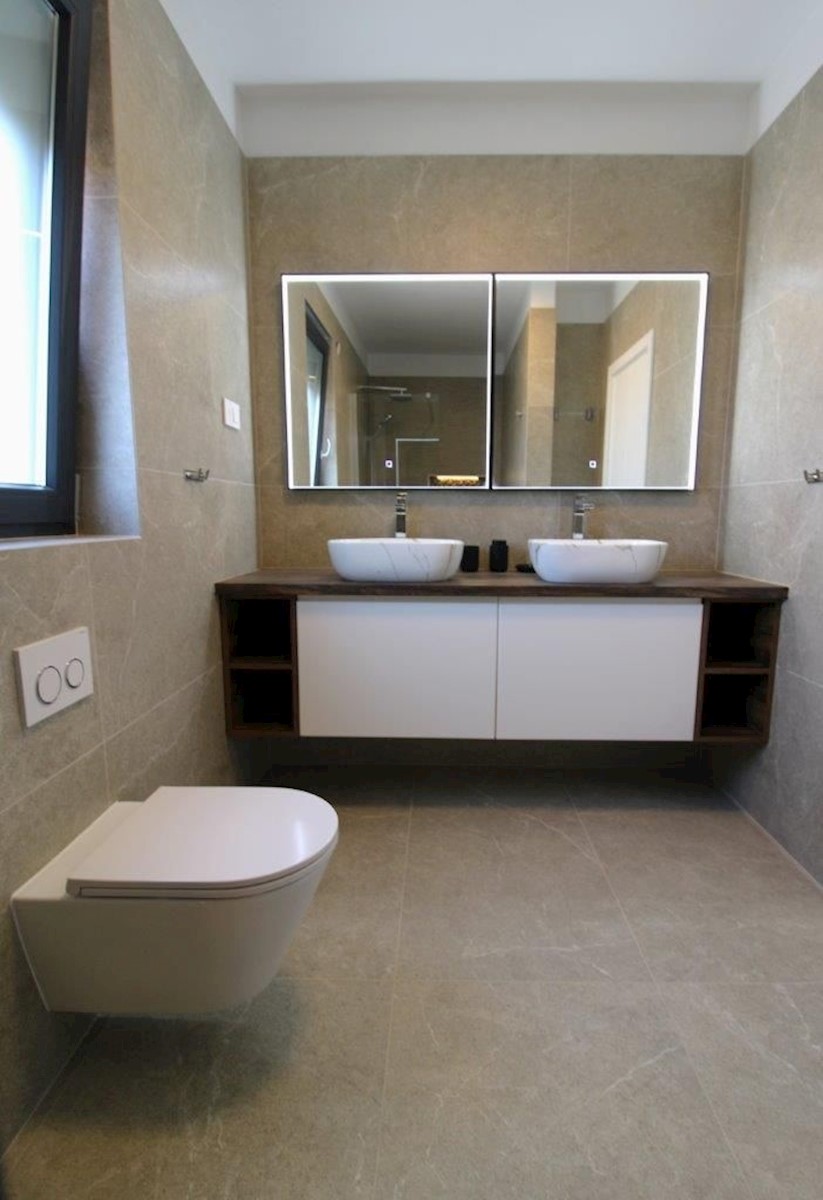 Ta lepa, moderna vila se nahaja v privlačnem naselju in na mirni lokaciji v predmestju Poreča.Vila ima 217,43 m2 bivalne površine in se nahaja na zemljišču velikosti 707 m2.V kletnih prostorih je telovadnica, prostor za sprostitev s savno, tušem in WC-jem