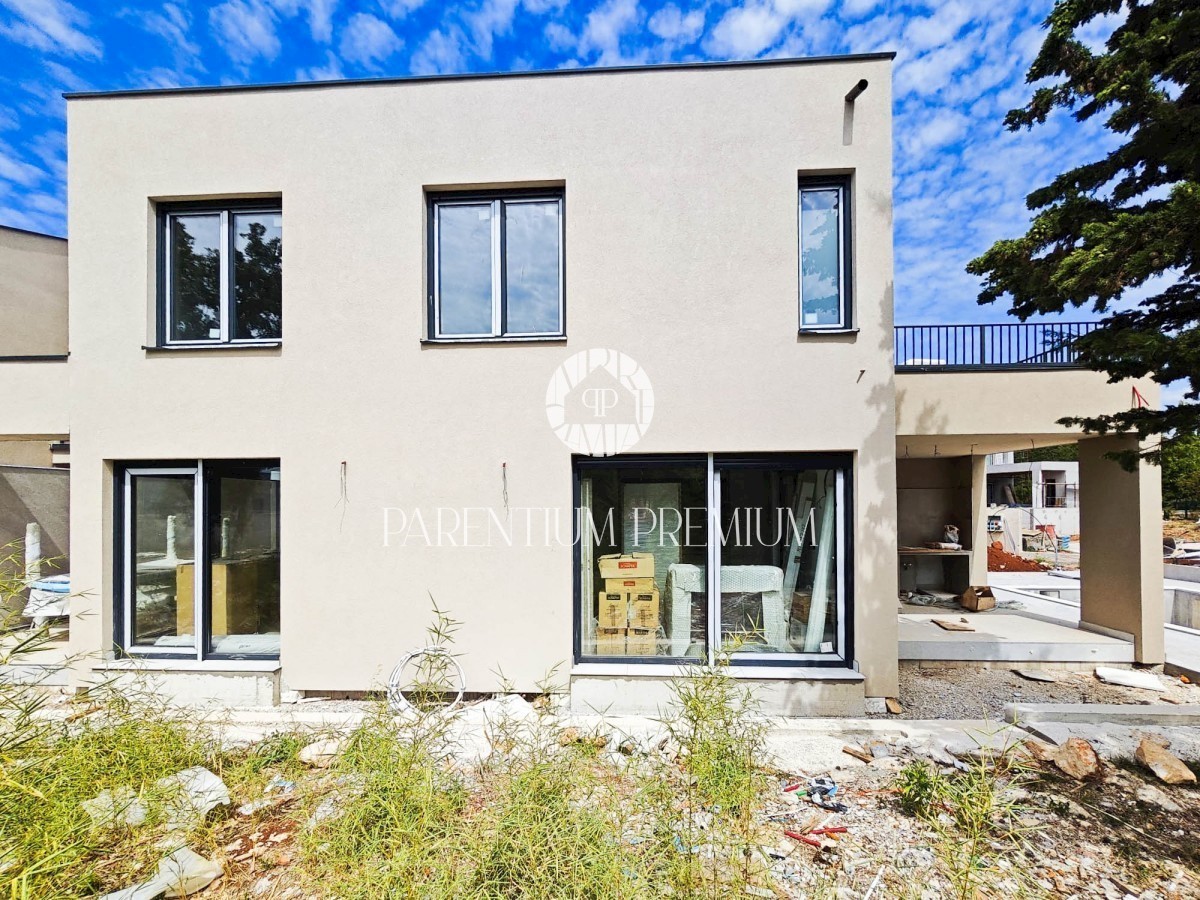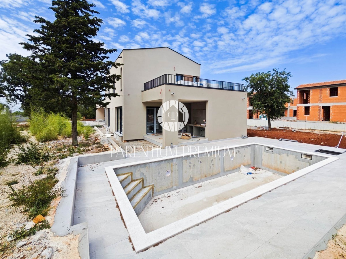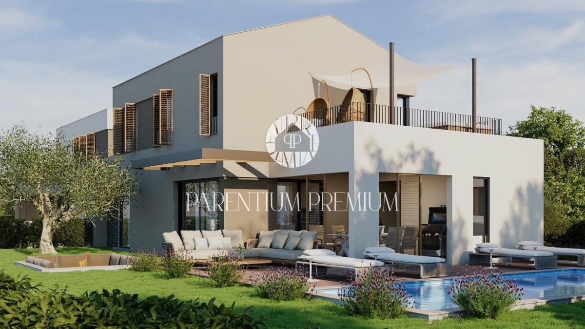 Istra, Poreč Ta moderna nizkoenergijska hiša s skupno površino 160m2 se nahaja v bližini mesta Poreč na lepi in mirni lokaciji. V pritličju te hiše se nahaja odprta in dobro osvetljena dnevna soba s kuhinjo in jedilnico ter ena manjša spalnica, kopalnic