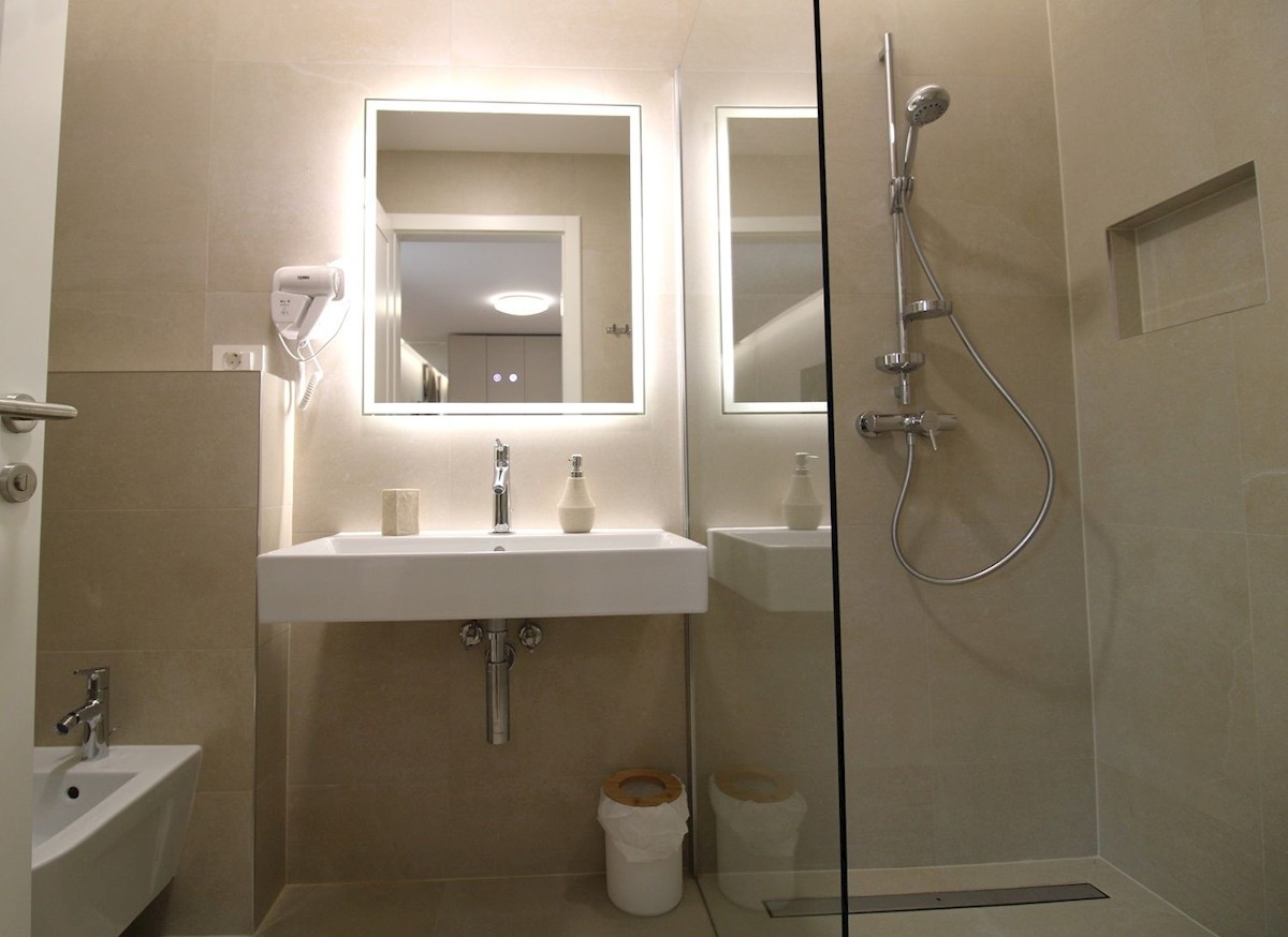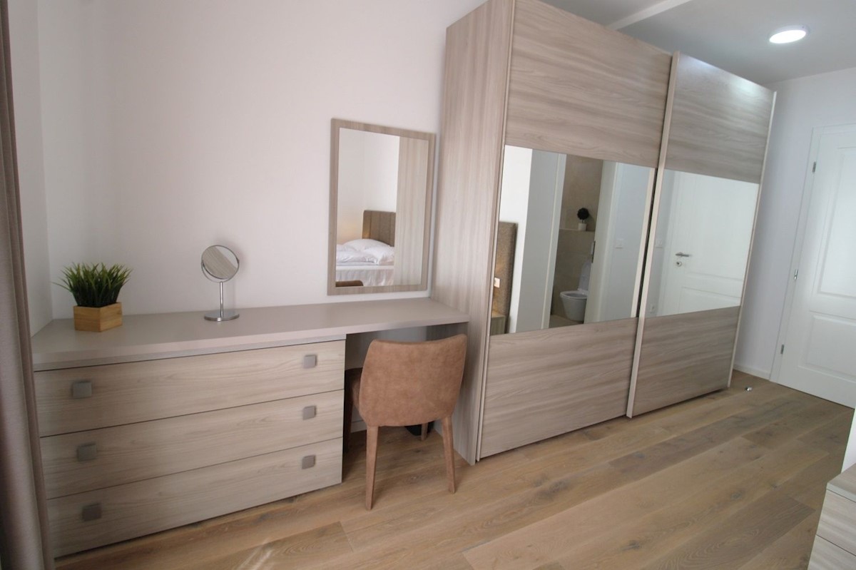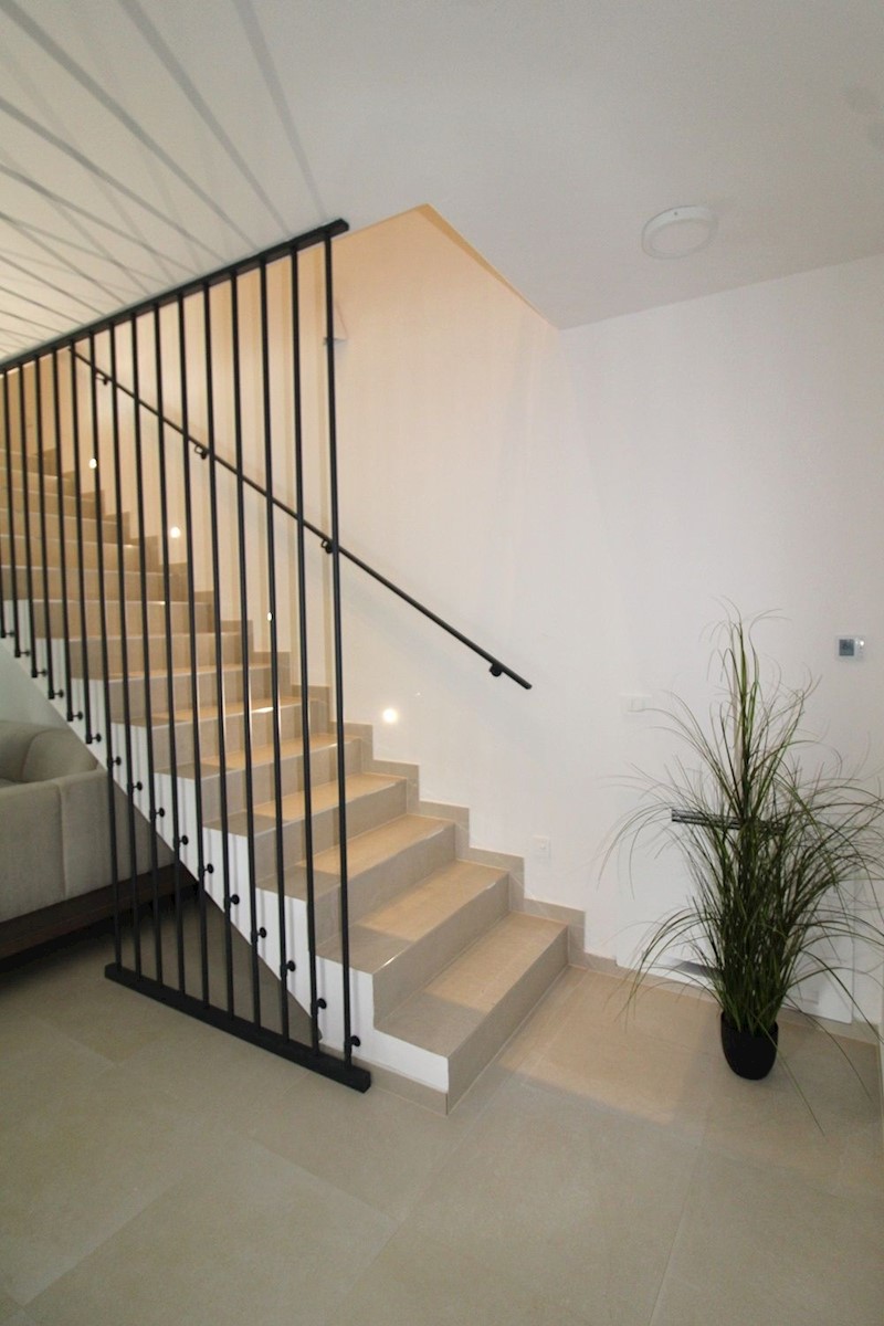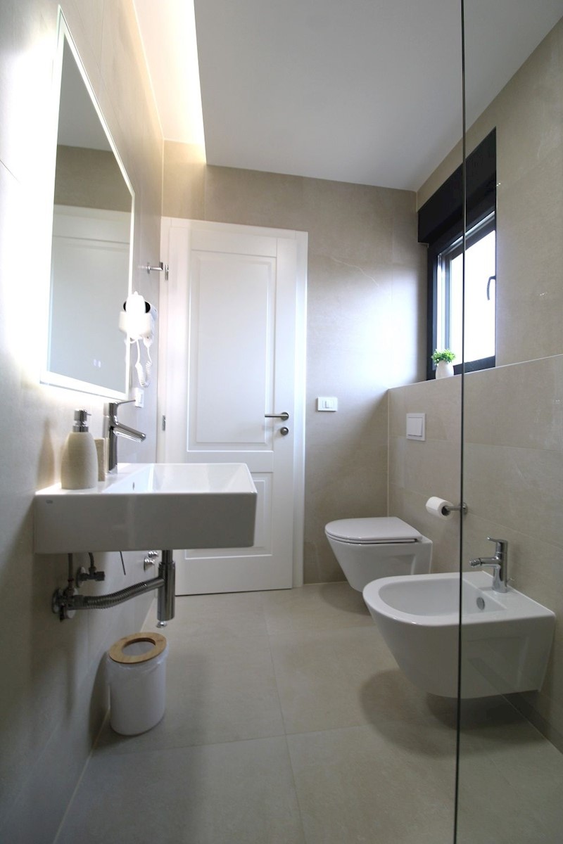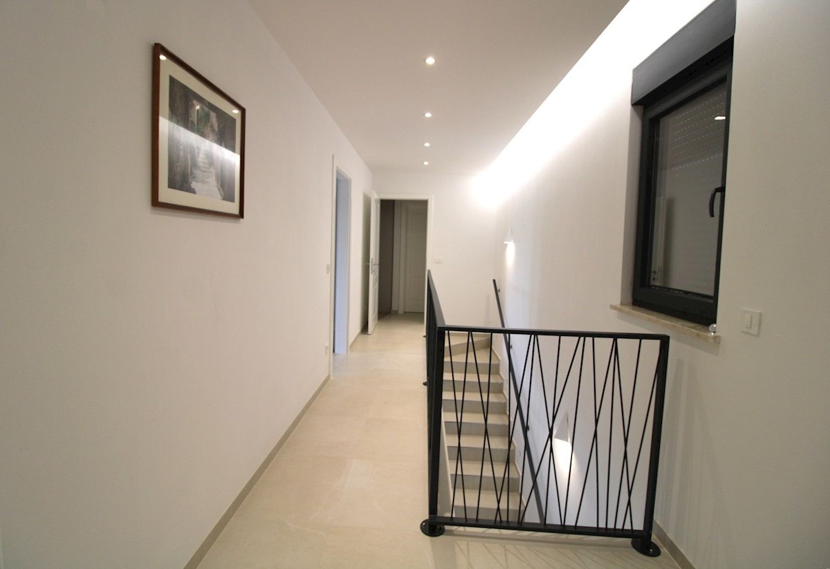 Luksuzna vila z bazenom, 2 km od morja in Poreča.Vila obsega pritličje in 1. nadstropje.V pritličju se nahaja predsoba, kurilnica s pralnico, WC za goste, ena spalnica z lastno kopalnico in lastnim izhodom na dvorišče, velika dnevna soba, jedilnica in ope