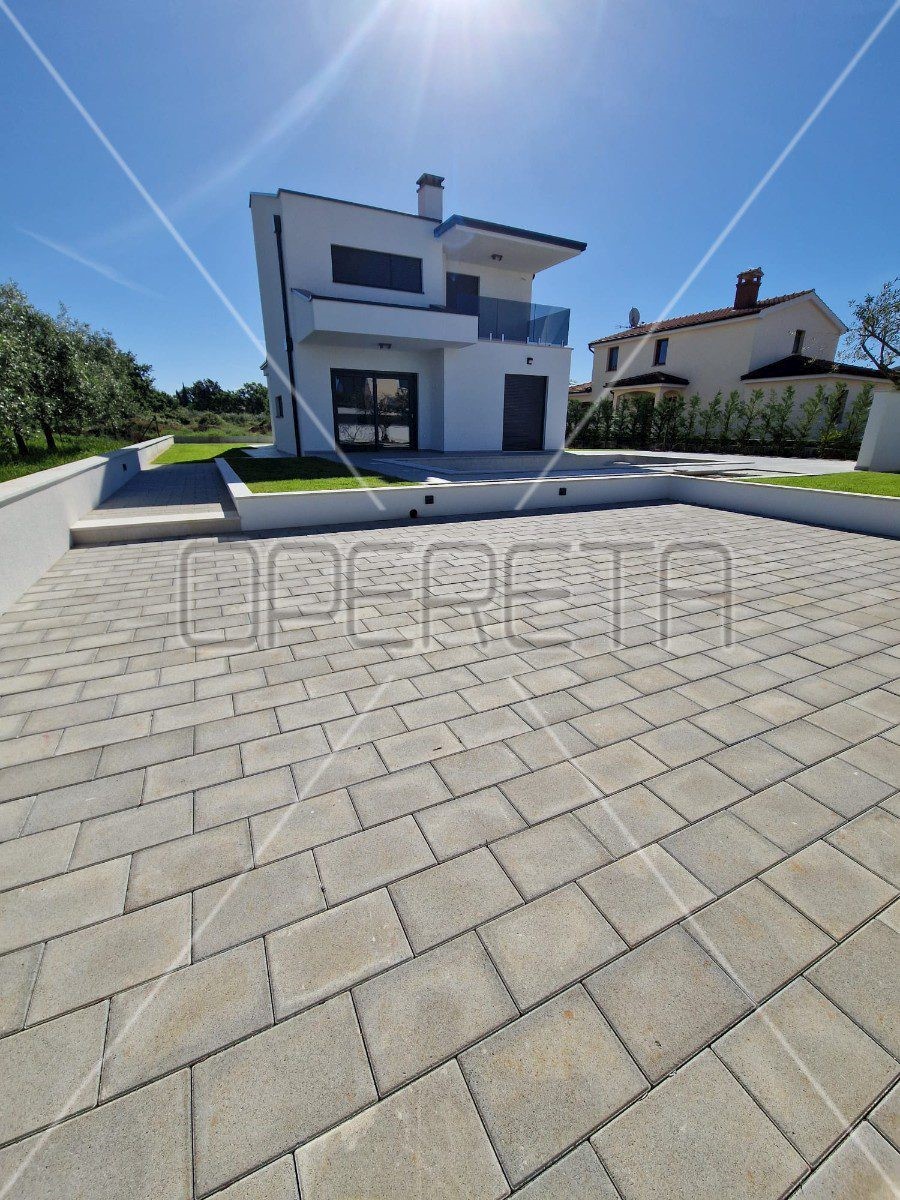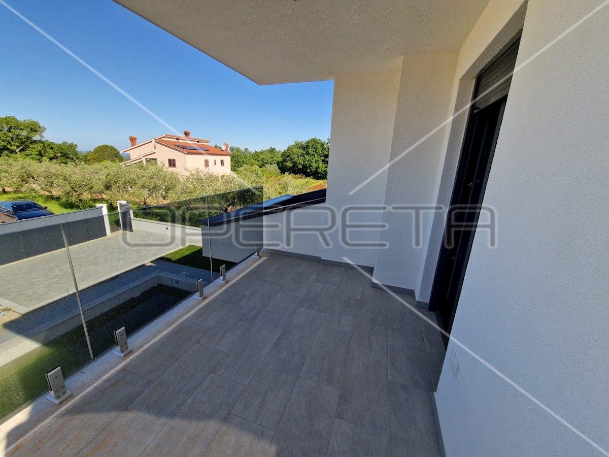 ISTRA, POREČ - Novozgrajena samostojna hiša z bazenom in pogledom na morjeV majhnem istrskem mestu, le 6 km od mesta Poreč, se na zemljišču 521 m2 nahaja ta izjemna hiša z bazenom s skupno bivalno površino 139,30 m2.V prvem nadstropju vas pozdravi prostor