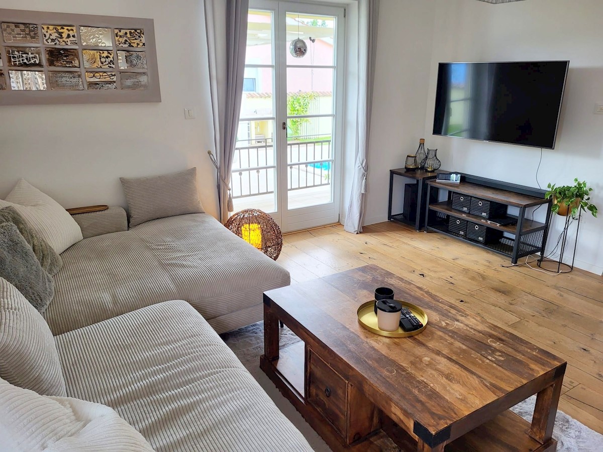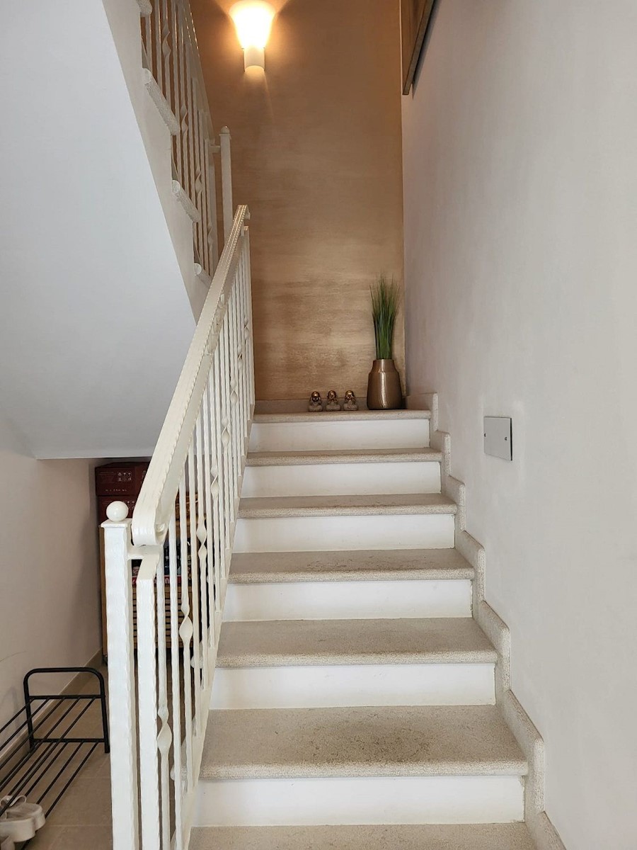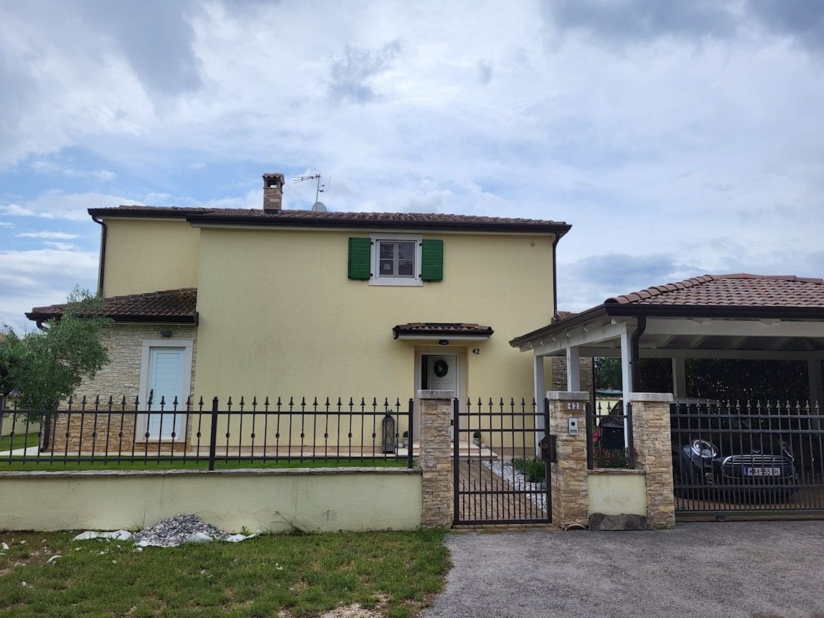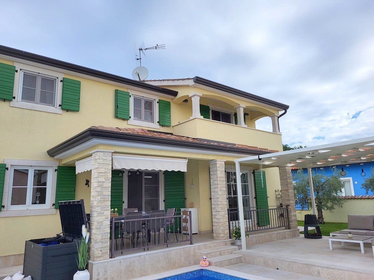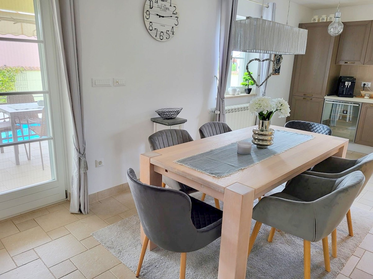 Nedaleč od Poreča in morja prodam samostojno hišo z bazenom. Hiša se nahaja na robu mesta z vso infrastrukturo.Pritličje hiše obsega predsobo, kuhinjo z jedilnico in dnevno sobo z izhodom na teraso, kopalnico, shrambo in tehnični prostor.Stopnišče nas vod