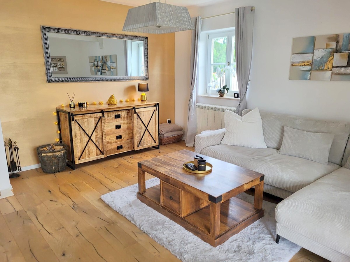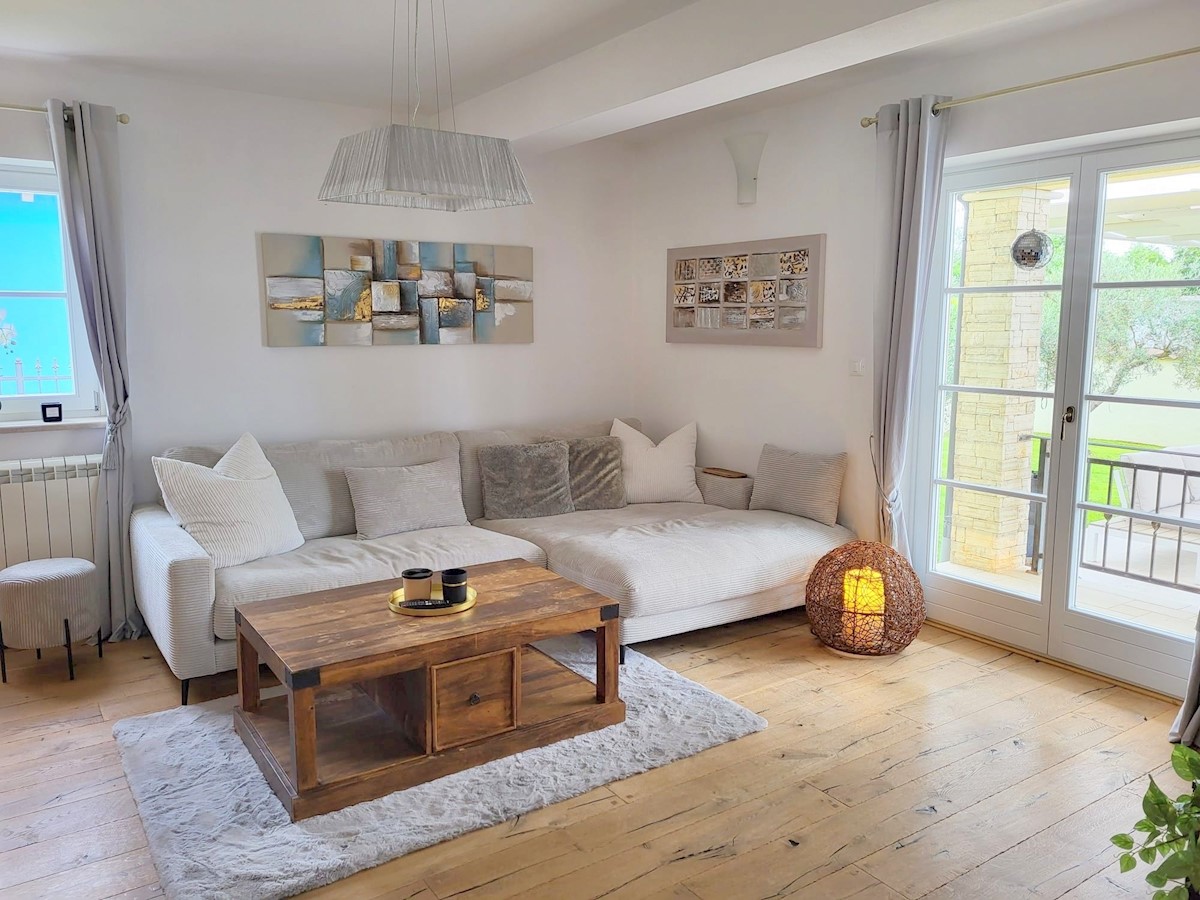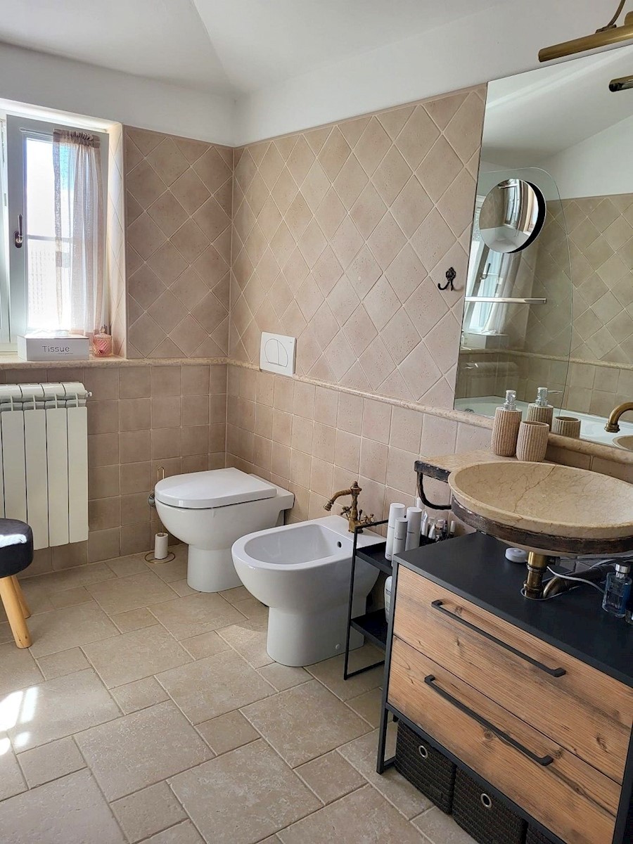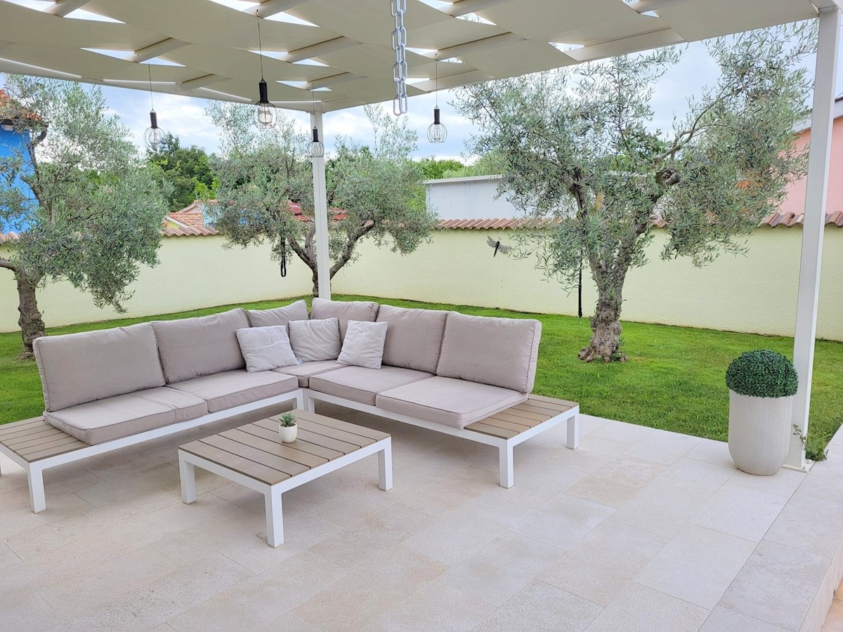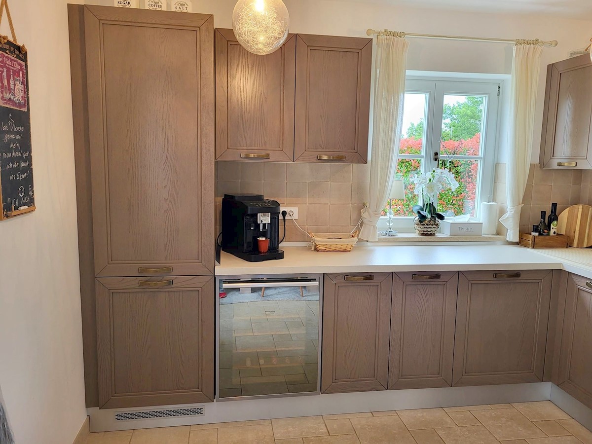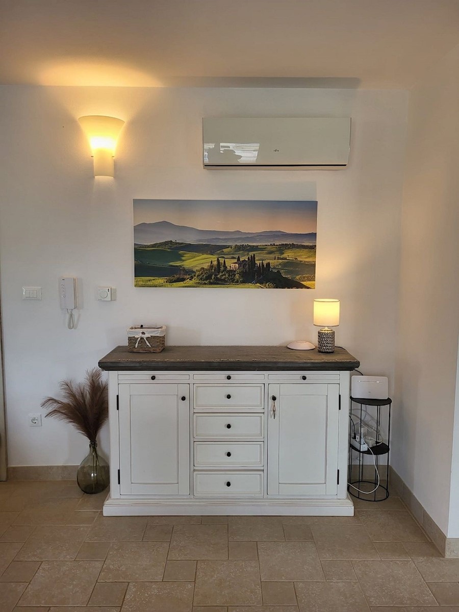 Nedaleč od Poreča in morja prodam samostojno hišo z bazenom. Hiša se nahaja na robu mesta z vso infrastrukturo.Pritličje hiše obsega predsobo, kuhinjo z jedilnico in dnevno sobo z izhodom na teraso, kopalnico, shrambo in tehnični prostor.Stopnišče nas vod