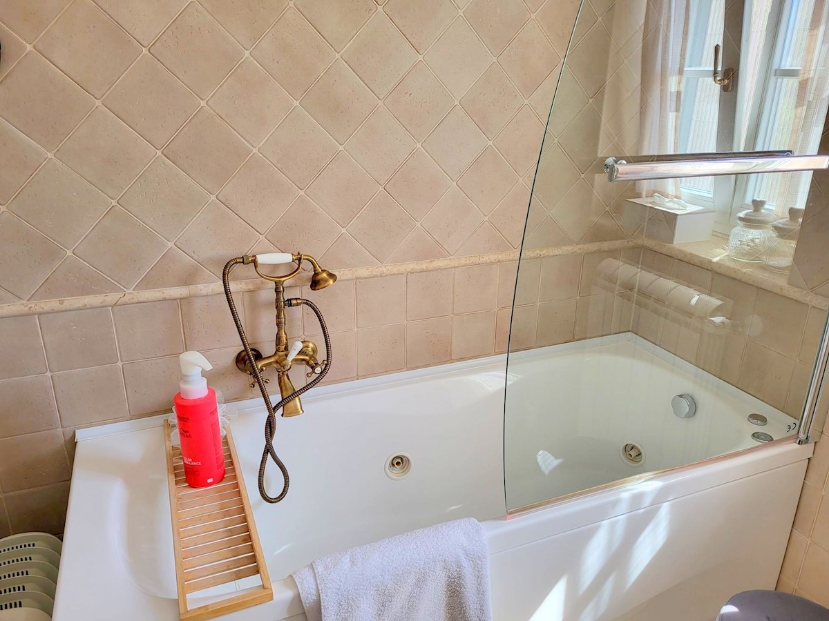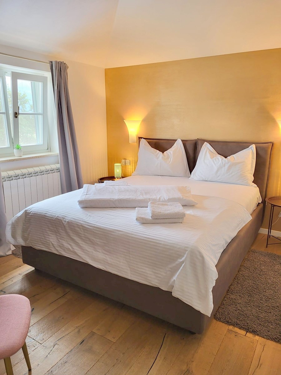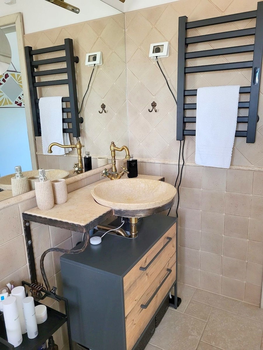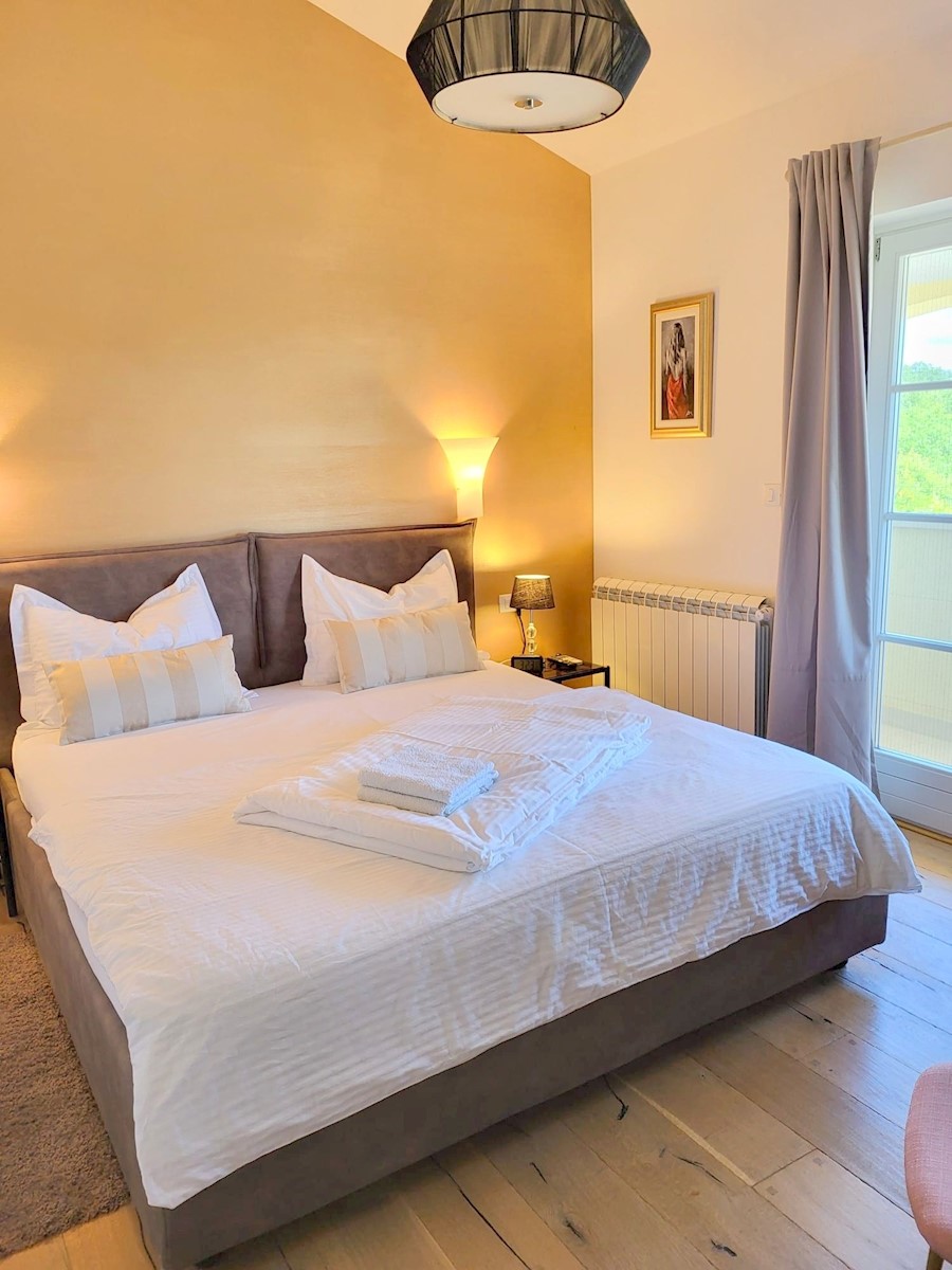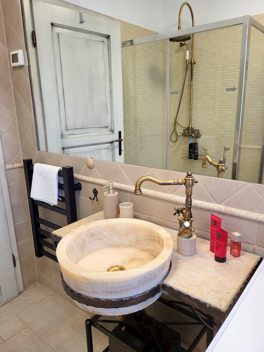 Nedaleč od Poreča in morja prodam samostojno hišo z bazenom. Hiša se nahaja na robu mesta z vso infrastrukturo.Pritličje hiše obsega predsobo, kuhinjo z jedilnico in dnevno sobo z izhodom na teraso, kopalnico, shrambo in tehnični prostor.Stopnišče nas vod