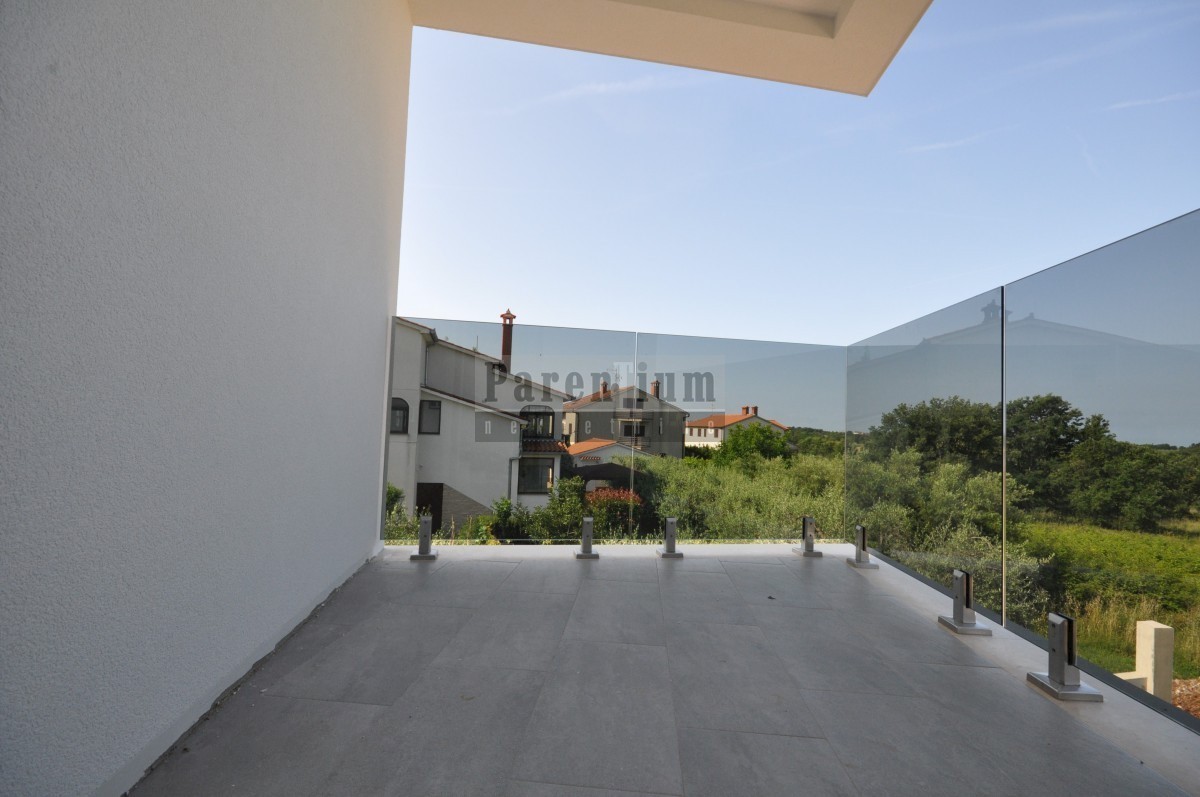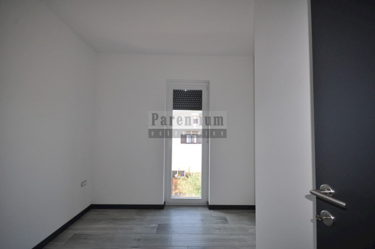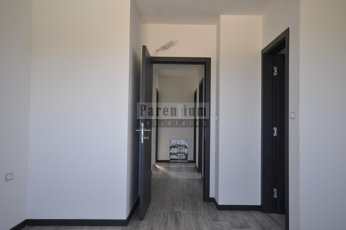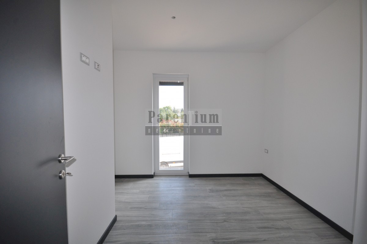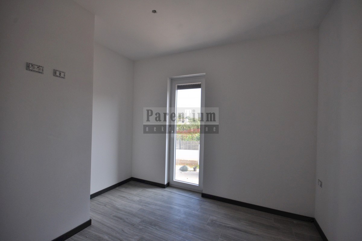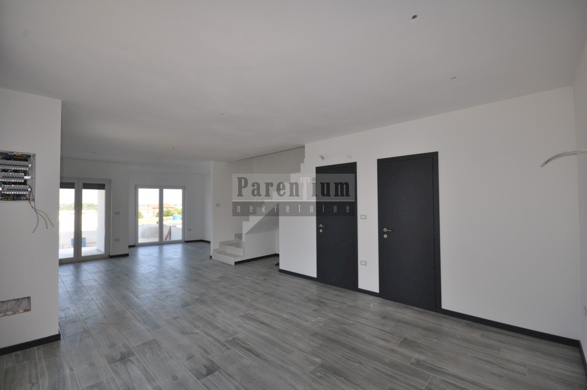 Poreč, bližje centru Prodamo moderno novo hišo dvojček, ki se nahaja na cca. 4,5 km od mesta Poreč in morja. Hiša se nahaja na obrobju vasi z odprtim pogledom na naravo in morje. Hiša v izmeri 96m2, v dveh etažah. V pritličju hiše je dnevna soba, kuhinja