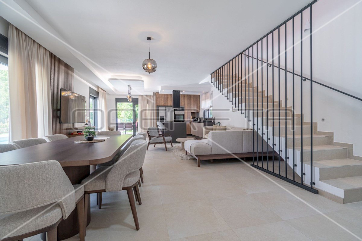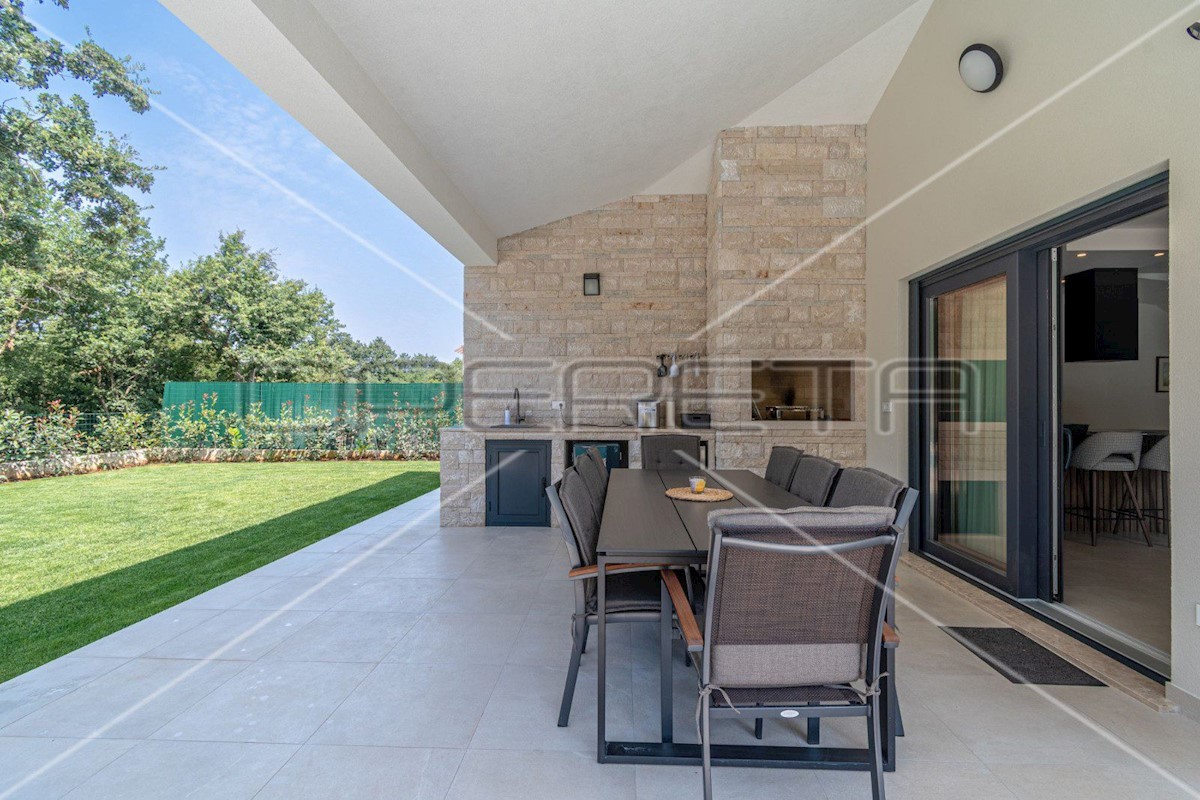 ISTRA, POREČ - Novozgrajena samostojna hiša z bazenomLe 1 km od centra Poreča se prodaja čudovita luksuzna vila, obdana z zelenjem. Vila je bila zgrajena z visokokakovostnimi materiali v sodelovanju z znanimi arhitekti in oblikovalci.V pritličju hiše je p