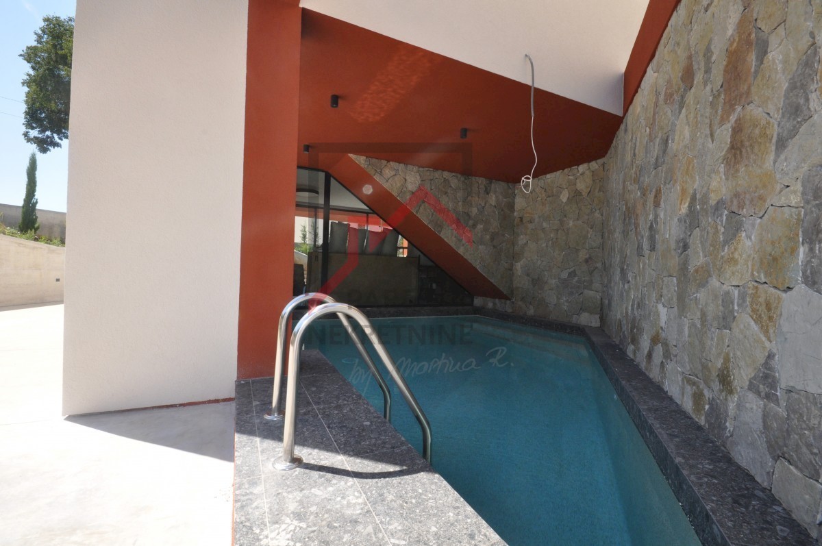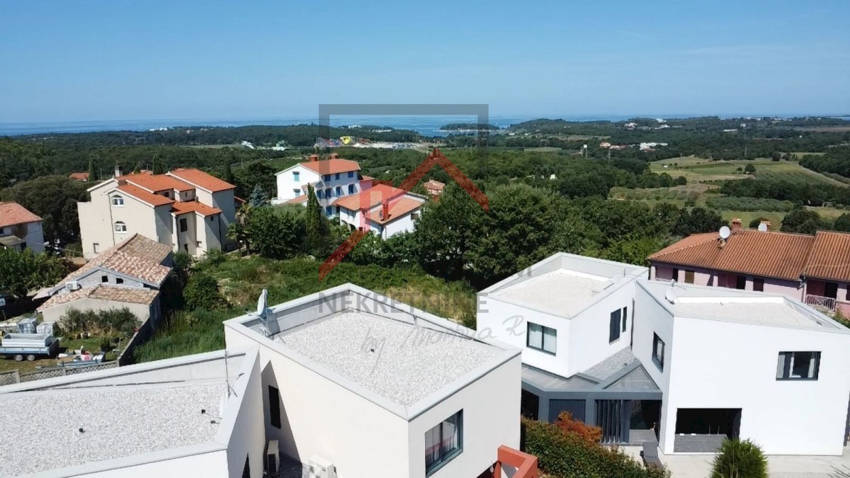 Istra, Poreč, okolica Le 2 km od morja in lepih plaž v mirni istrski vasi leži ta čudovita moderna vila. Hiša je edinstvena po načrtu z notranjim bazenom in velikimi steklenimi stenami. Zunanjost in notranjost se popolnoma združita v celoto ter nudita re