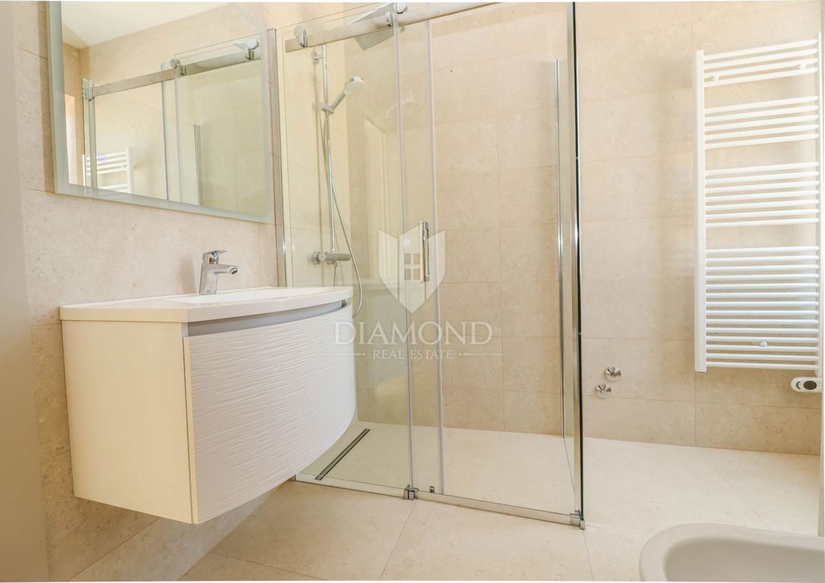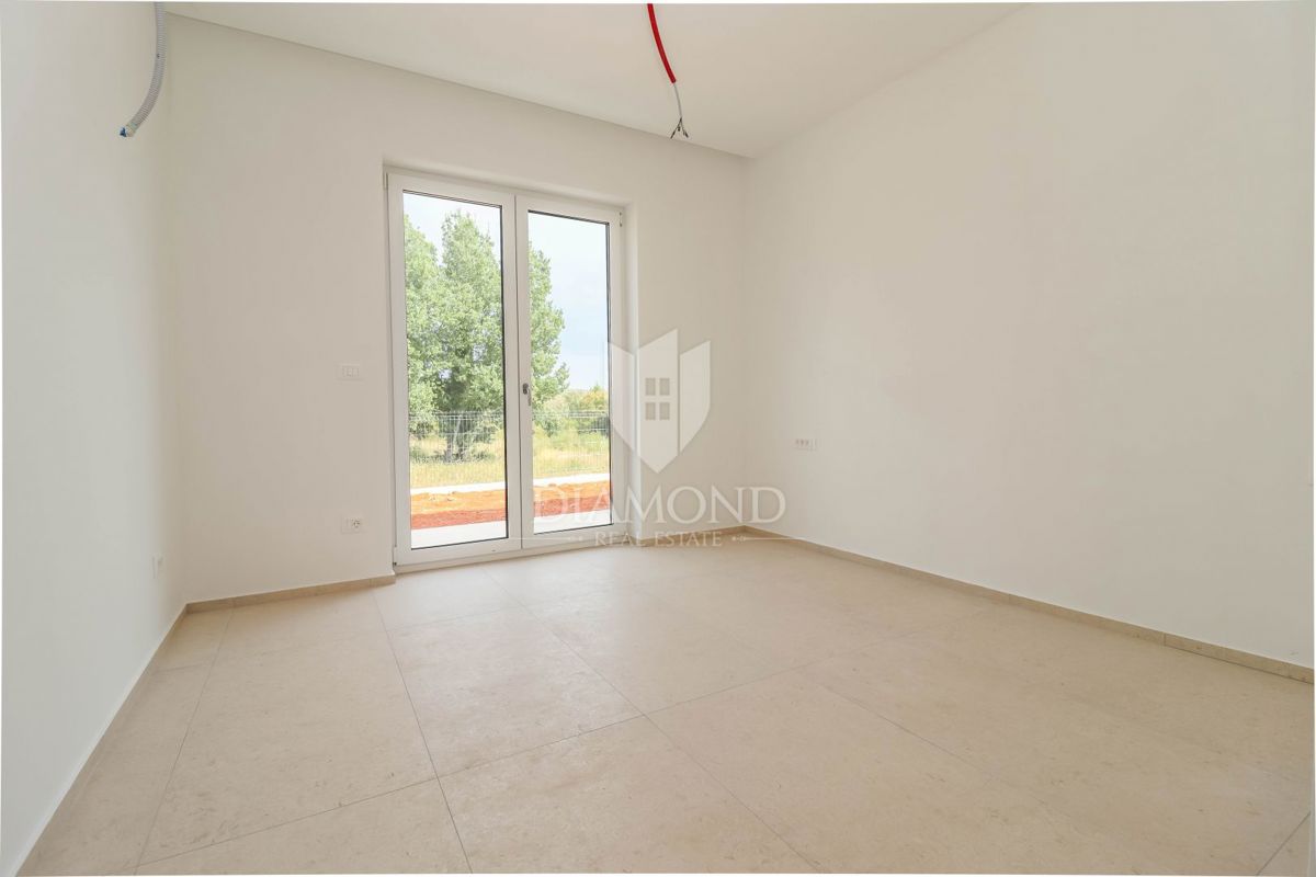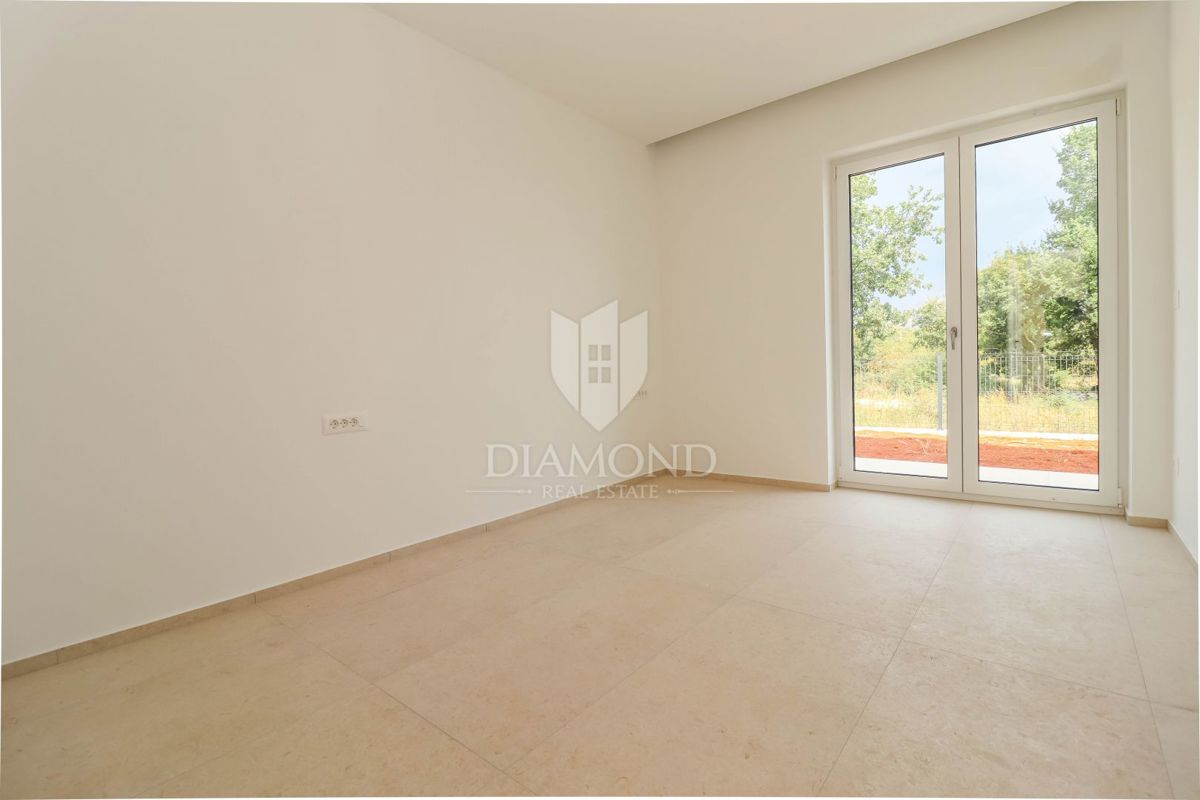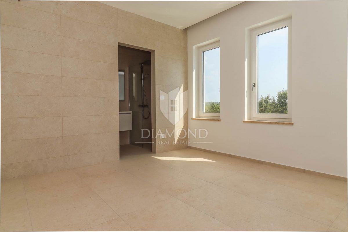 Poreč, okolica, pritlična hiša z bazenom na robu naselja! Le 15 minut vožnje od središča Poreča, Vrsarja in prvih plaž ter 30 minut od Rovinja, se nahaja ta fantastična pritlična hiša. Hiša s skupno neto površino 114 m² ponuja potrebno udobje, medtem ko