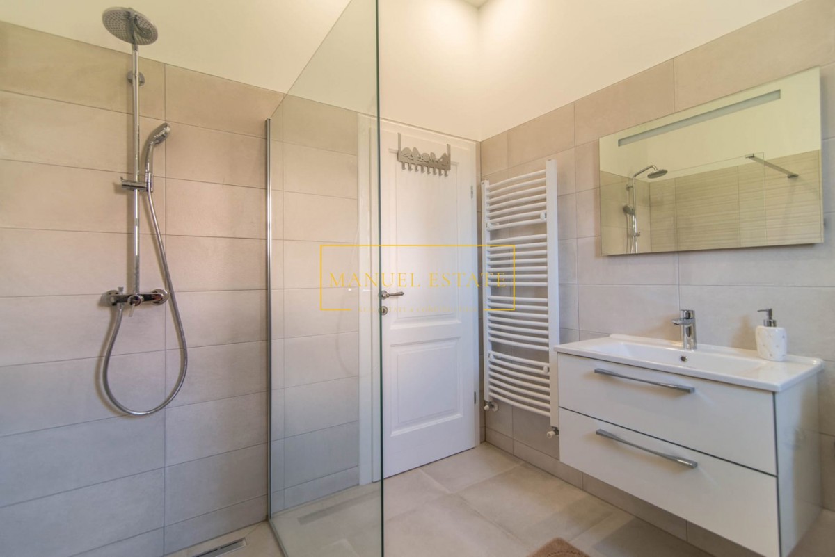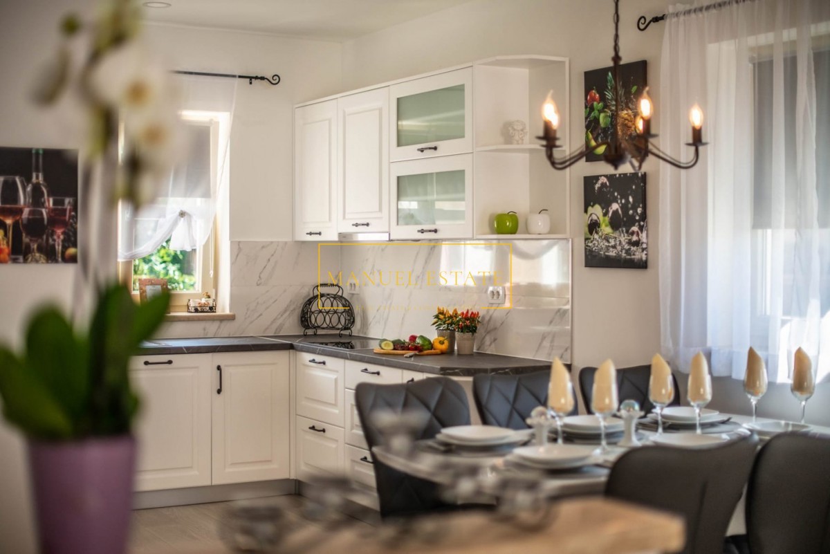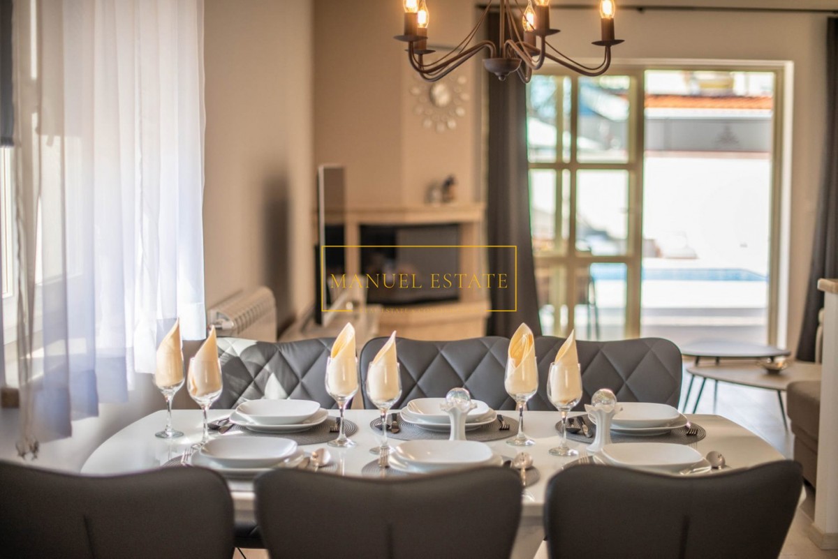 Vila z bazenom, blizu Poreča, površine 140 m2, na parceli 560 m2. Razprostira se v dveh etažah; v pritličju je hodnik, kopalnica, shramba, wc, spalnica, kuhinja z jedilnico in dnevno sobo, pokrita terasa in kurilnica. V prvem nadstropju sta dve spalnici,