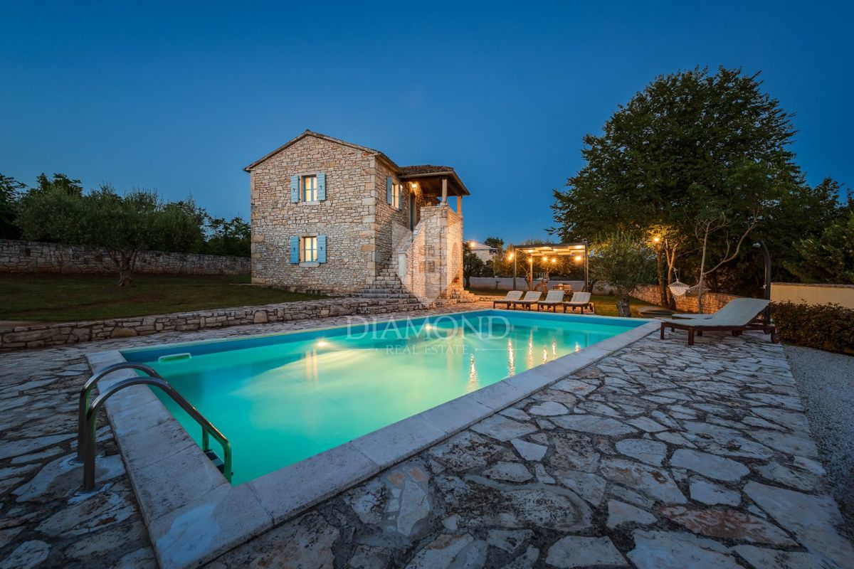 Istrska avtohtona kamnita hiša z bazenom, blizu Poreča! Ta čudovita istrska kamnita hiša z bazenom je naprodaj. Hiša se nahaja na mirnem mestu le petnajst minut od mesta Poreč. Nahaja se na prostorni parceli 969 m2 in ponuja 110 m2 neto bivalne površine v