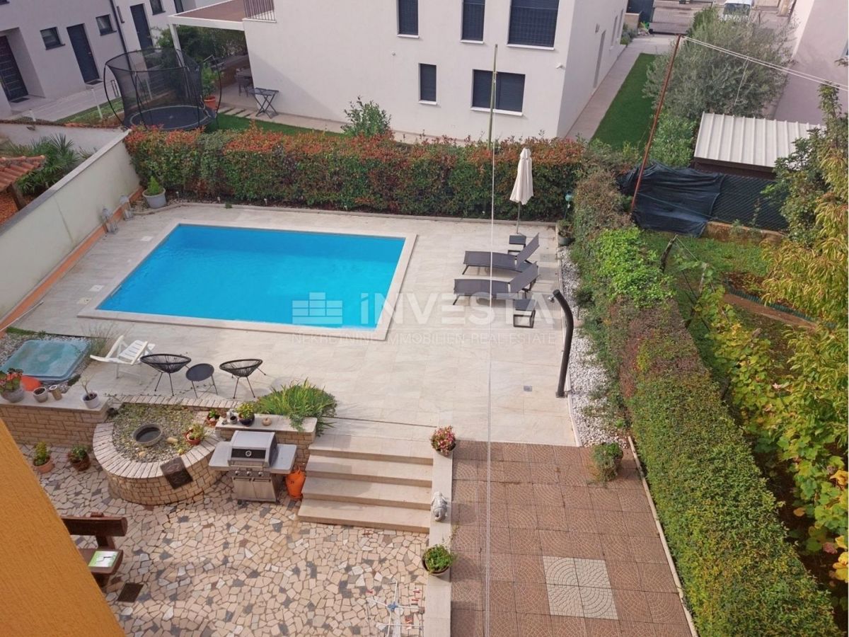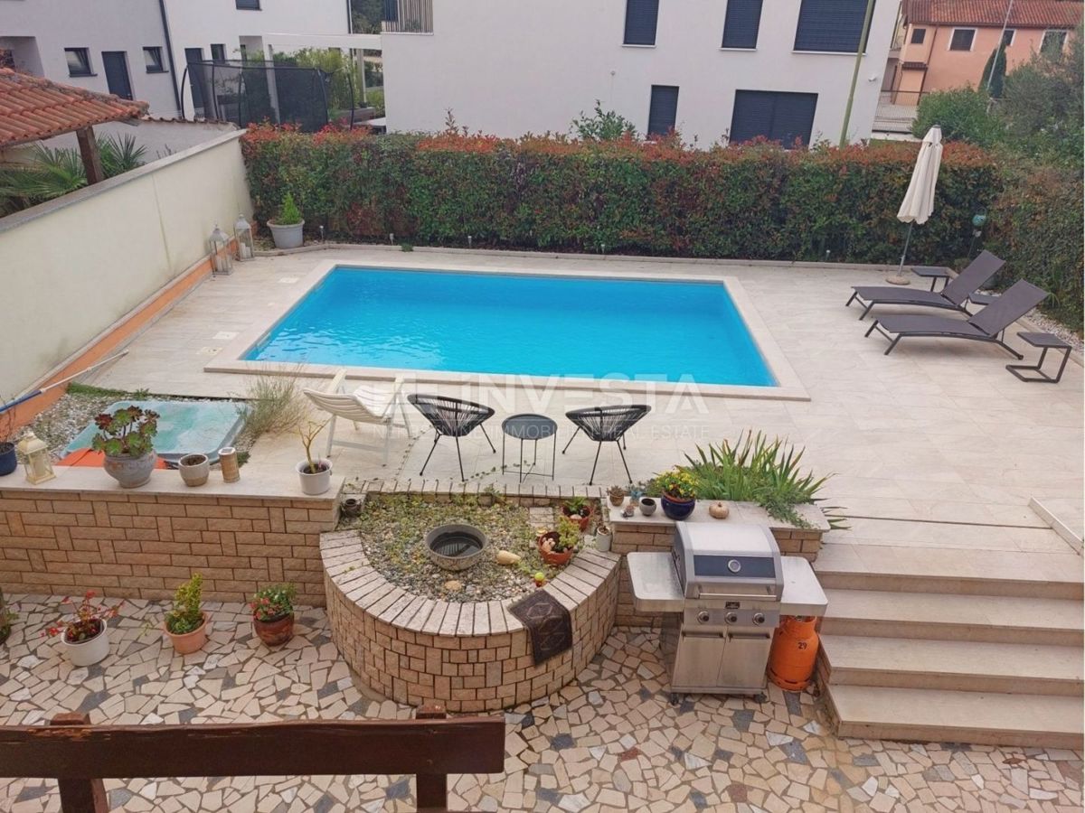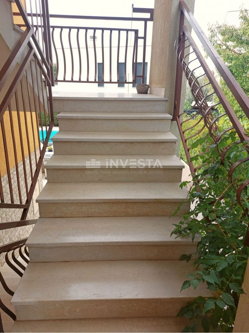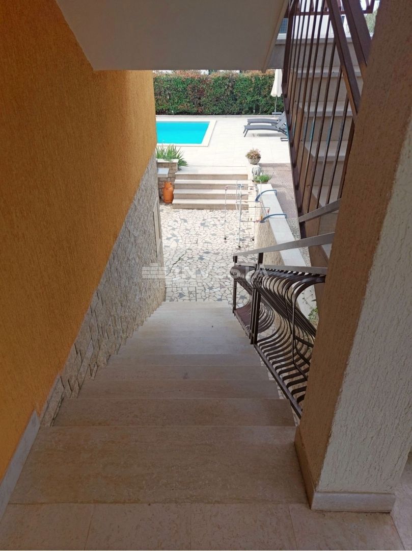 Na prodajo je hiša s bazenom in pogledom na morje, ki se nahaja na izjemni lokaciji le 800 m od morja. Hiša ima bruto površino 320 m², 280 m² vrta in sestavlja 4 stanovanjske enote. V kleti hiše je stanovanje velikosti 75 m². Je zelo sončno, saj ima vsak