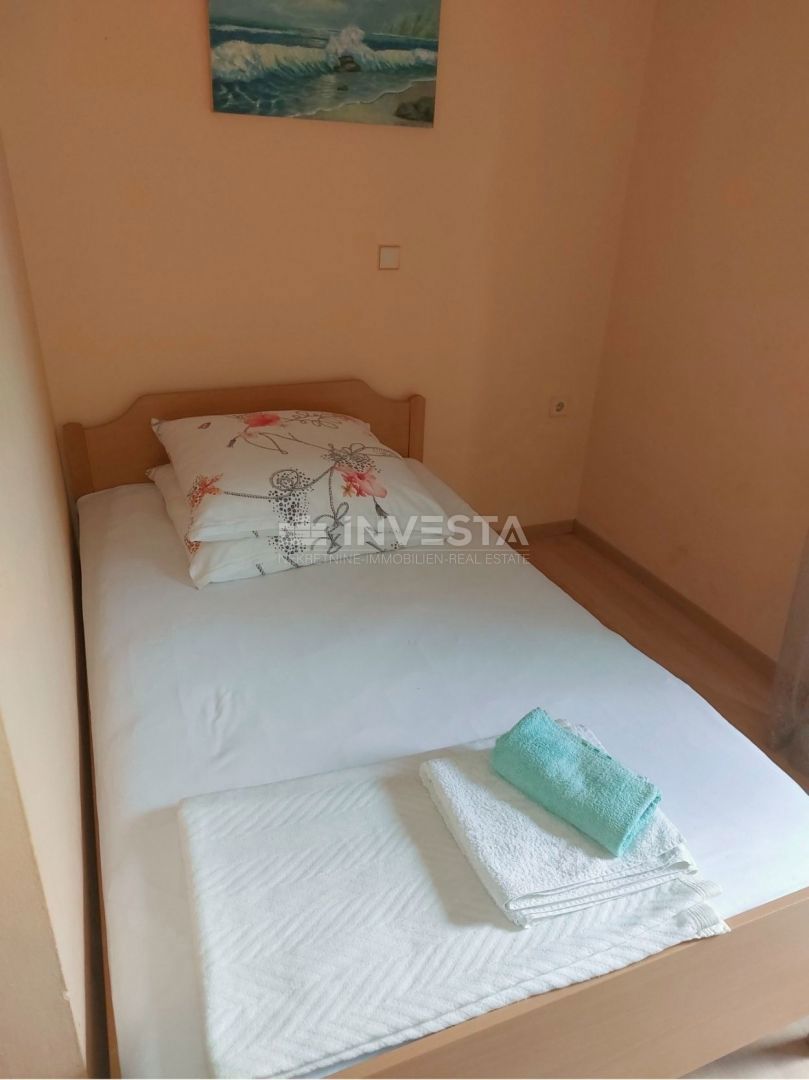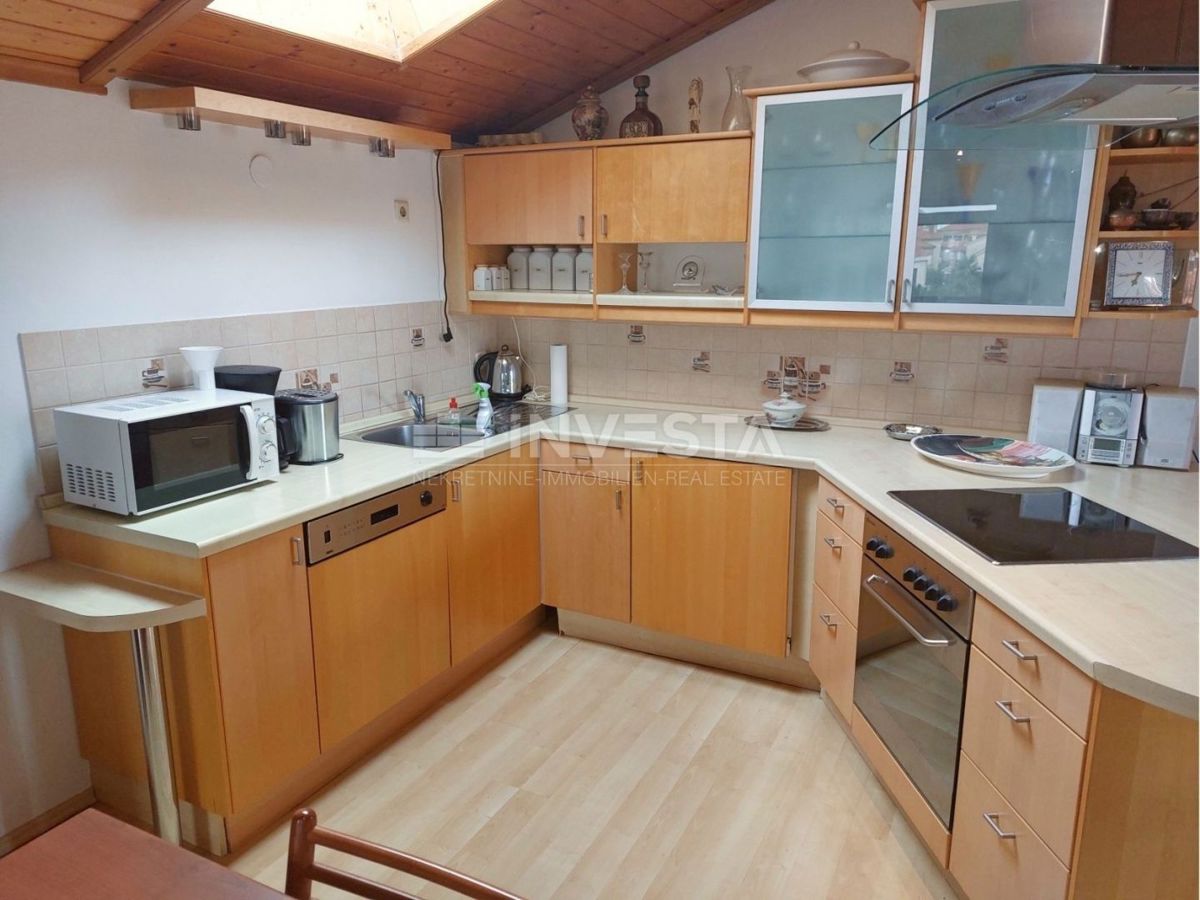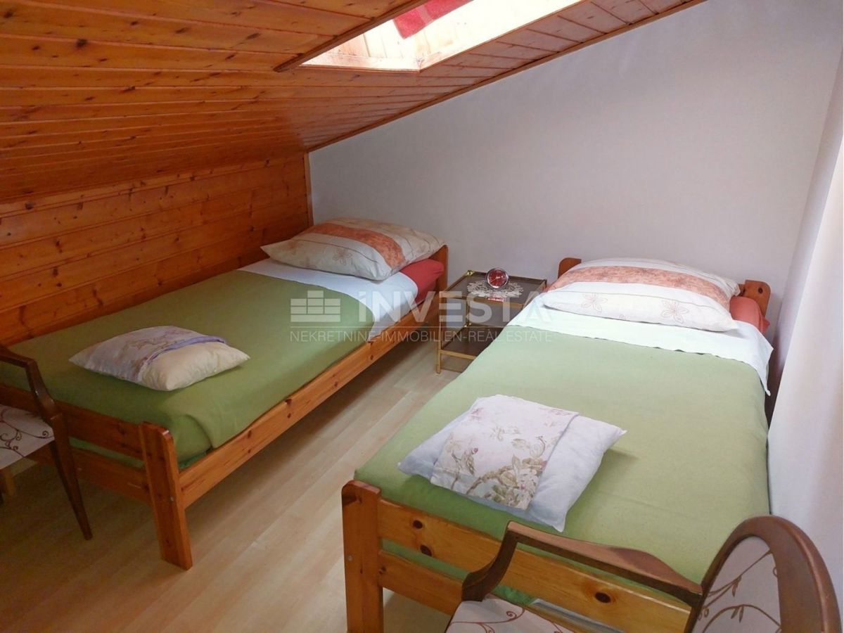 Na prodajo je hiša s bazenom in pogledom na morje, ki se nahaja na izjemni lokaciji le 800 m od morja. Hiša ima bruto površino 320 m², 280 m² vrta in sestavlja 4 stanovanjske enote. V kleti hiše je stanovanje velikosti 75 m². Je zelo sončno, saj ima vsak