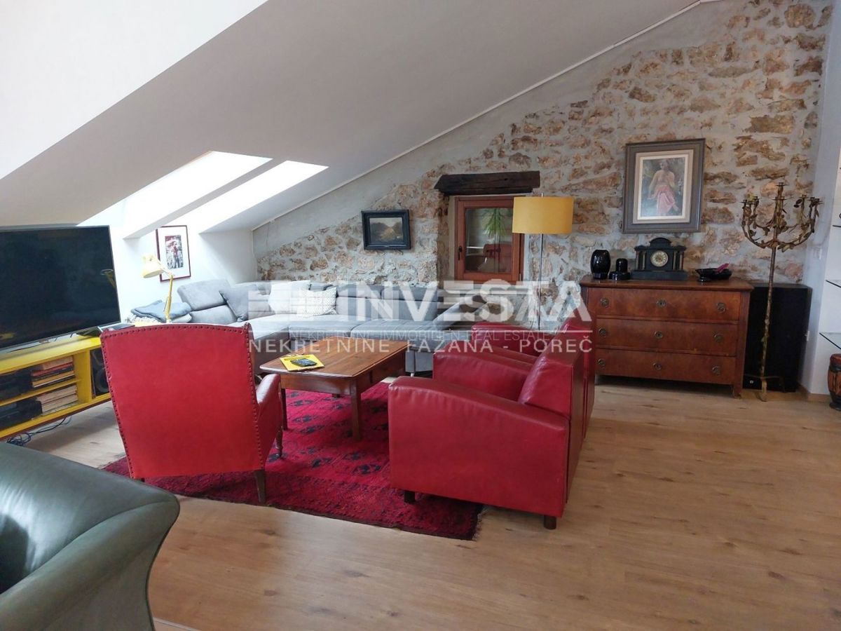 Le samo 9 km od središča Poreča je na voljo ta obnovljena tradicionalna istrska hiša. Hiša izhaja iz leta 1852 in je bila popolnoma obnovljena leta 2016. Razteza se čez tri etaže in ima tri stanovanjske enote s skupno površino 405 m² ter dve terasi s 70