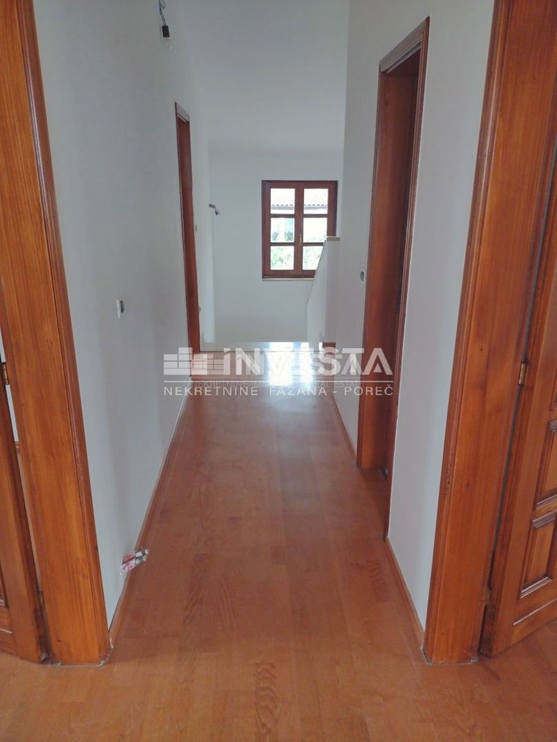 V okolici Poreča je v prodaji kamnita vila s površino 180 m², zgrajena na parceli velikosti 450 m². Hiša se razteza čez tri etaže: klet, pritličje in prvo nadstropje. Klet ima površino približno 60 m² in so bile izvedene vse potrebne instalacije. Lahko s