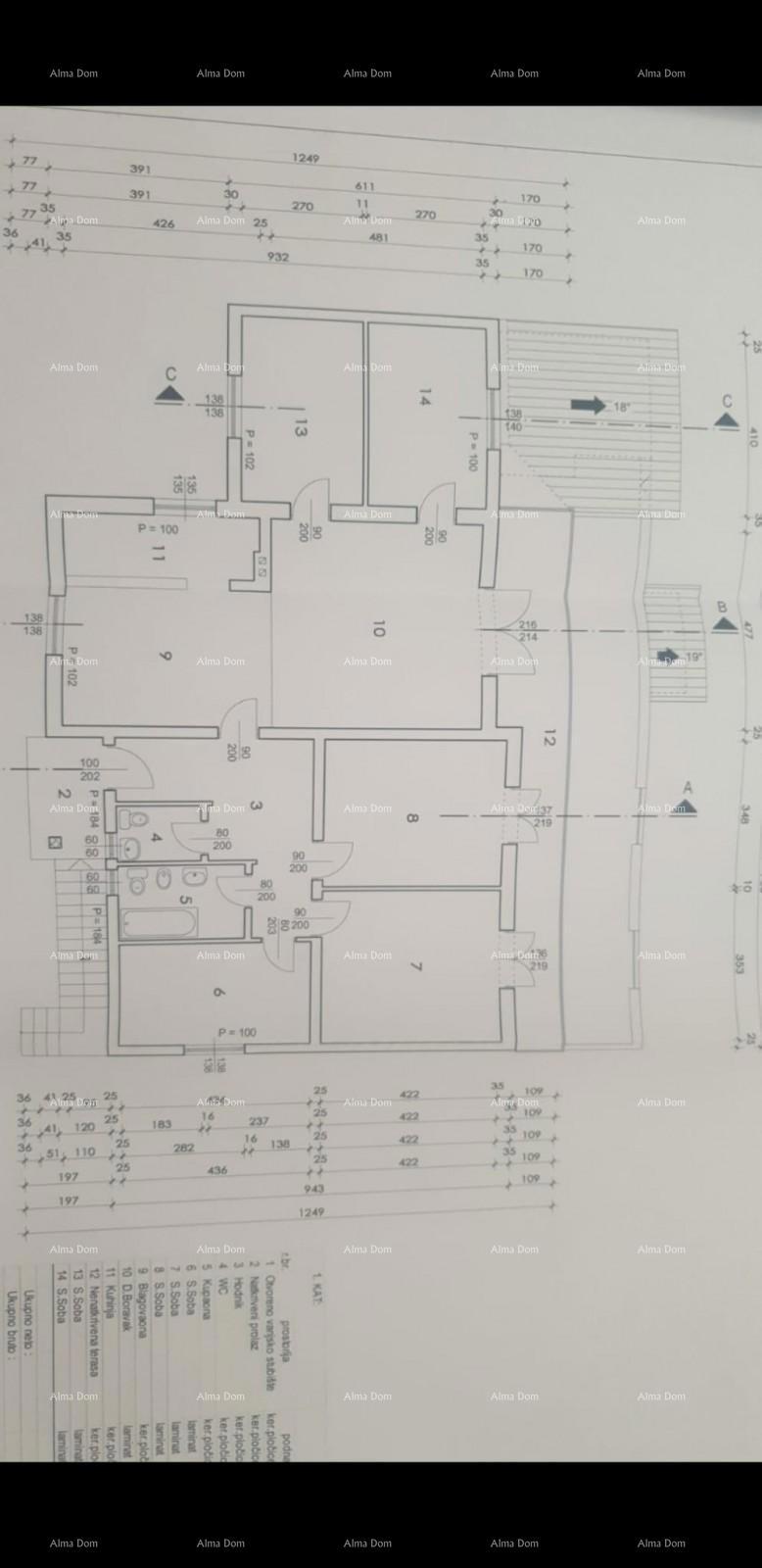 Prodamo hišo (z 2 apartmajema) 3 km od centra Poreča in morja. Površina 350m2. Dvorišče 880m2. 3 parkirna mesta, z možnostjo več. Možna je gradnja objekta z več stanovanjskimi enotami, predelanimi v vilo ali 2 hiši za najem z bazenom. Obsega 2 nadstropja,