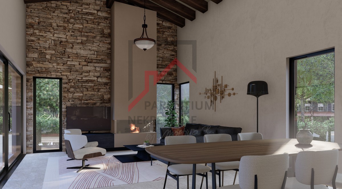 Na prodaj je luksuzna dizajnerska kamnita vila z neverjetno kombinacijo tradicije in sodobnega udobja. Nahaja se le 5 kilometrov od mesta Poreč in prvih plaž, na mirni lokaciji, obdani z gozdom in naravo, idealni za sprostitev in uživanje v zasebnosti. Vi