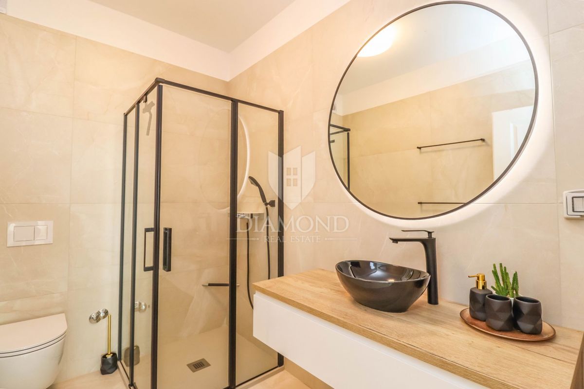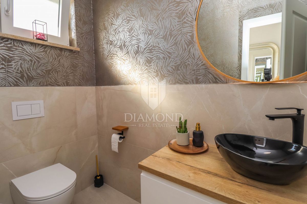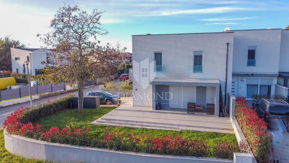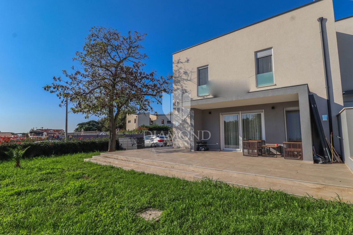 Poreč, neposredna okolica, luksuzno opremljena vrstna hiša z vrtom! V majhnem mestu, ki je 5 km od centra mesta in le 3 km do prvih plaž, se prodaja ta hiša na koncu niza. Nahaja se na začetku vasi in ga obvladuje prostorno ograjeno dvorišče 120 m2 z 2