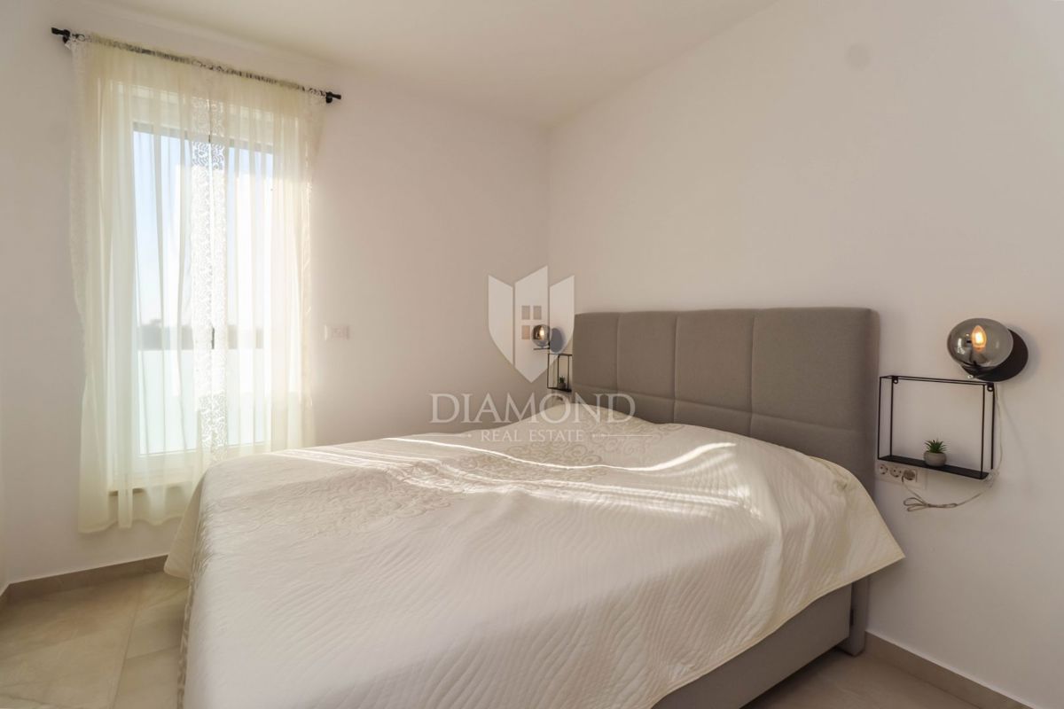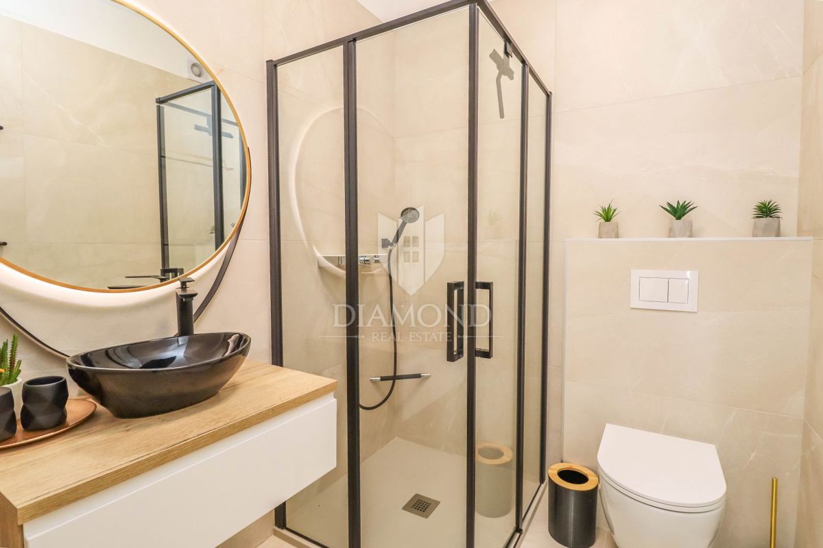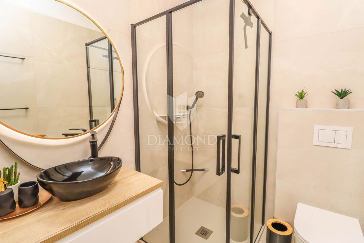 Poreč, neposredna okolica, luksuzno opremljena vrstna hiša z vrtom! V majhnem mestu, ki je 5 km od centra mesta in le 3 km do prvih plaž, se prodaja ta hiša na koncu niza. Nahaja se na začetku vasi in ga obvladuje prostorno ograjeno dvorišče 120 m2 z 2