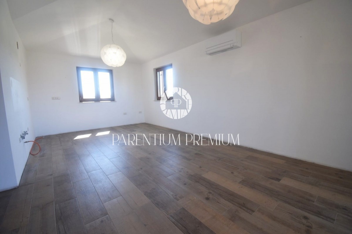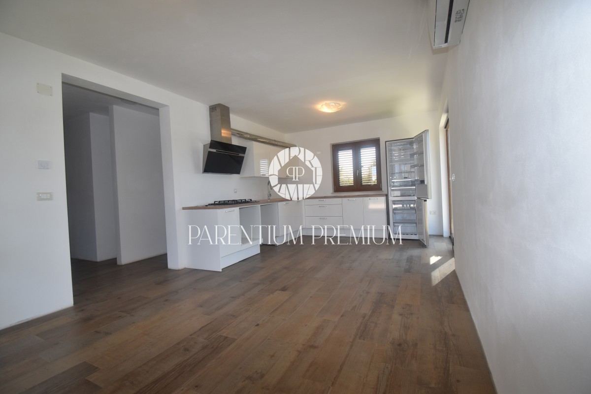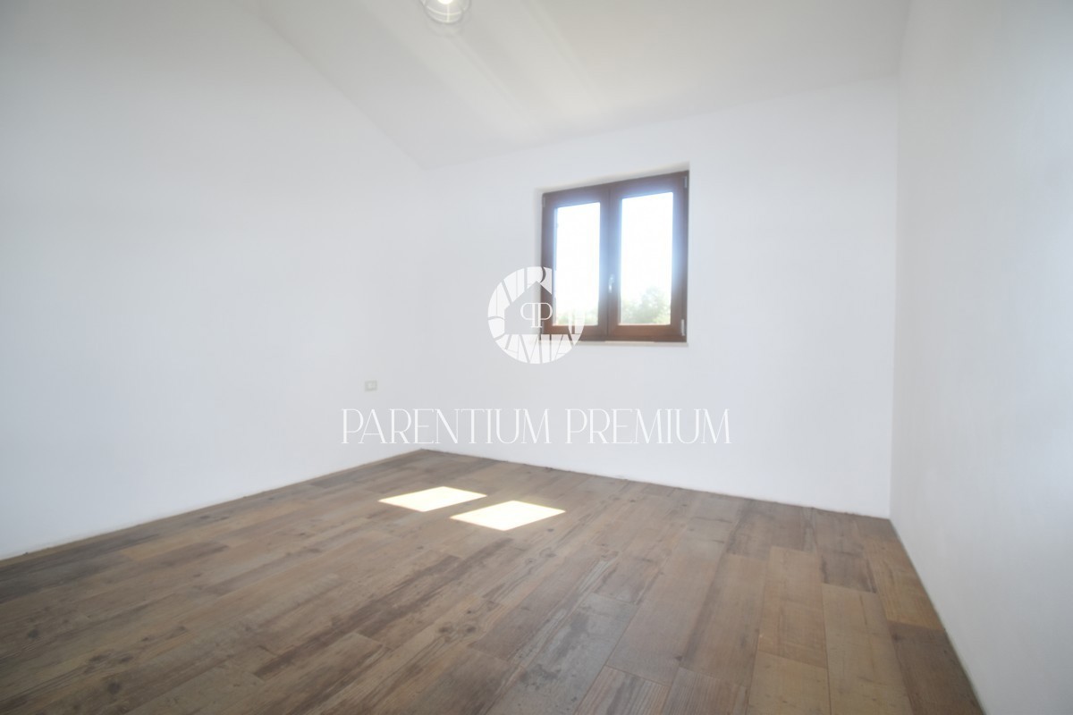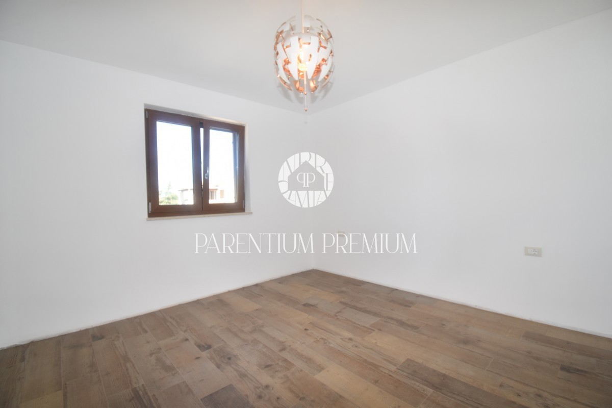 Poreč, okolica Ta čudovita hiša z dvema ločenima stanovanjskima enotama se nahaja le 800 m od prvih lepih plaž. Hiša s skupno bivalno površino 144 m2 se nahaja na zemljišču velikosti 502 m2 in je sestavljena iz pritličja in nadstropja. V pritličju se na