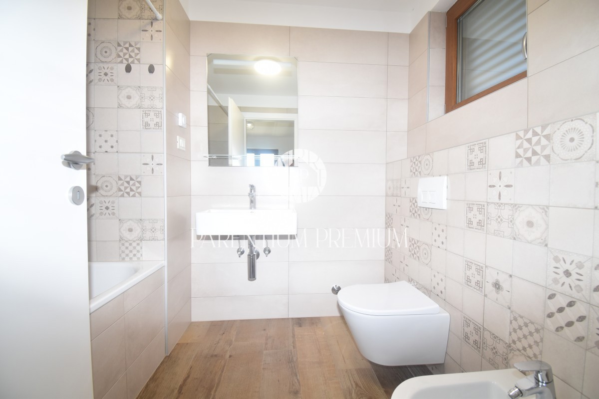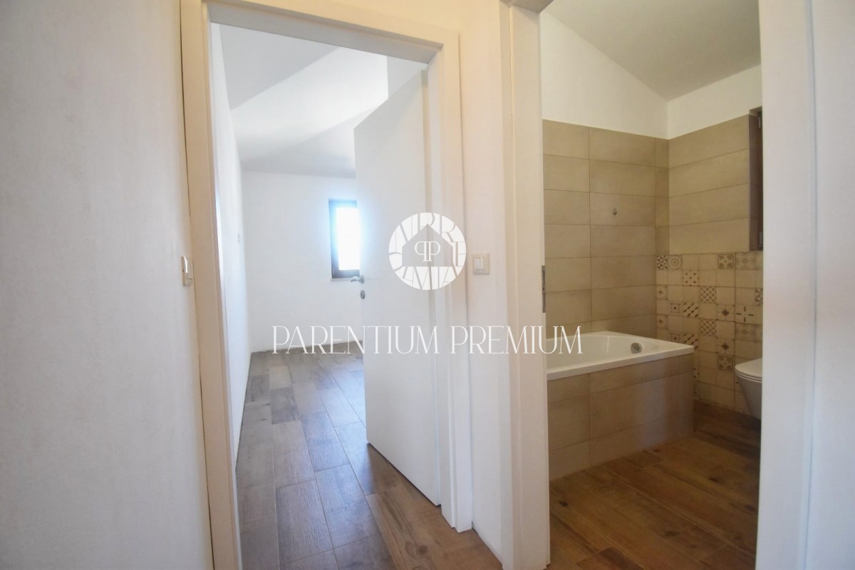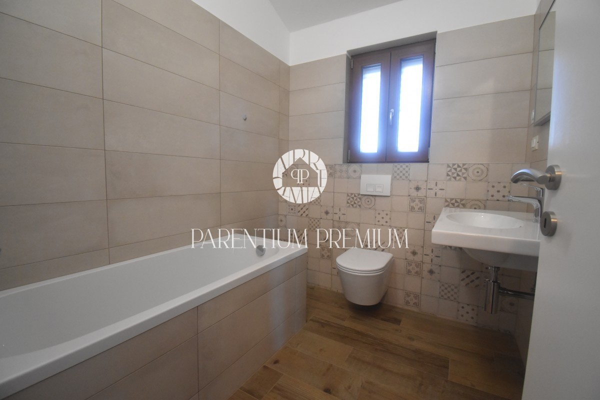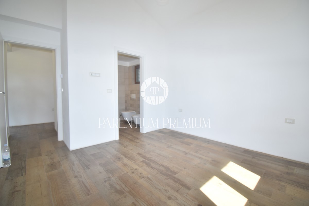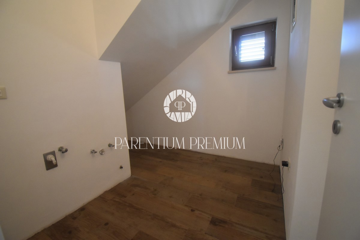Poreč, okolica Ta čudovita hiša z dvema ločenima stanovanjskima enotama se nahaja le 800 m od prvih lepih plaž. Hiša s skupno bivalno površino 144 m2 se nahaja na zemljišču velikosti 502 m2 in je sestavljena iz pritličja in nadstropja. V pritličju se na
