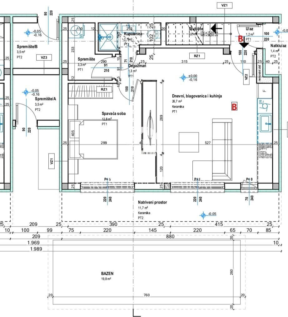 Istra, Poreč - okolica, pogled na morje Prodamo novo moderno hišo z bazenom skupne površine 149m2 in čudovitim pogledom na morje iz vseh etaž, z možnostjo razdelitve na 2 stanovanjski enoti. Hiša je razdeljena na 3 etaže. V pritličju je osvetljena dnevn