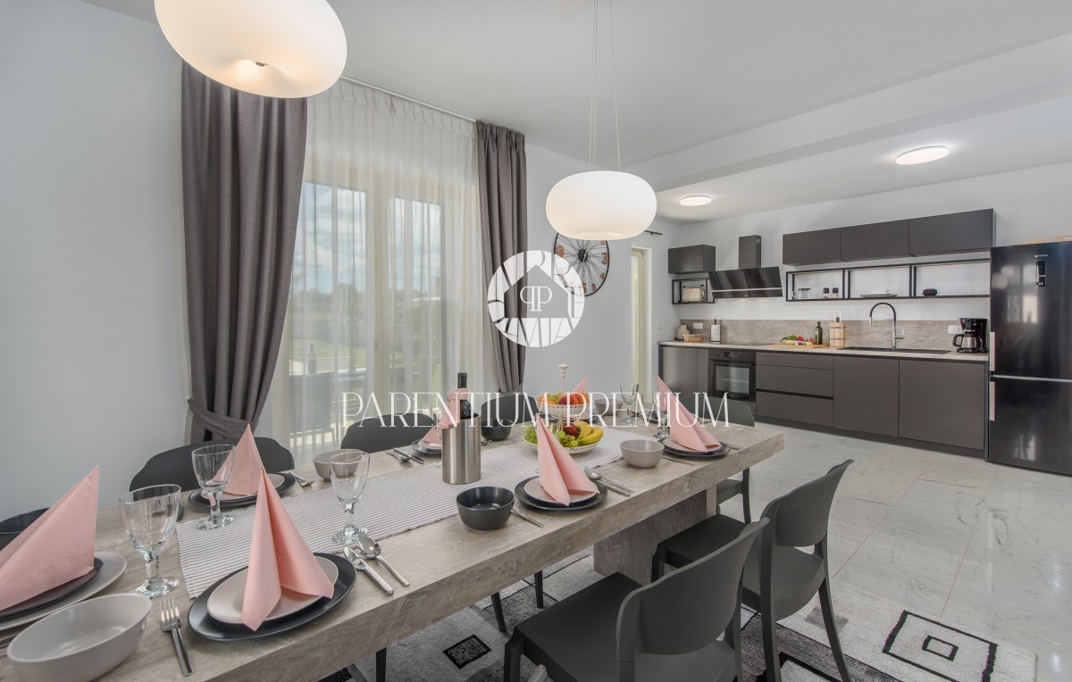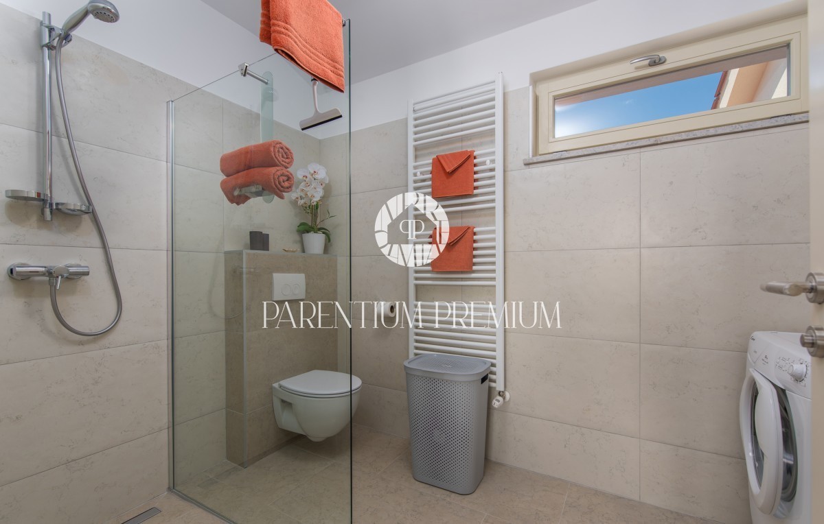 Istra, okolica Poreča Prodamo čudovito hišo dvojček v okolici Poreča. Hiša se nahaja v mirni ulici majhnega mesta, 10 km od Poreča in 9 km od morja. Hiša je sestavljena iz pritličja in prvega nadstropja. V pritličju je predprostor, spalnica z lastno kopa