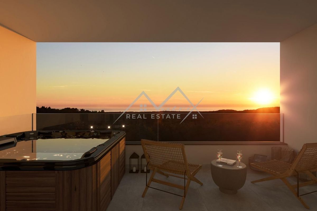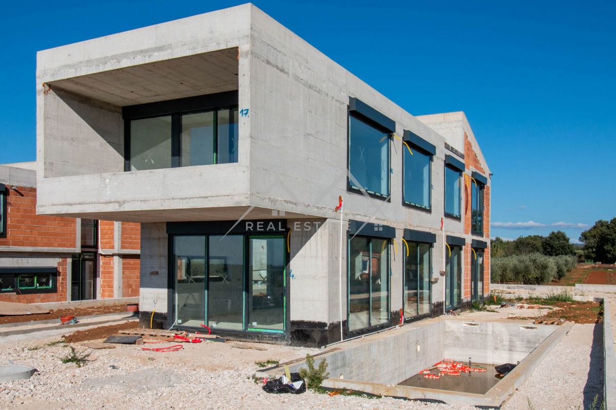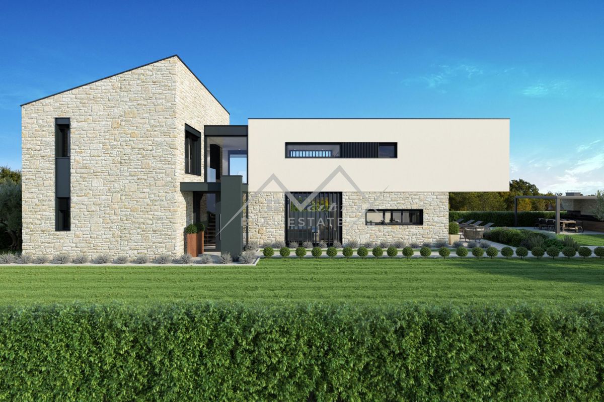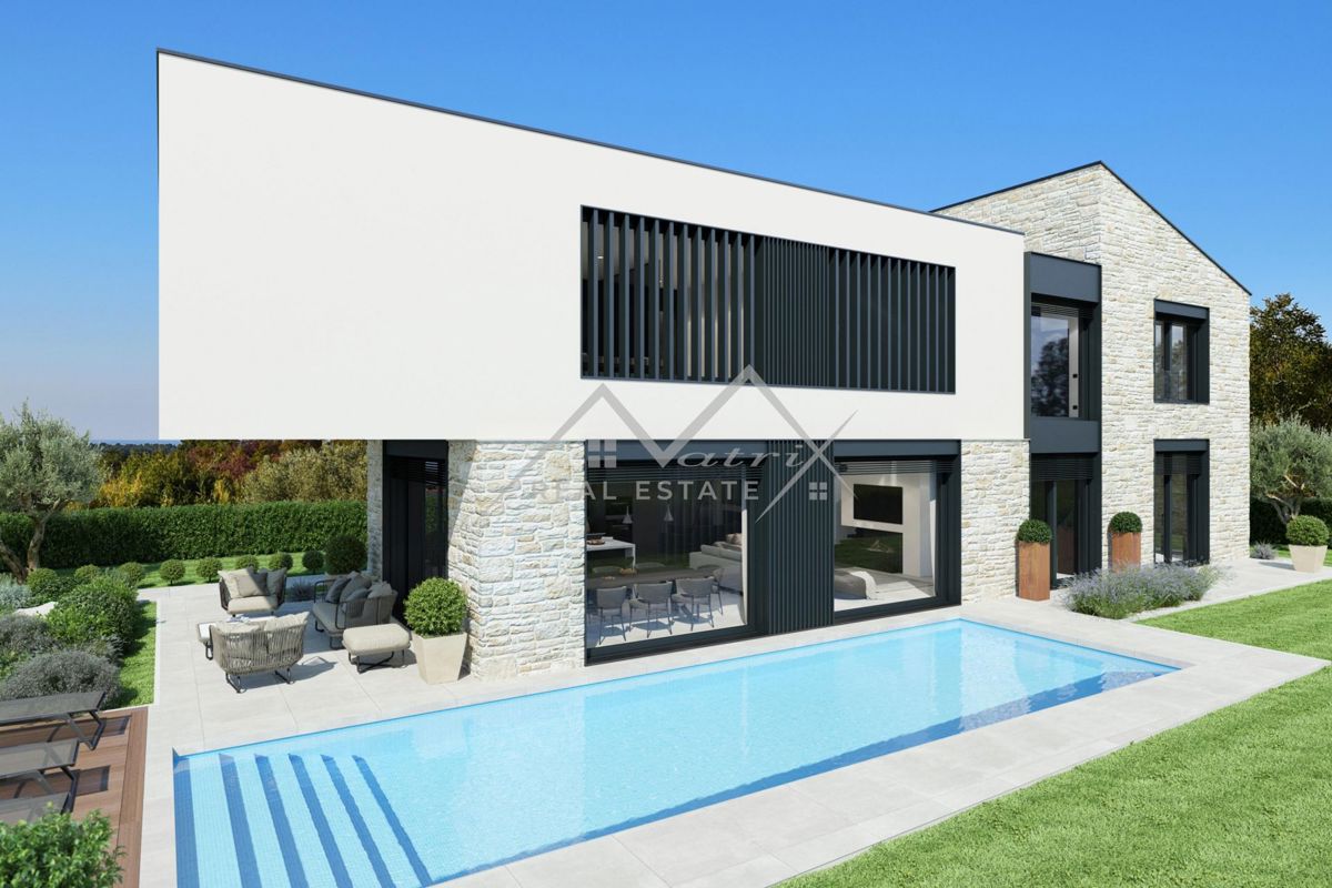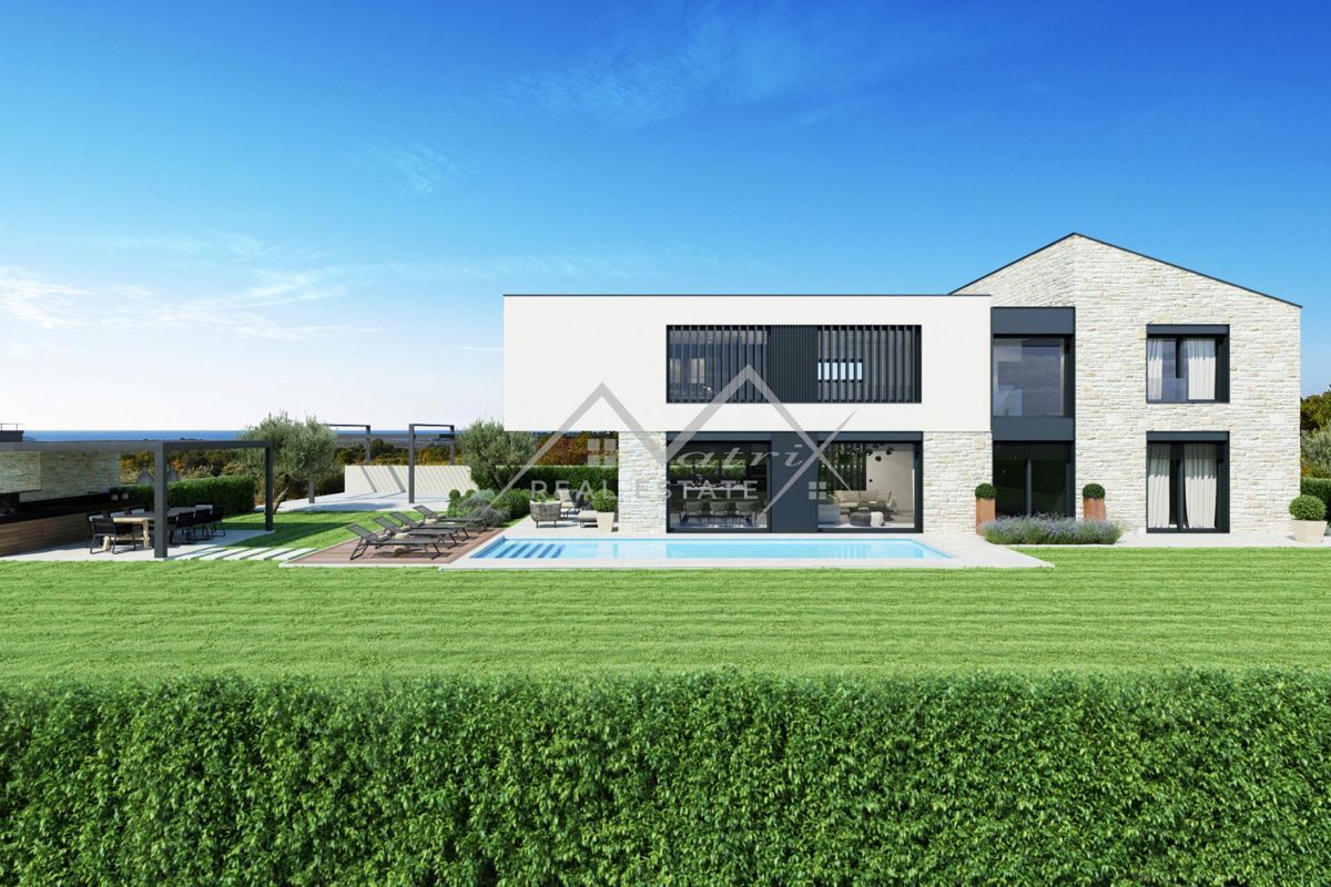 Okolica Poreča - Moderna vila z bazenom z odprtim pogledom na morje le 5 km od morja in centra Poreča! Ta luksuzna vila z bazenom, ki se nahaja v mirni vasici, obdani s čudovito naravo in romantičnimi vinogradi, le 5 km od morja in centra Poreča, ponuja
