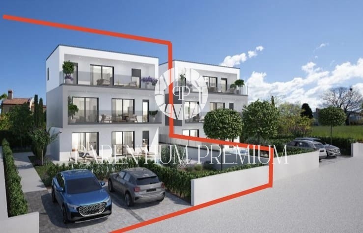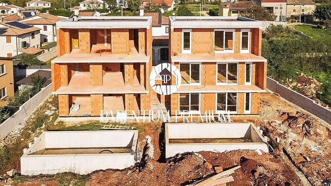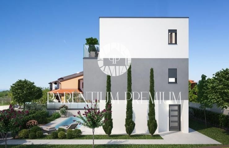 Istria, Parenzo - dintorni, vista sul mare Una nuova casa moderna in vendita con piscina con una superficie totale di 155 m2 e una bellissima vista sul mare da tutti i piani. La casa è divisa in 3 piani. Al piano terra si trova un luminoso soggiorno con