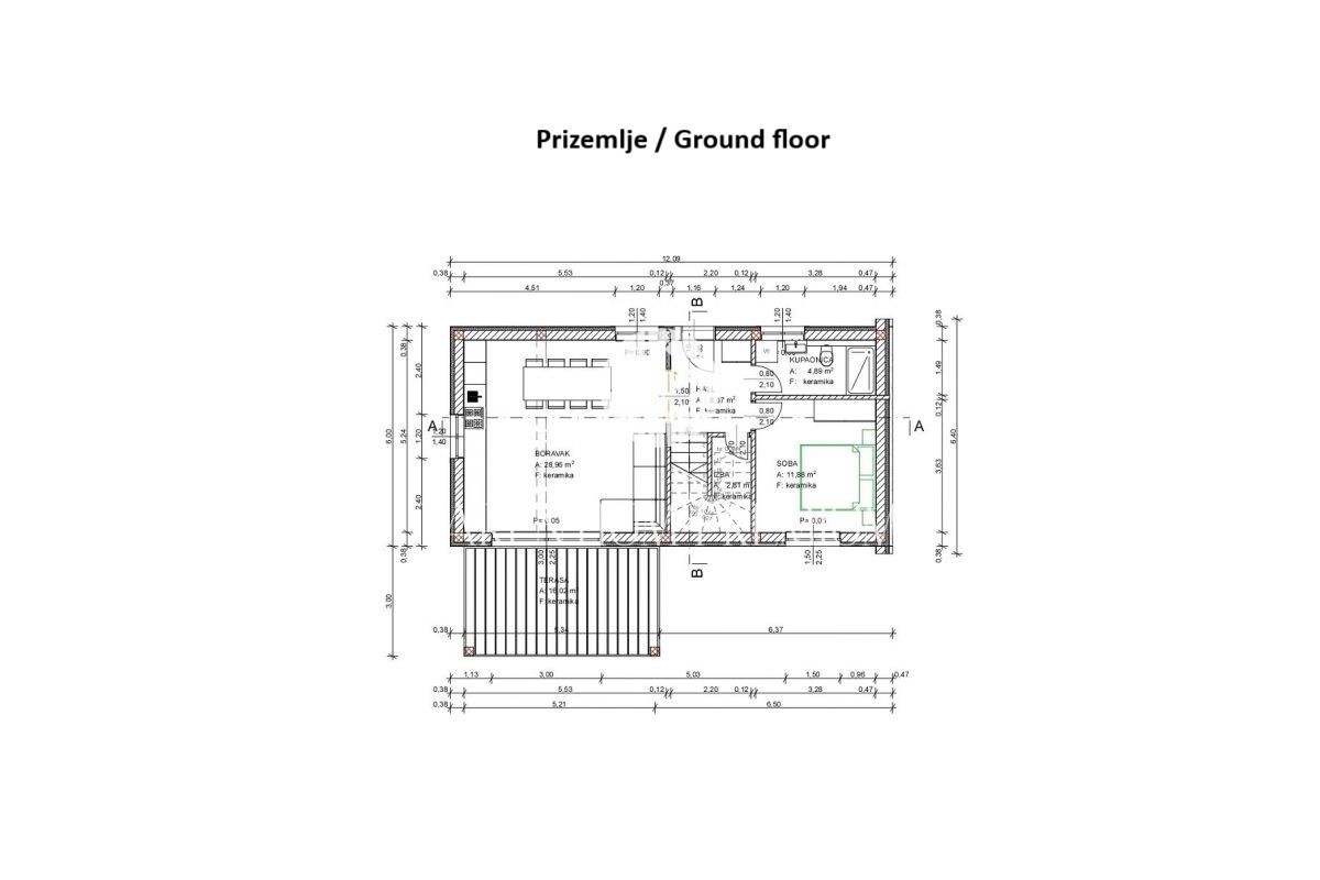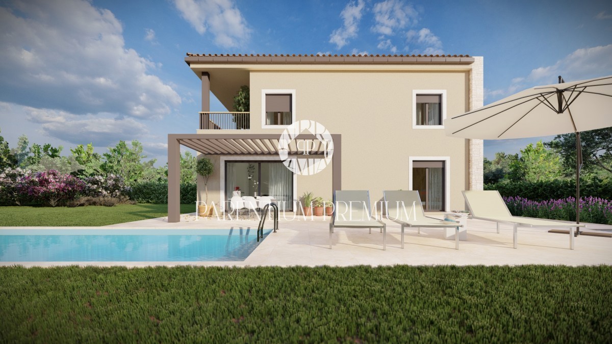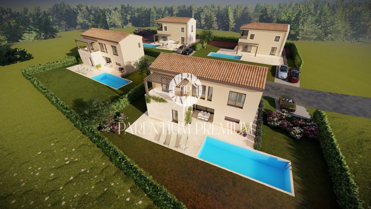 Istra, okolica Poreča Vila z bazenom 3 km od Baderne in 15 km od centra Poreča in morja. Vila ima skupno površino 132,49 m2, nahaja se na zemljišču 706 m2 in se razteza v dveh etažah. Pritličje obsega predsobo, spalnico, kopalnico, shrambo, kuhinjo z jed