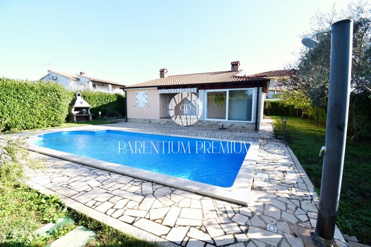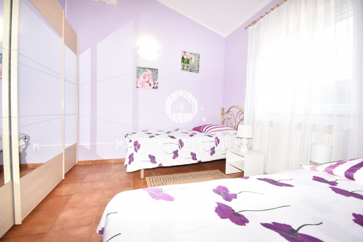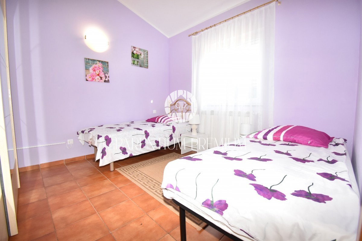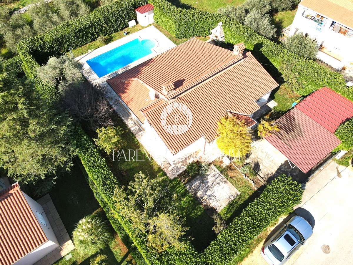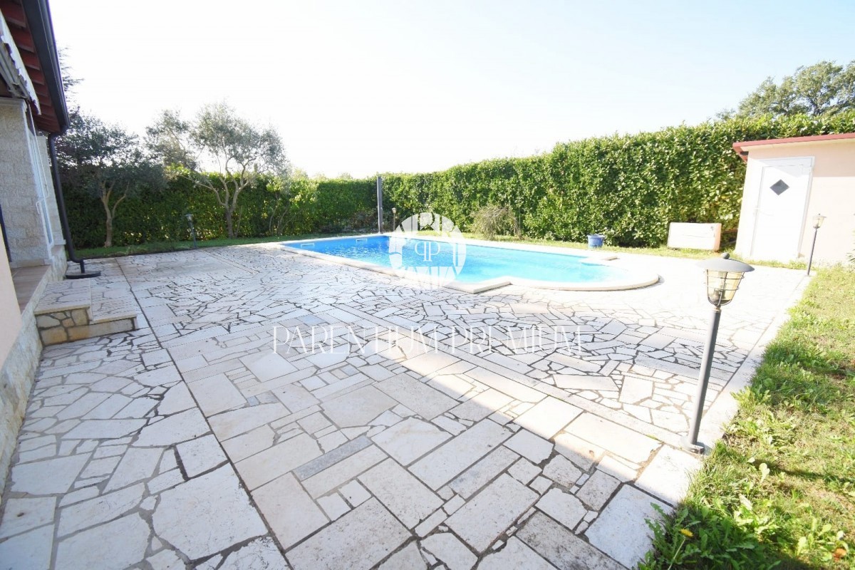 Istra, okolica Poreča Prodamo enonadstropno hišo v bližini Poreča na mirni lokaciji. Hiša ima površino 116 m² in se nahaja na zemljišču 761 m2 in je sestavljena iz predsobe, dveh spalnic, dveh kopalnic, shrambe, kuhinje z jedilnico in dnevne sobe z izhod